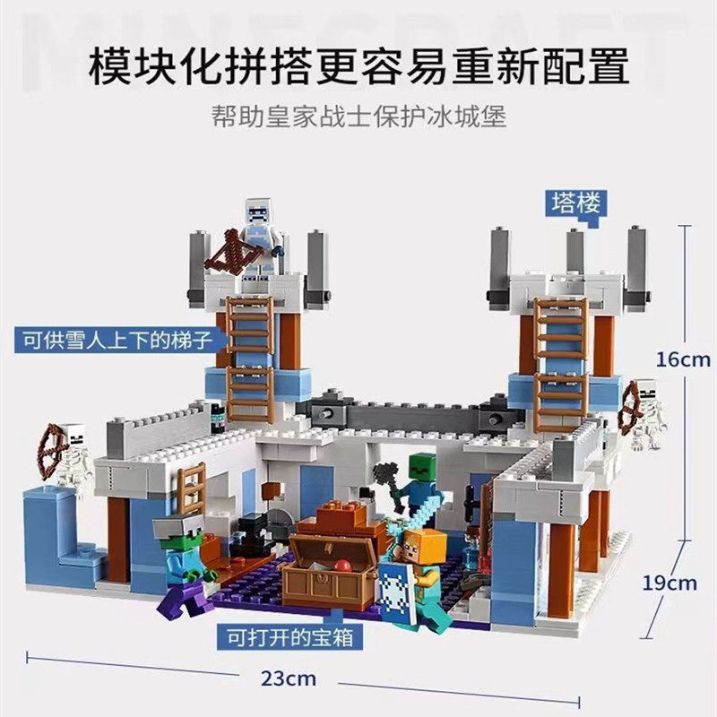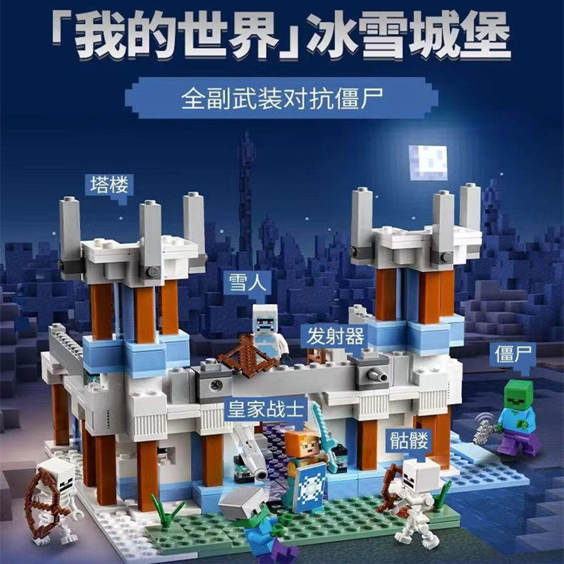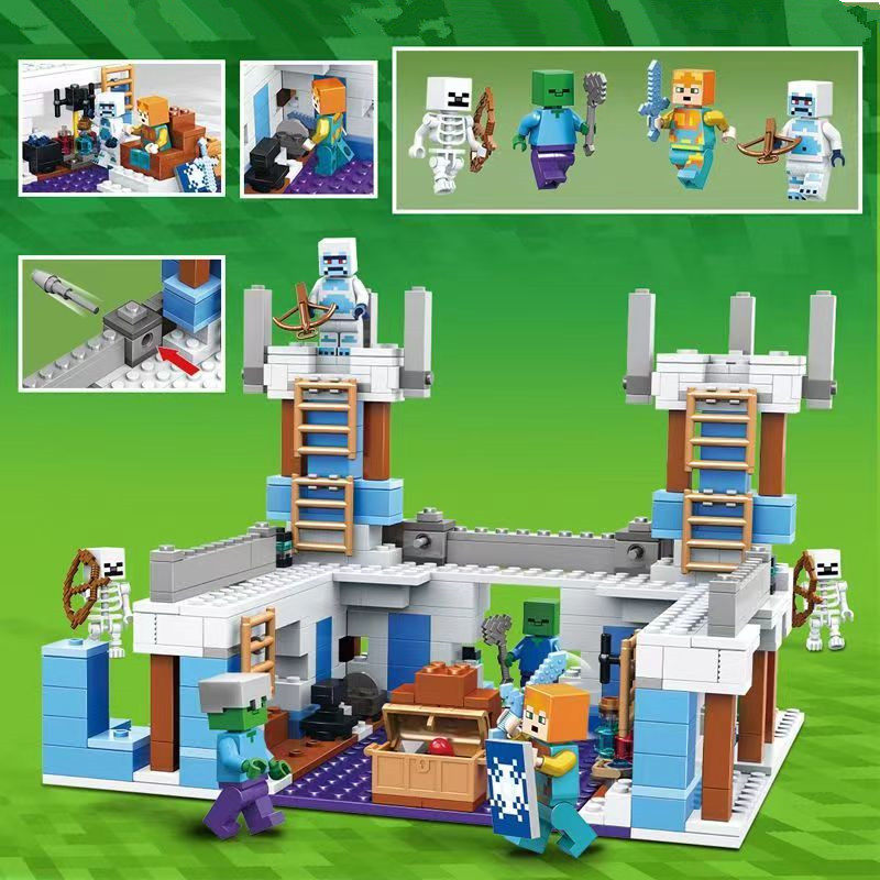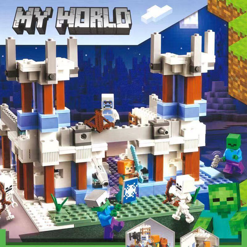 New Minecraft Series Ice and Snow Castle Fortress Snowman Figure Puzzle Building Blocks Toy Gift