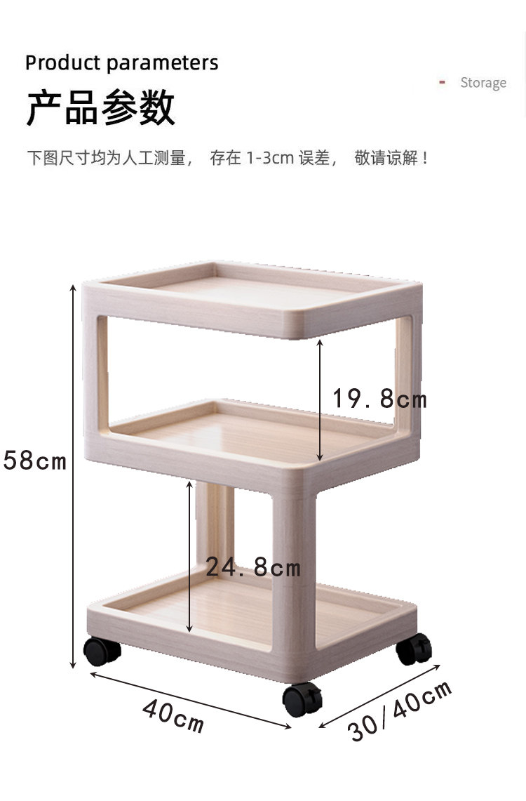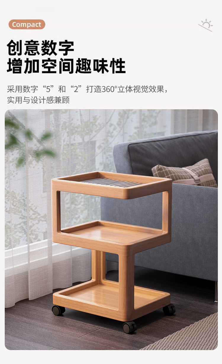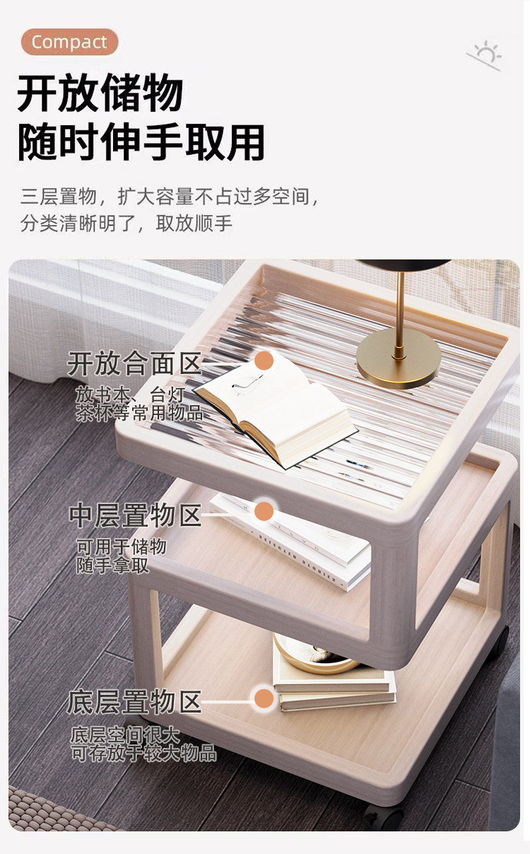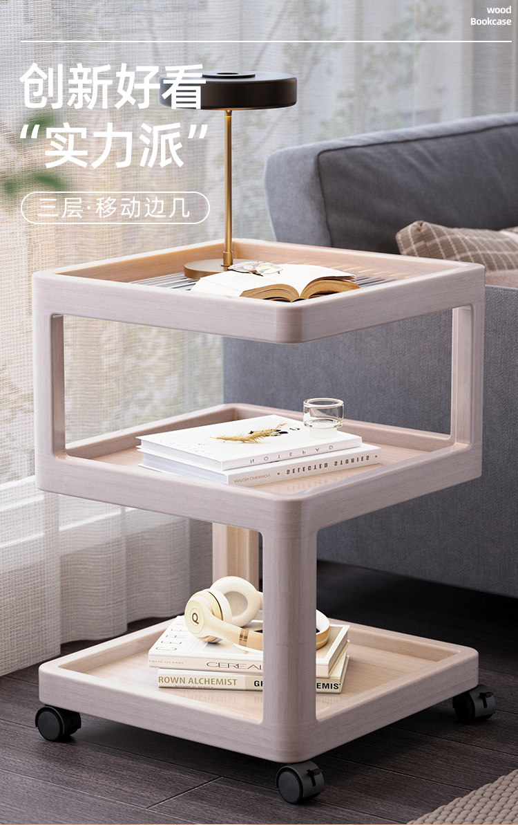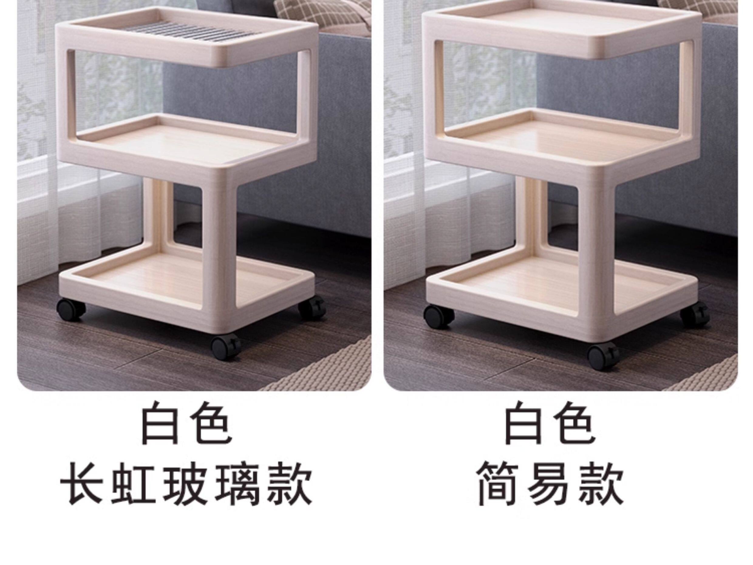 Movable Side Table, Sofa Side Cabinet, Small Apartment Living Room, Home Balcony Coffee Table, Folding Trolley, Cream-Style Bedroom Table