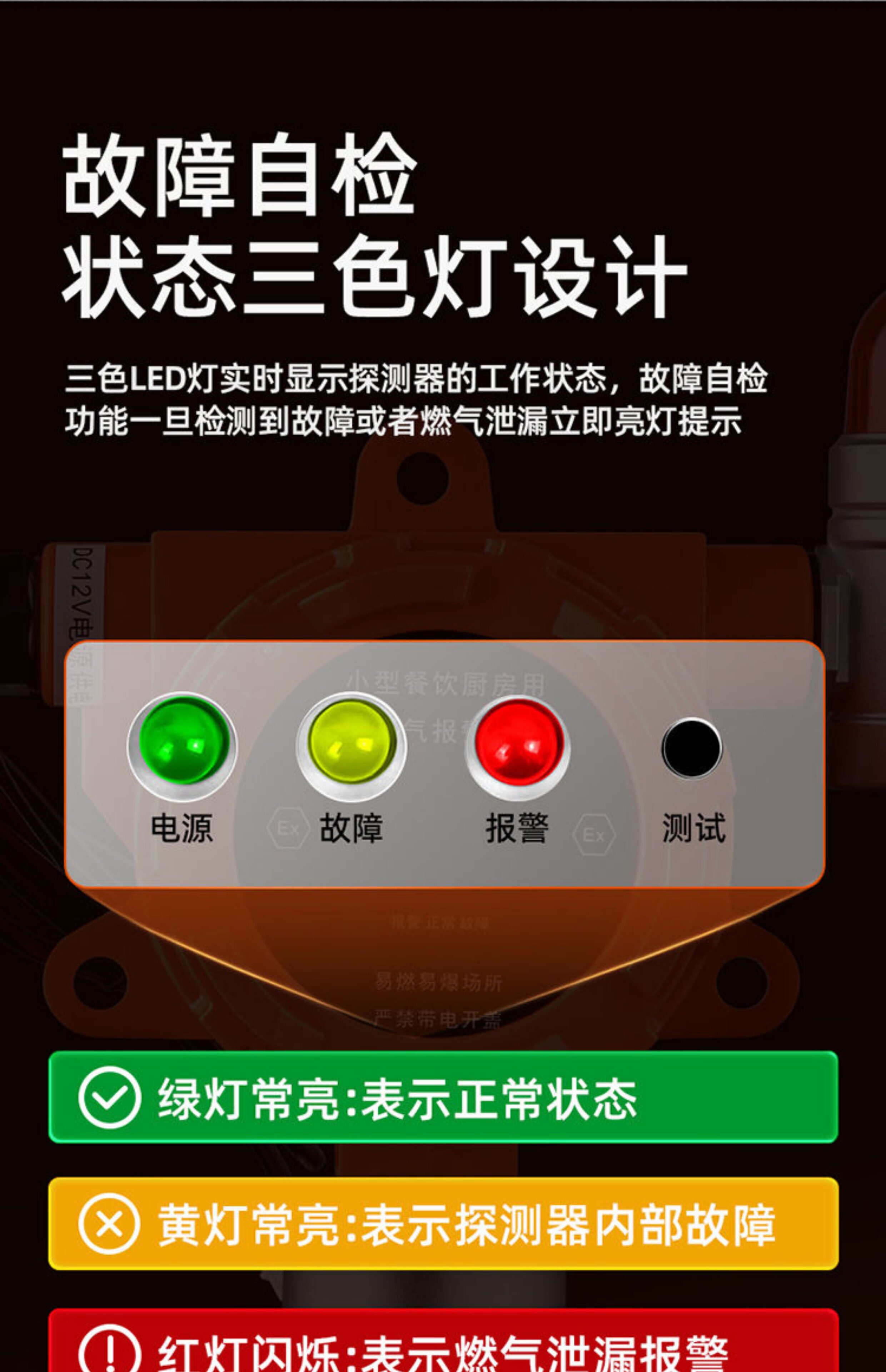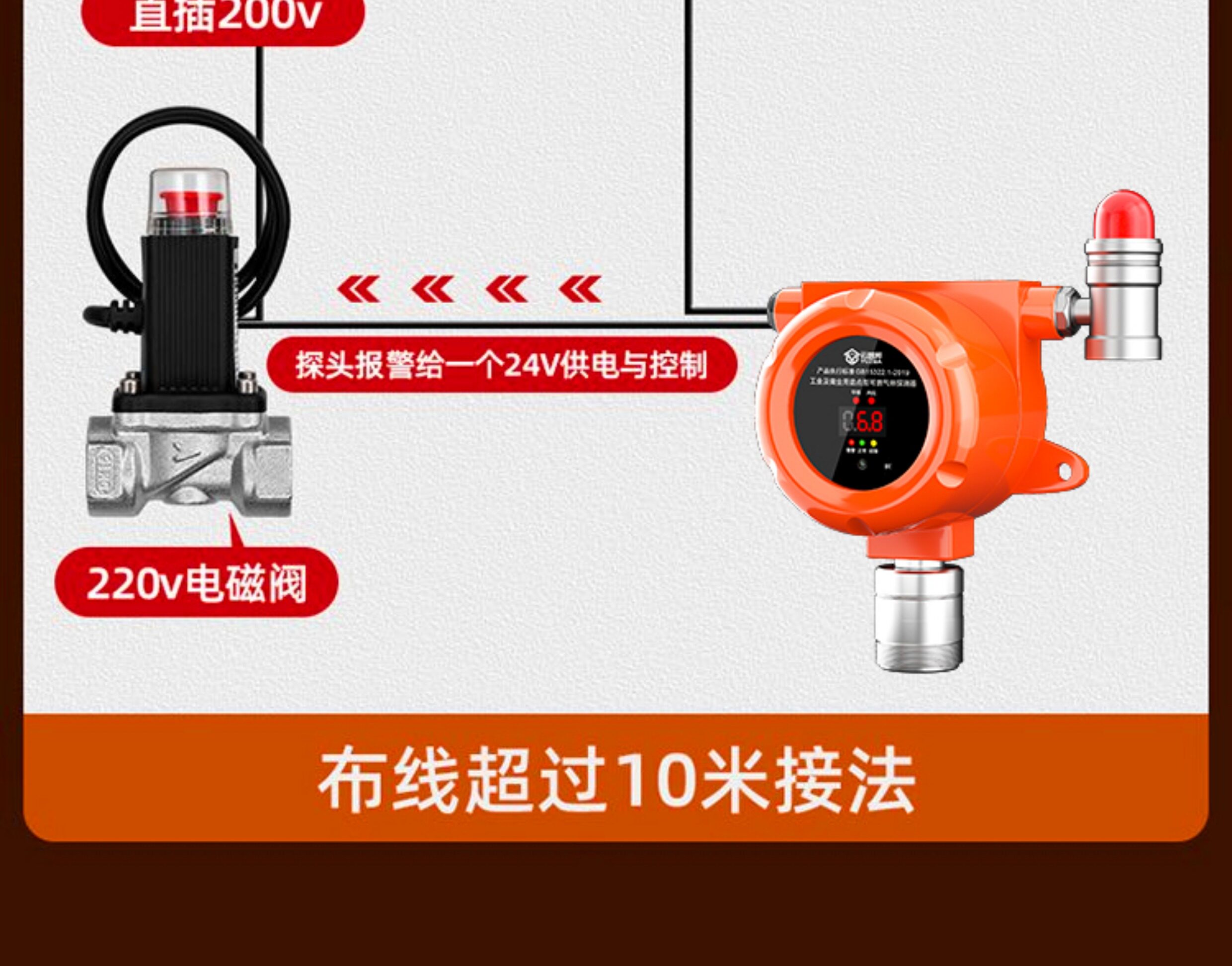 Gas Alarm for Commercial Catering, Natural Gas, Liquefied Gas, Combustible Gas Detection, Gas Leakage Automatic Shut-Off Valve