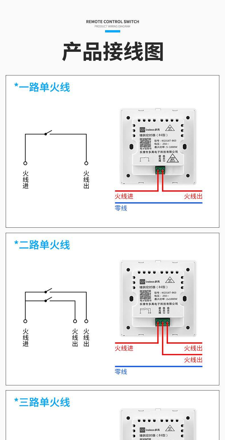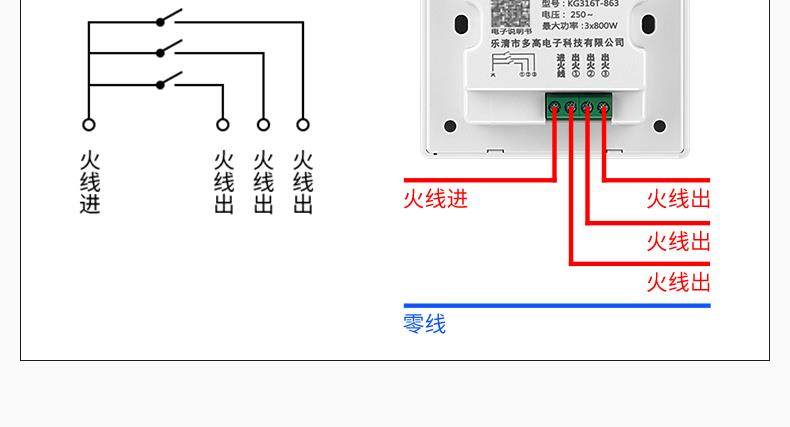 Sort by color Single live wire is on (load 800W),Single live wire, two switches (load 800W),Single live wire three switches (load 800W),With bottom box, single live wire open (load 800W),With bottom box, single live wire and two switches (load 800W),With bottom box, single live wire three switches (load 800W)