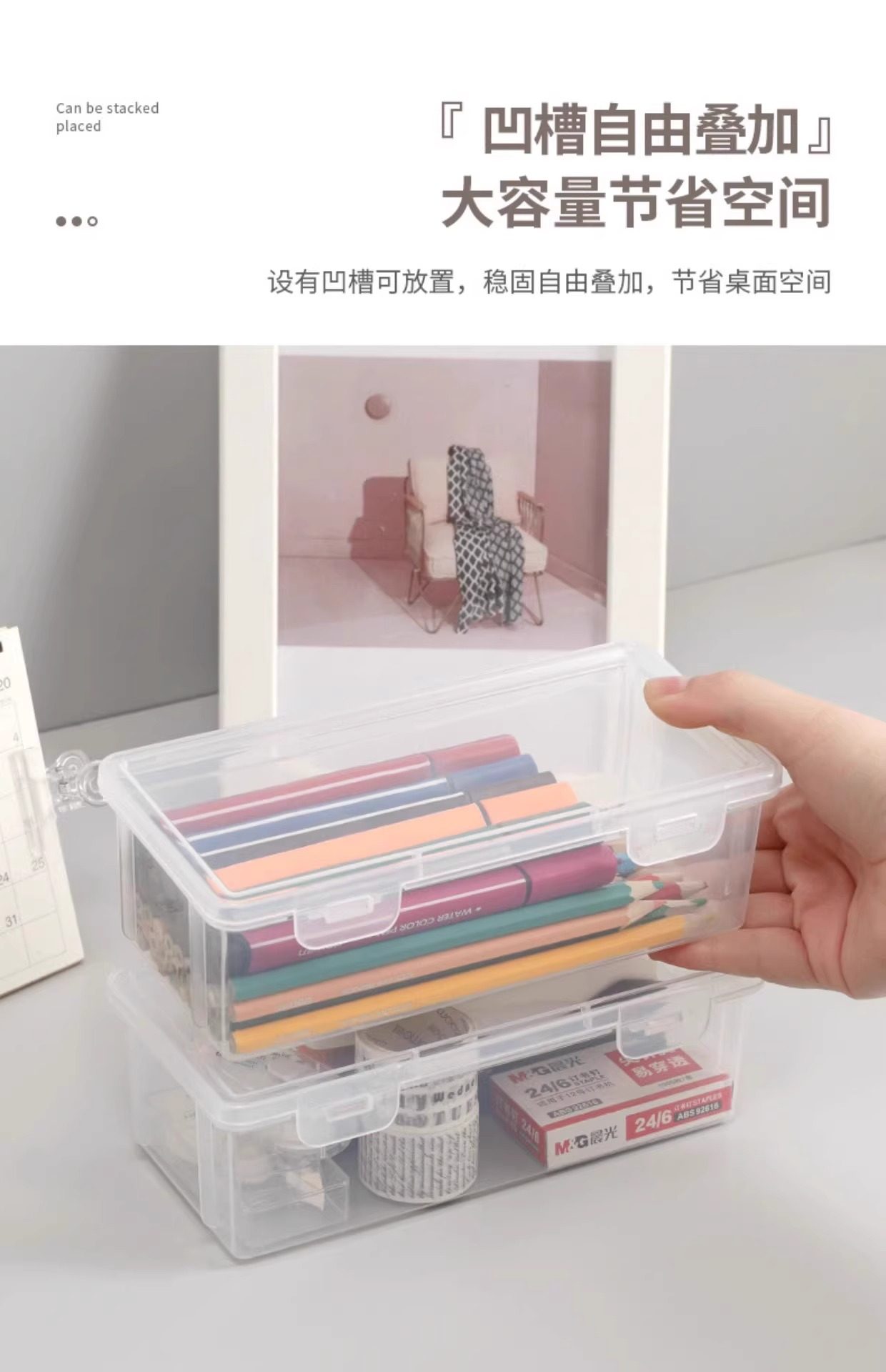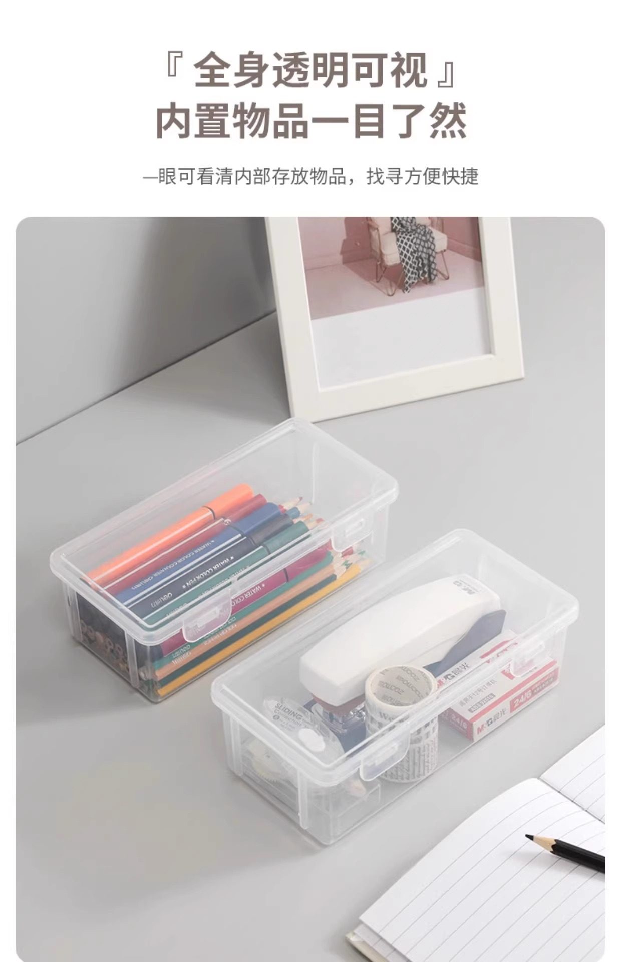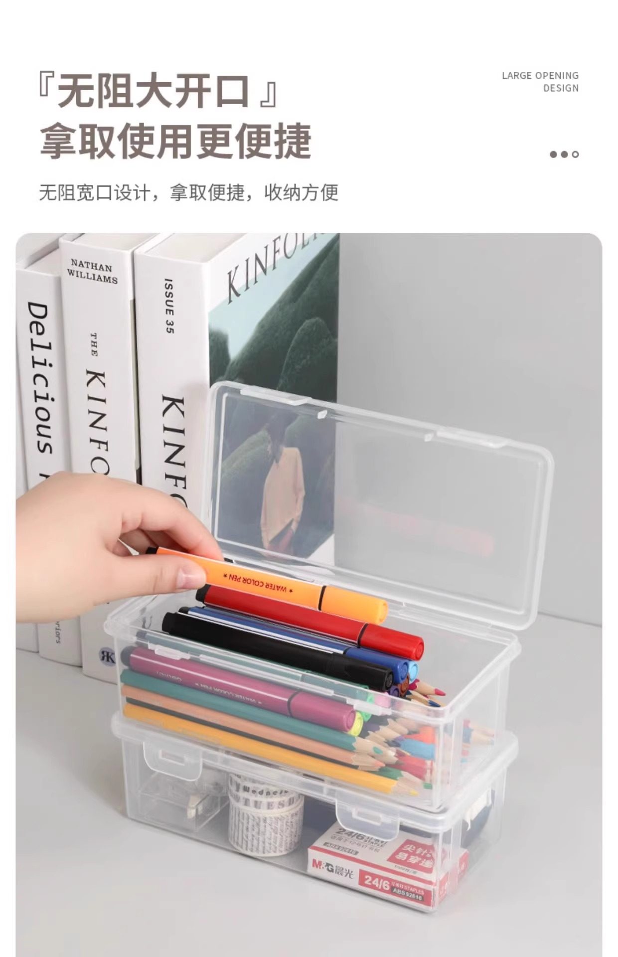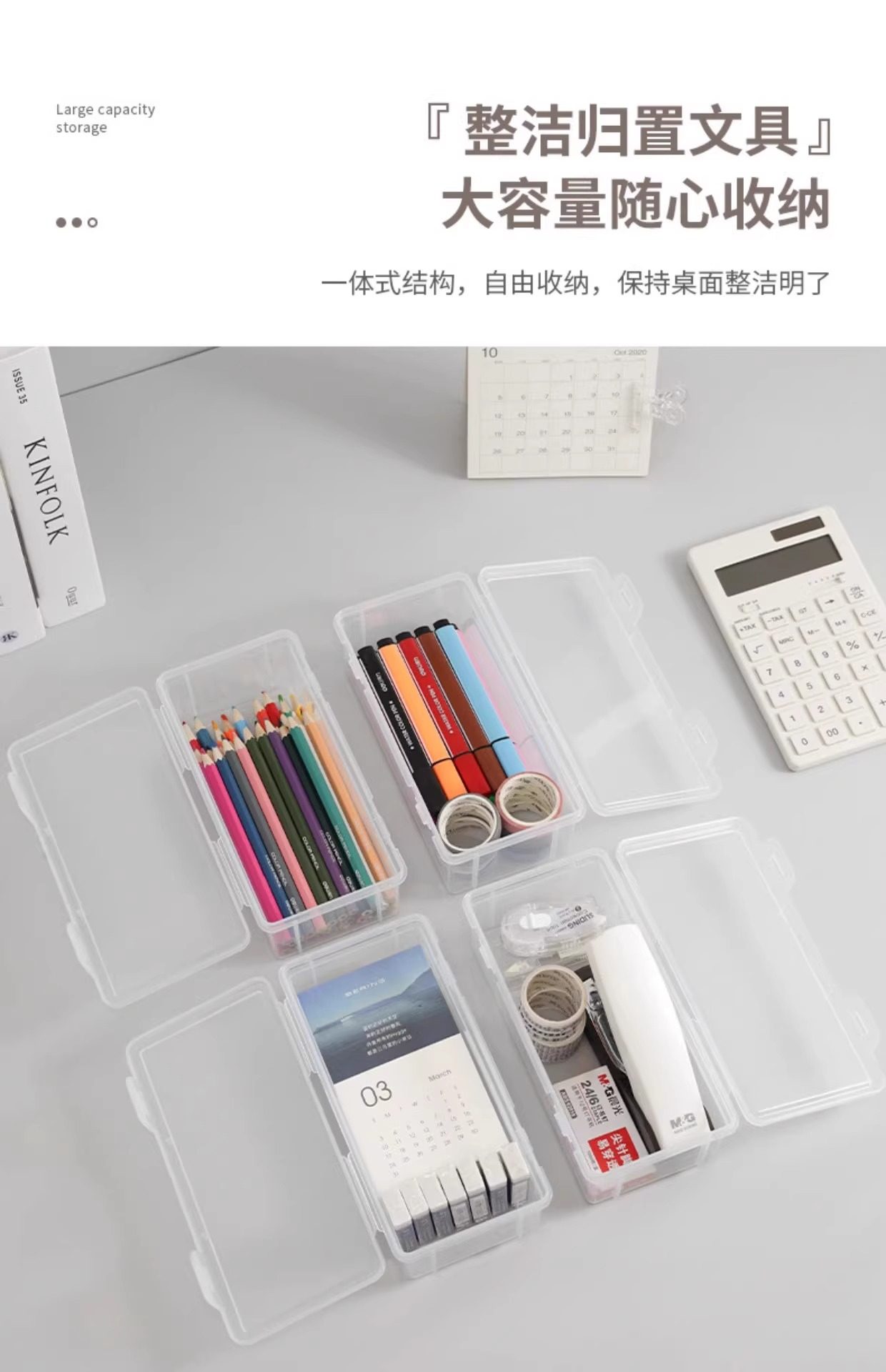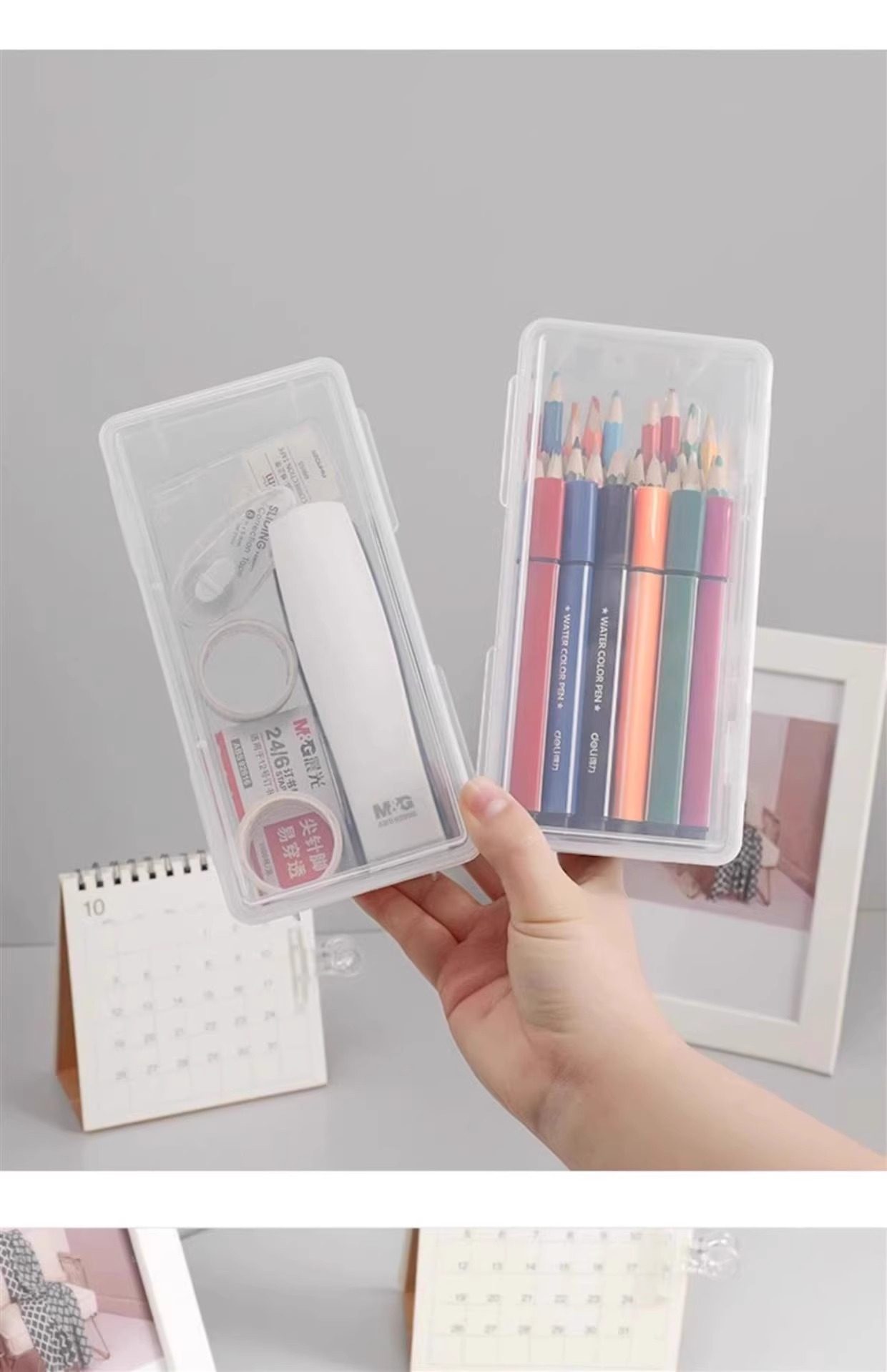 The Teacher Recommends a Large-Capacity Transparent Pencil Storage Box, a Stationery Organizer, a Pen Holder for Colored Pencils, and a Crayon Pencil Case for Children