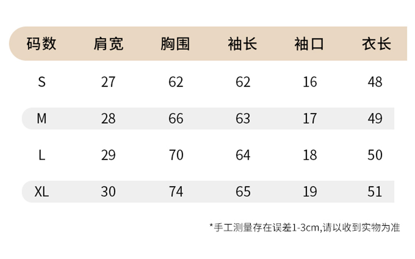 Size (cm) 42 44 46 48 50