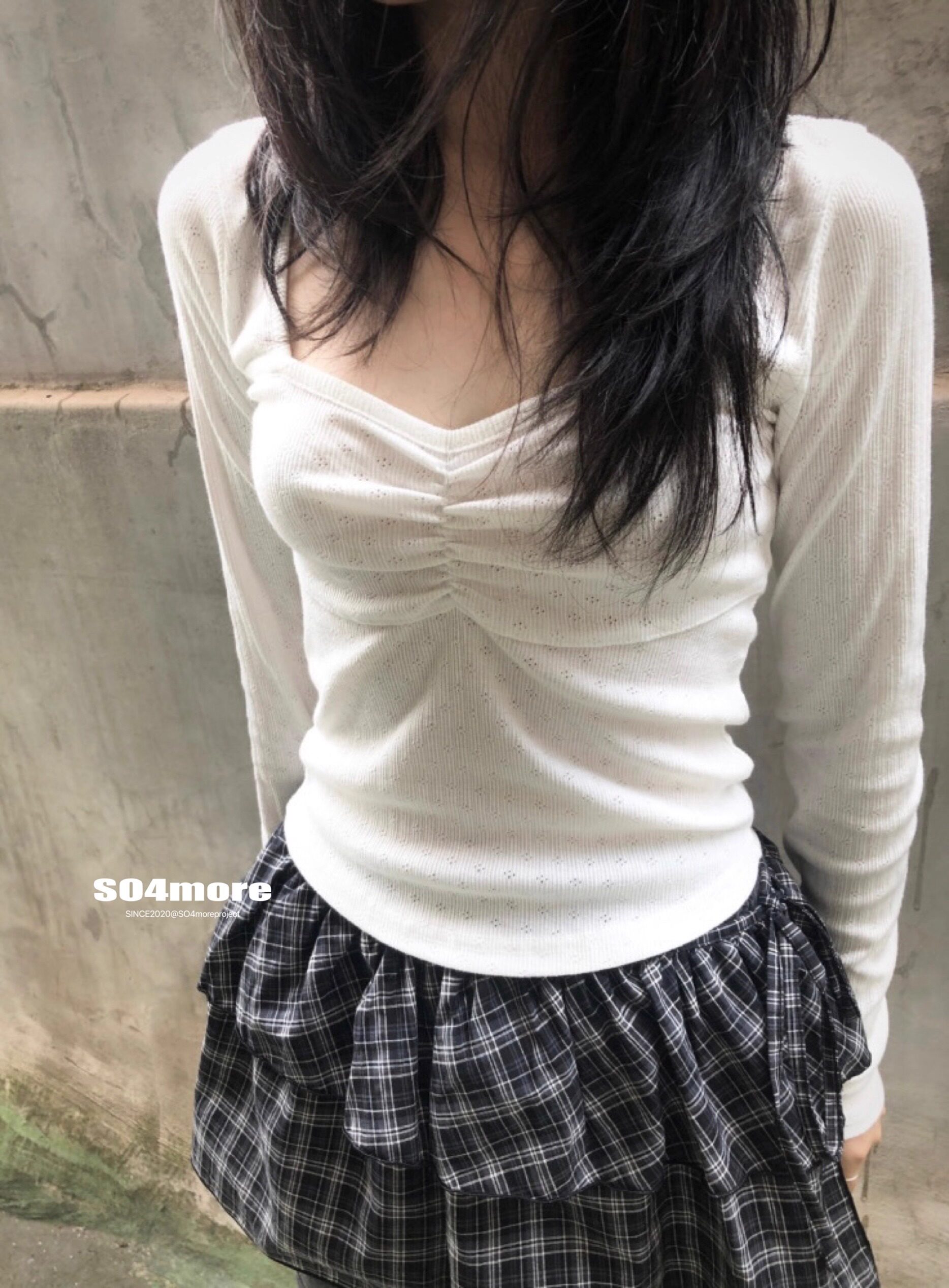 French-Style Square-Neck Long-Sleeve T-Shirt for Women, Perfect for Autumn and Winter, Stylish Design, Pleated, Slim-Fitting, Flattering Base Layer Top