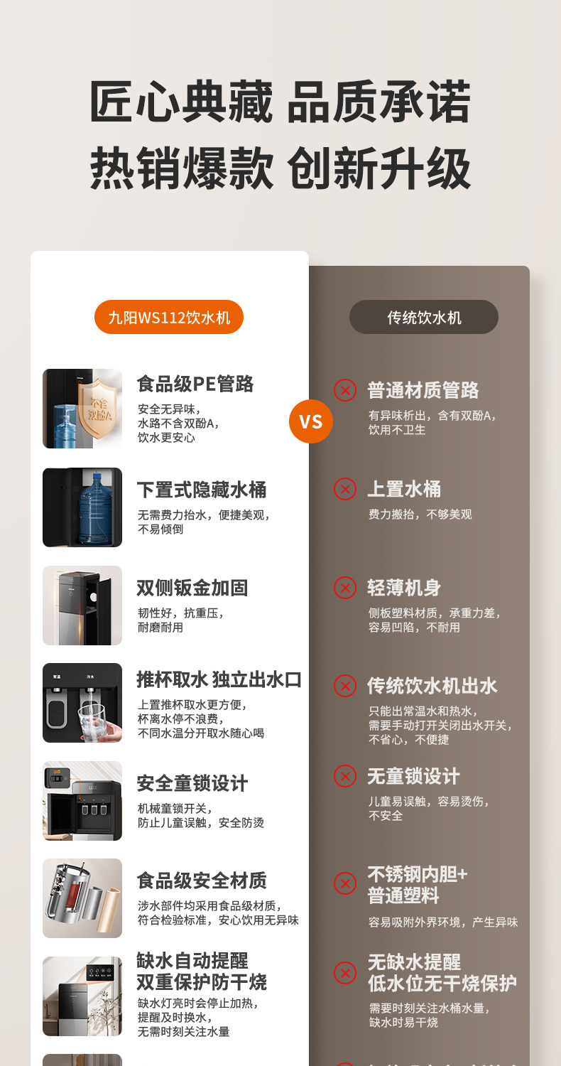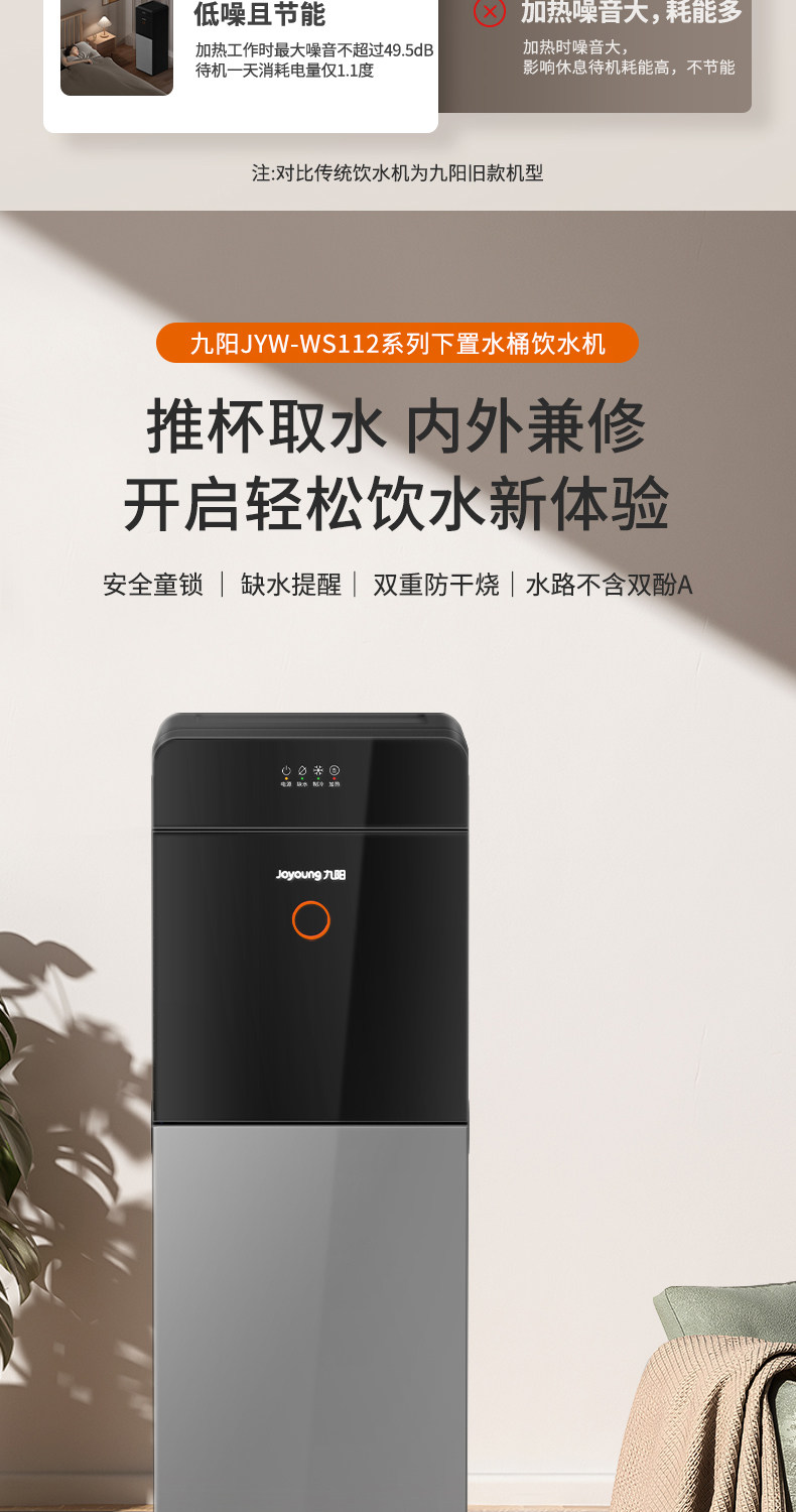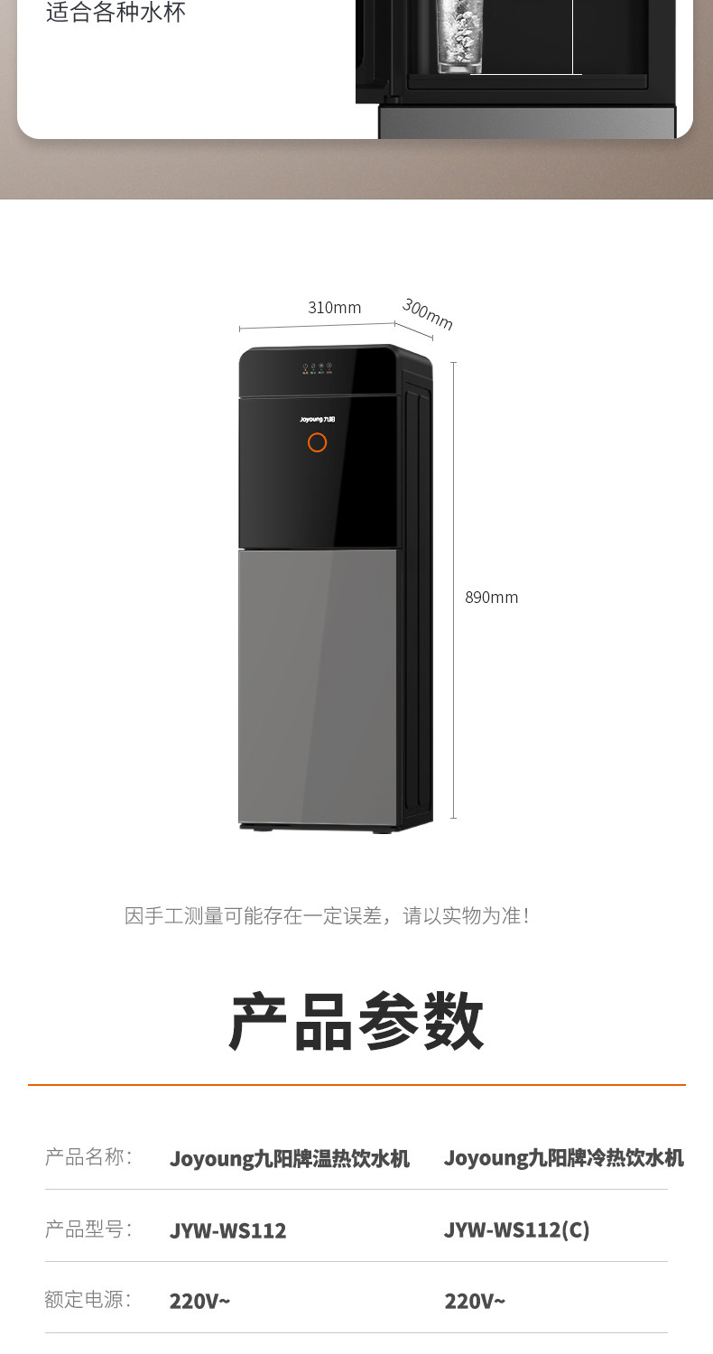 Joyoung Water Dispenser with Bottom Water Tank, Household Vertical Smart Fully Automatic Cooling and Heating for Office and Home Use, Upgraded Ws112