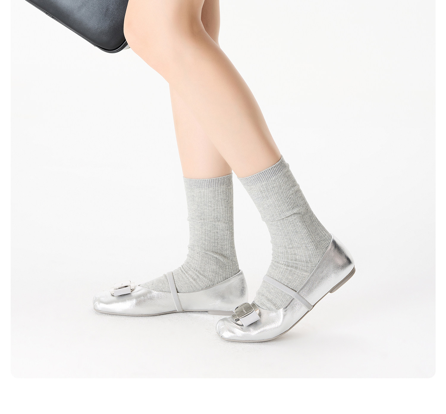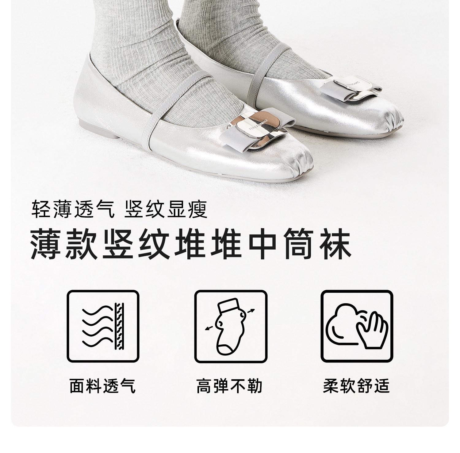 Thin Vertical Striped Light Gray Spring and Autumn Socks for Women, Suitable for Wearing with Small Leather Shoes, Cotton Socks, Slouch Socks, Long Socks, Summer Seamless Mid-Calf Socks