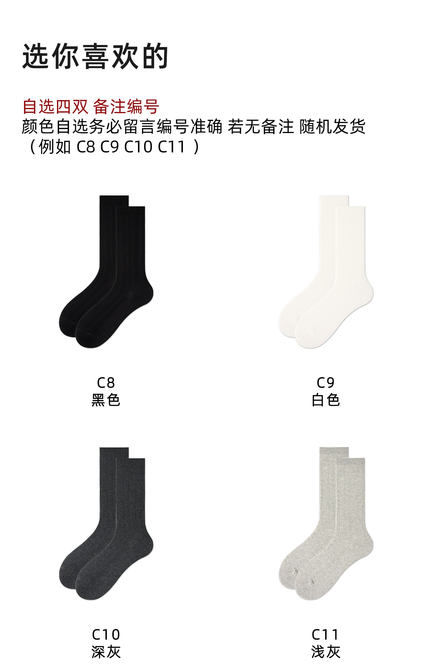 Color Classification White + Light Gray + Dark Gray + Black,Two Pairs of White + Two Pairs of Light Gray,Two Pairs of White + Two Pairs of Dark Gray,Two Pairs of White + Two Pairs of Black,Two Pairs of Light Gray + Two Pairs of Black,Two Pairs of Dark Gray + Two Pairs of Black,Two Pairs of Light Gray + Two Pairs of Dark Gray,Four Pairs of White,Four Pairs of Dark Gray,Four Pairs of Black,Four Pairs of Light Gray,Choose Any Four Pairs, Please Specify the Item Numbers in the Order Notes