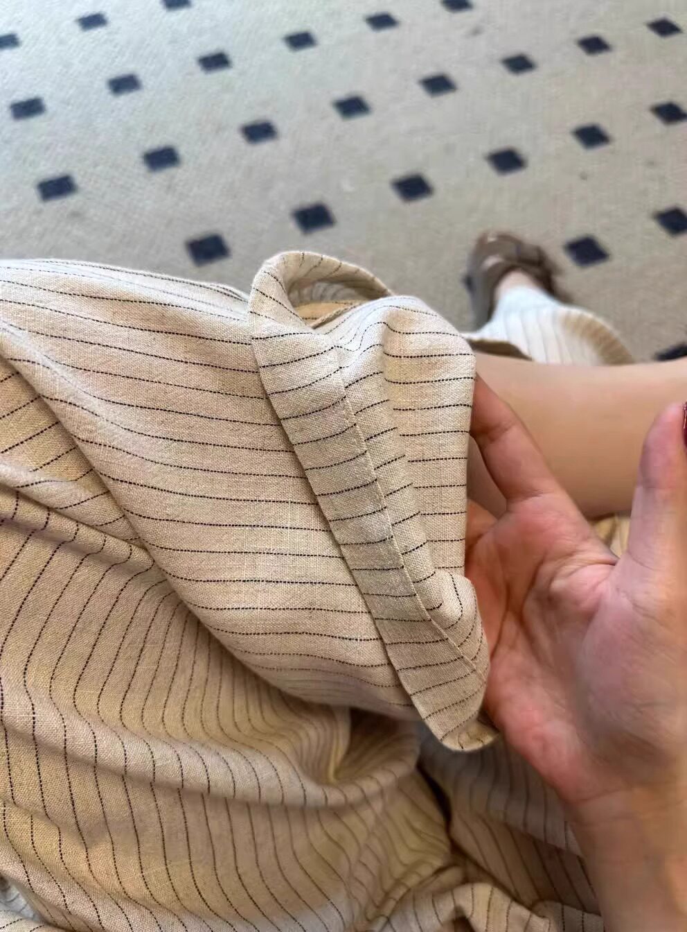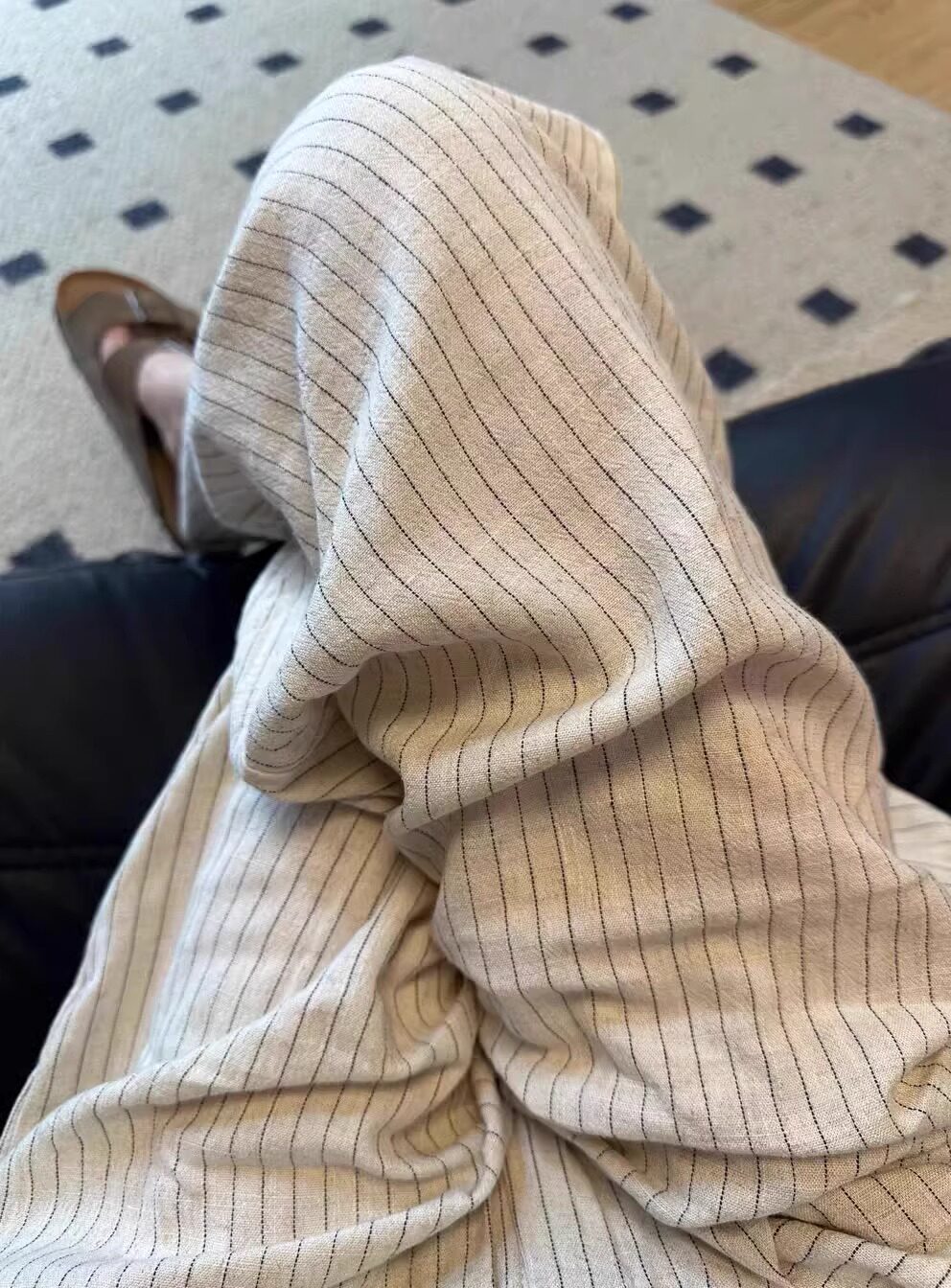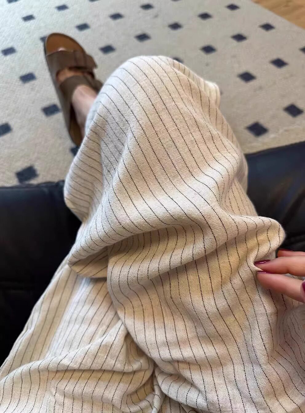 Lazy style striped cotton and linen wide-leg pants for women in summer, thin and drapey sycamore pants, straight-leg casual walking and mopping trousers