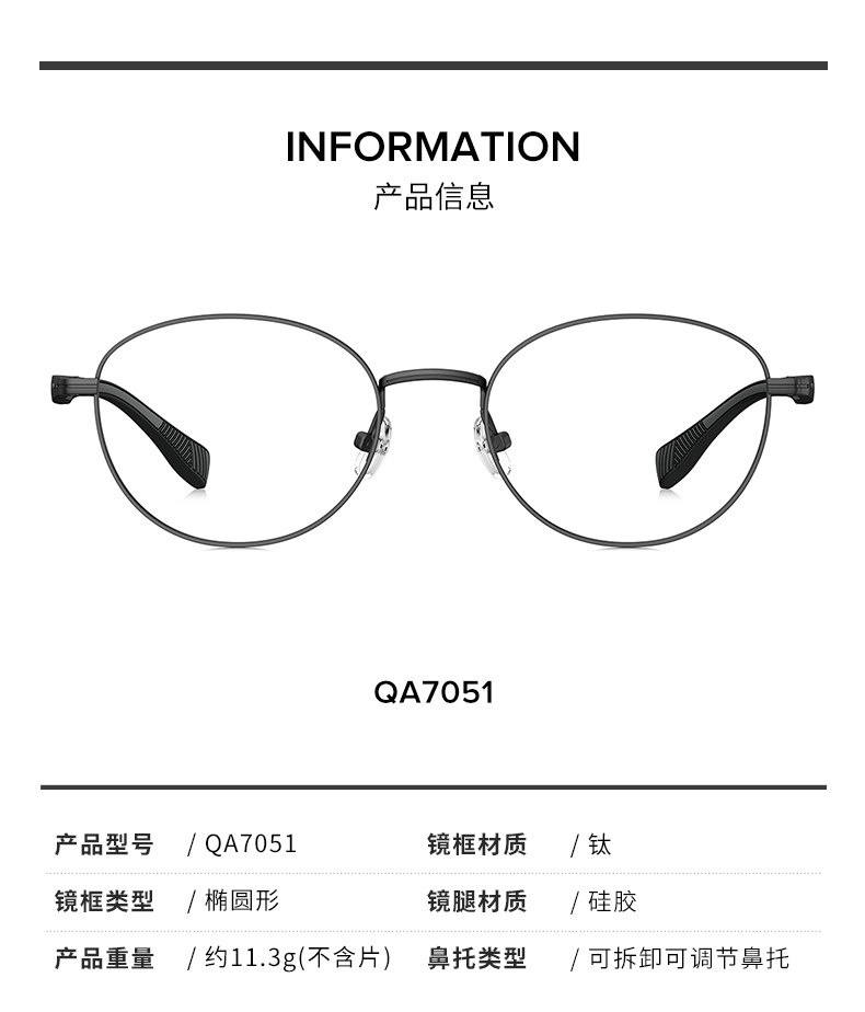Qina's 25-year new myopia glasses frame lightweight titanium frame retro frame women's round frame can be matched with prescription men's QA7051