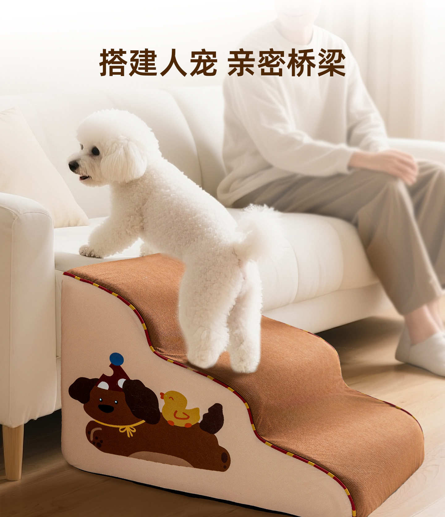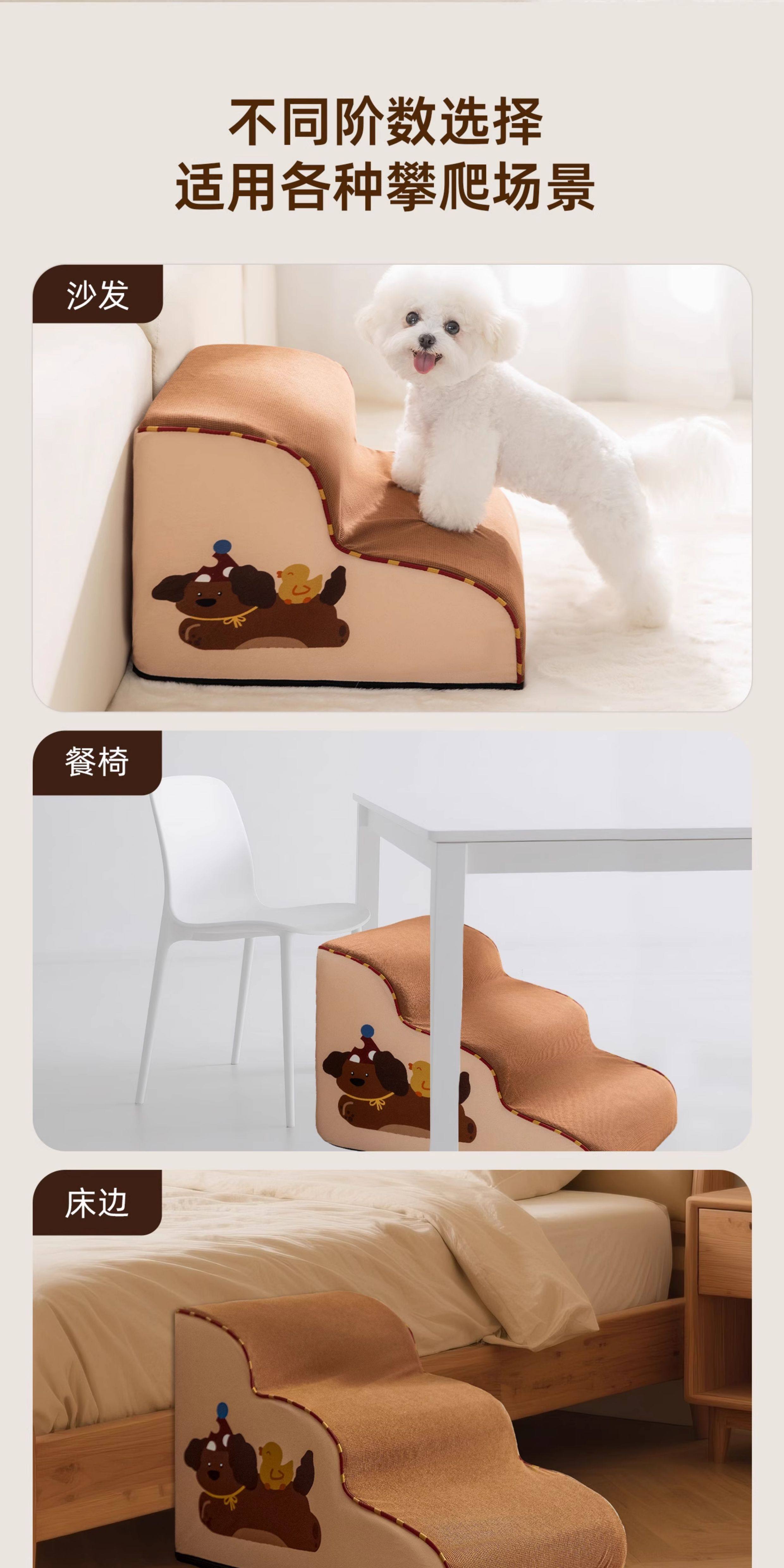Dog Ramp Ladder, Cat Bed Steps, Non-Slip Stairs, Small Elderly Dogs, Removable and Washable Bedside Sofa Foot Pads