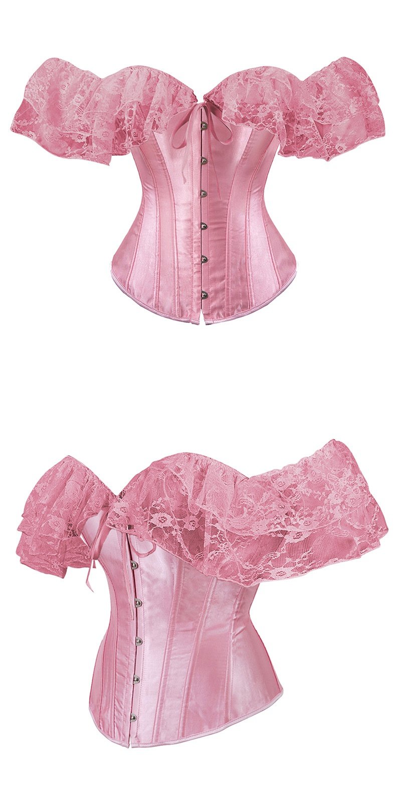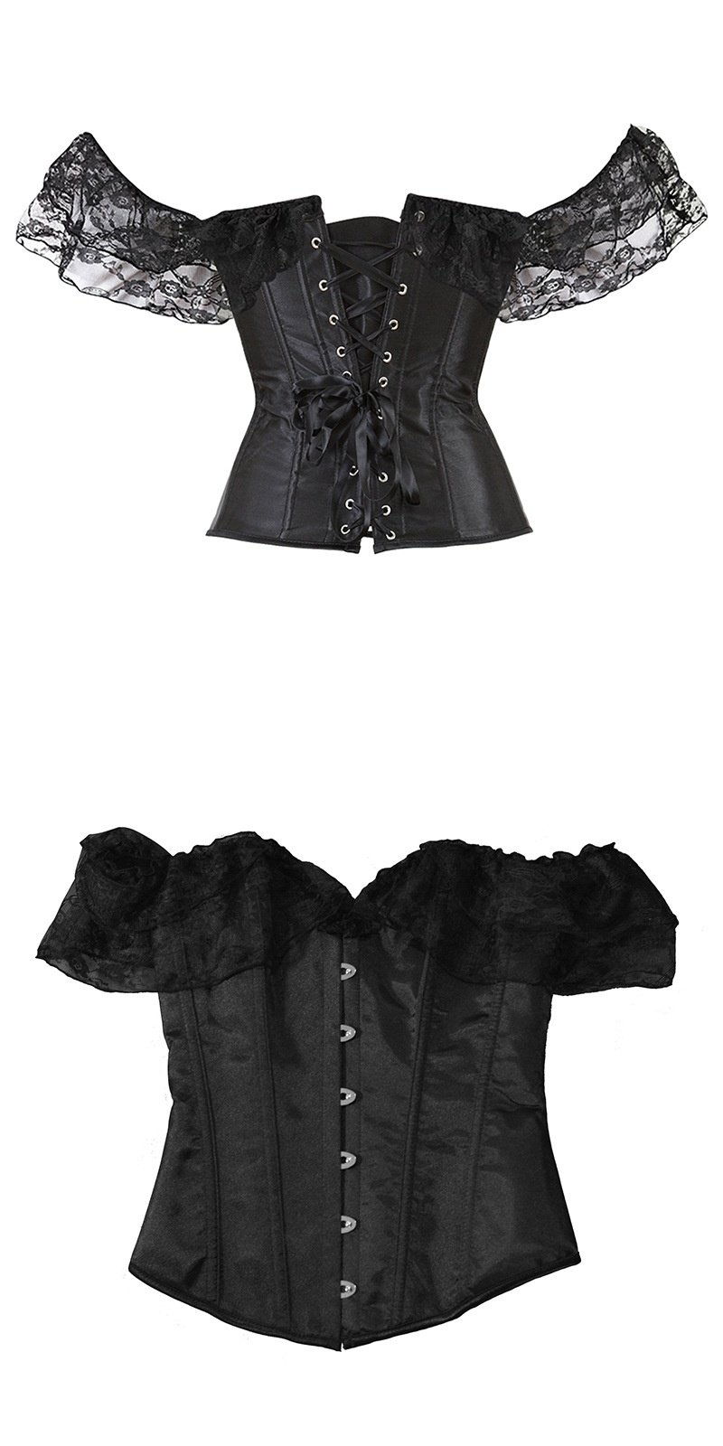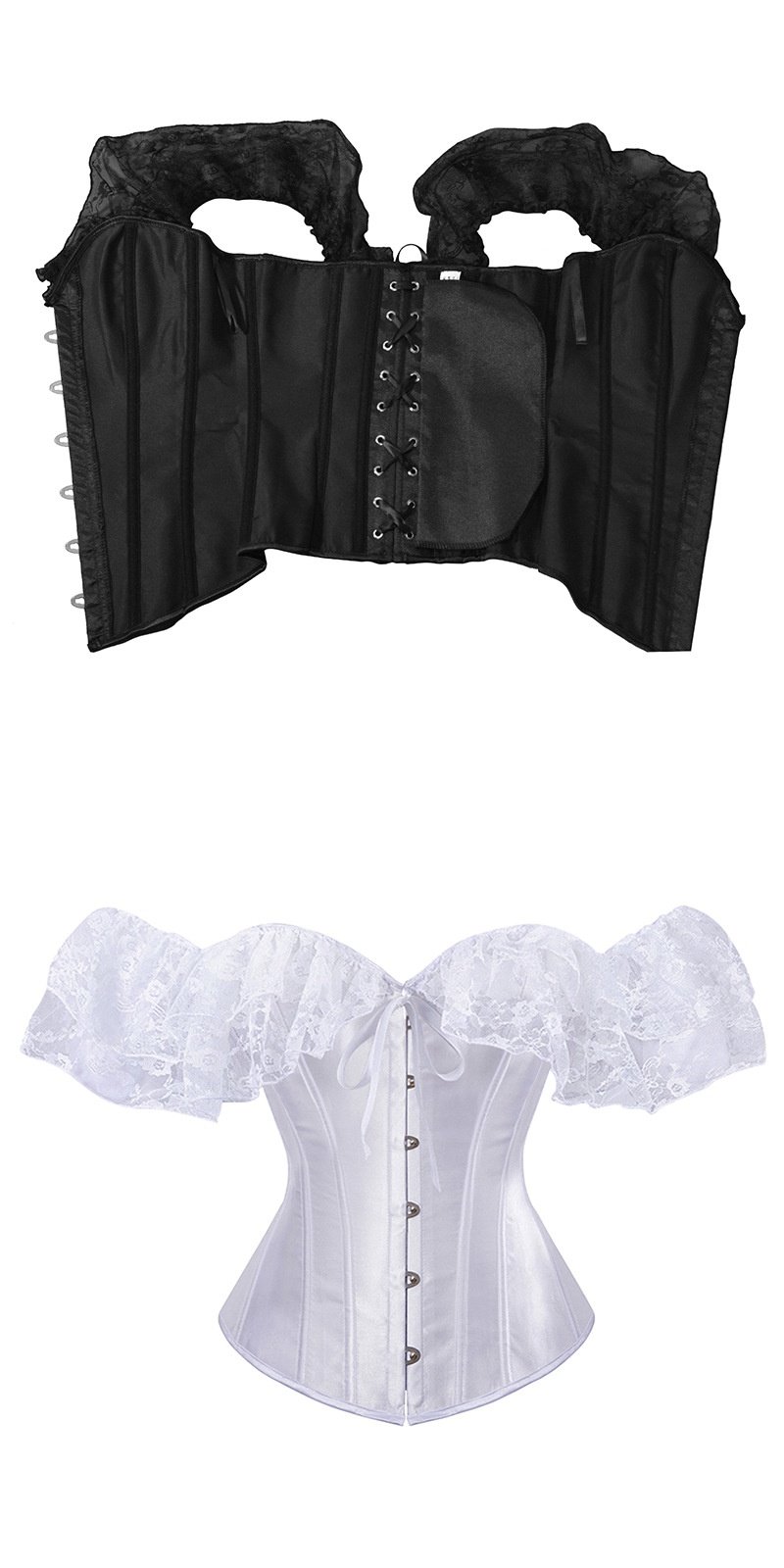 1808 Satin Lace Trim Short-Sleeve Shapewear in Stock Halloween Costume Outfit