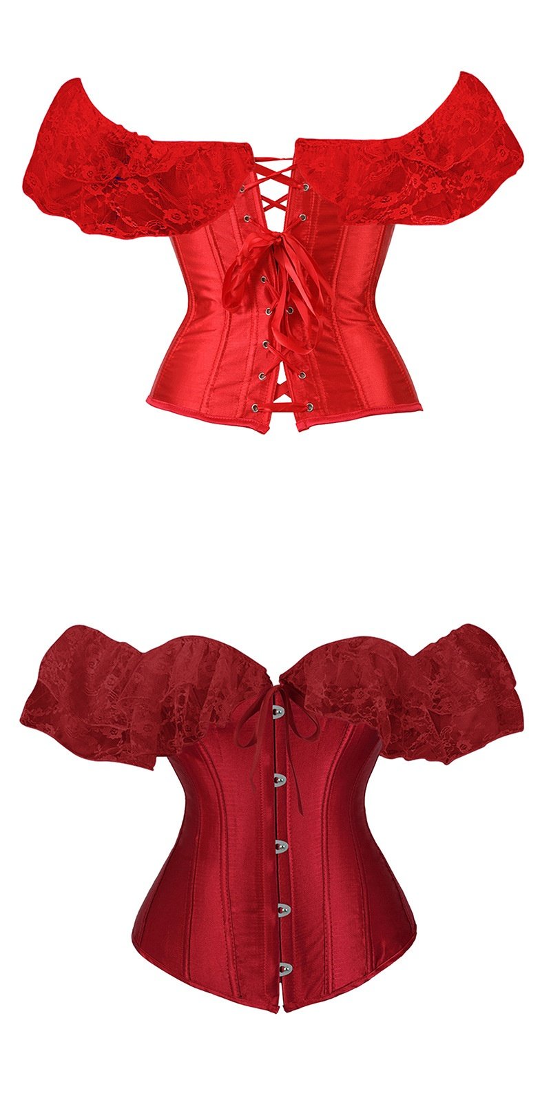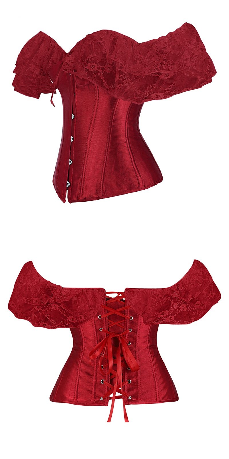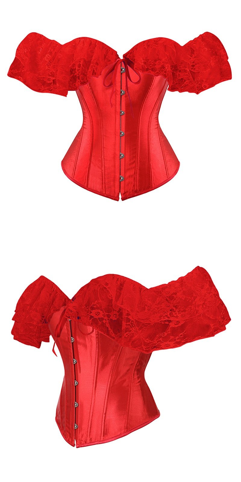 1808 Satin Lace Trim Short-Sleeve Shapewear in Stock Halloween Costume Outfit