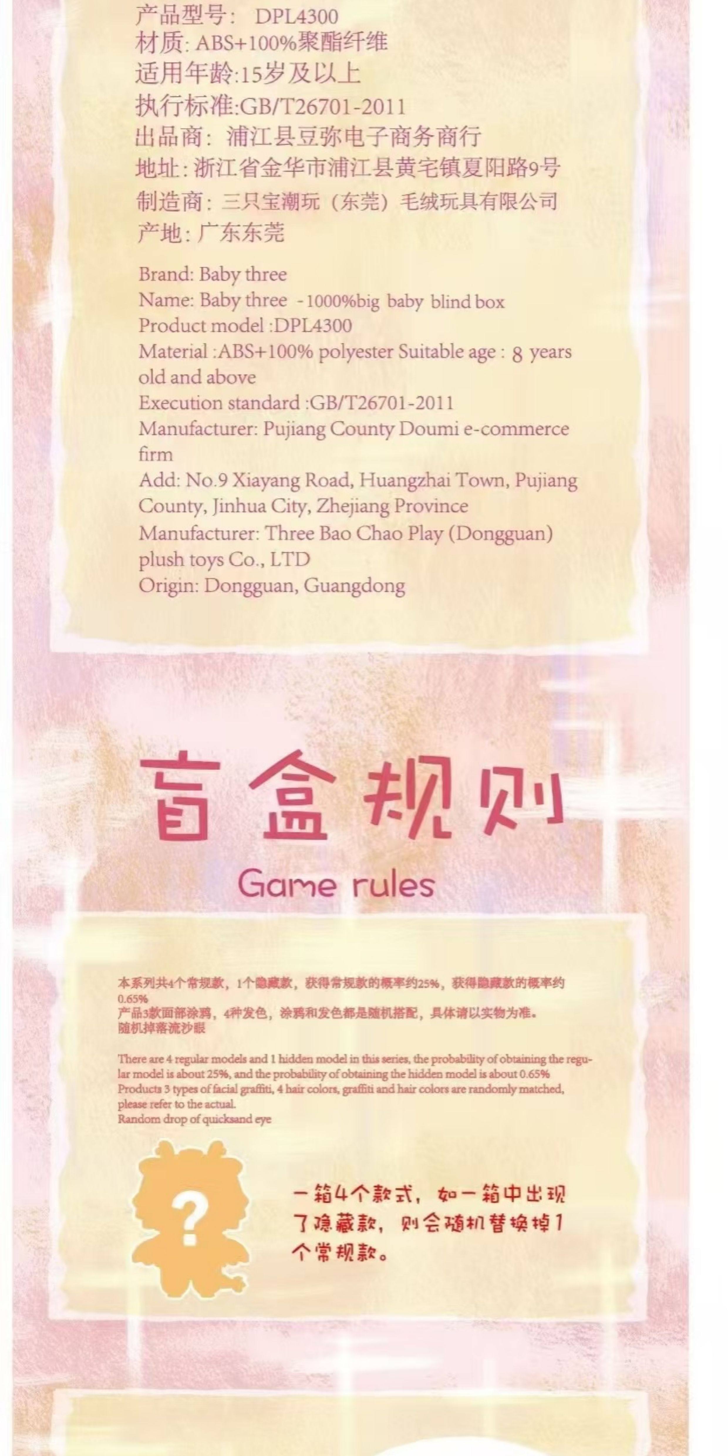Baby Three 3-Year-Old 1000% Large Plush Blind Box Doll V1 Trendy Toy Decoration Gift for Girls