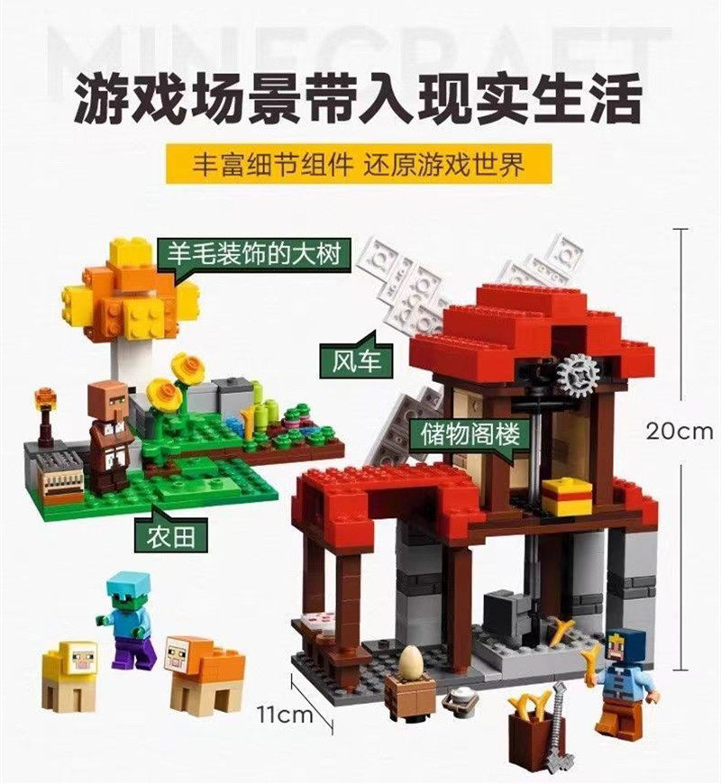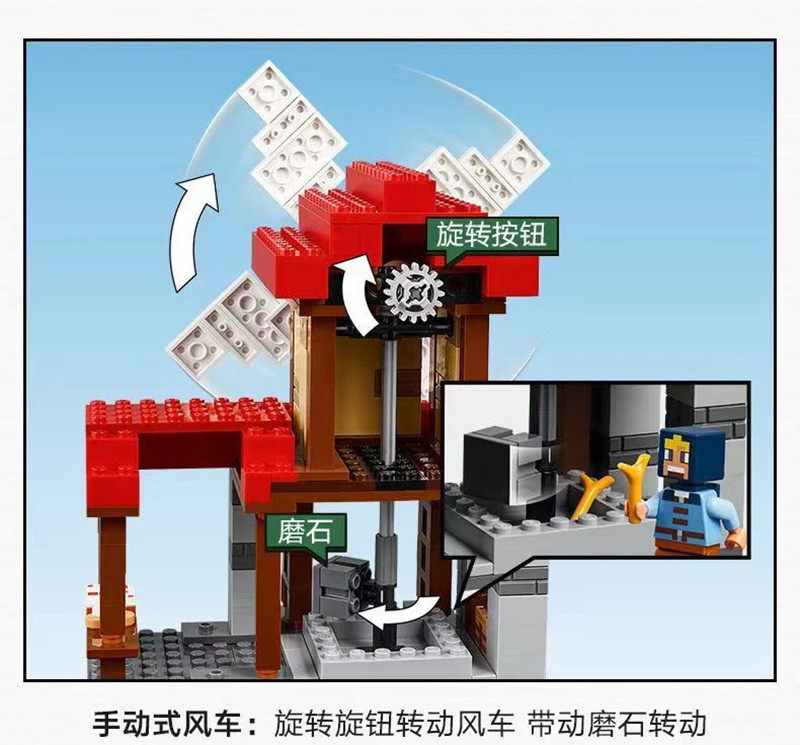 New Minecraft Series Rotating Red Windmill Farm Educational Building Block Toys for Boys and Girls as Gifts