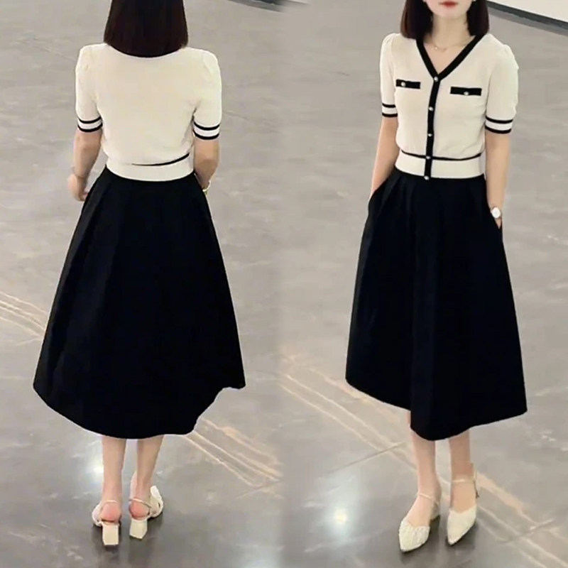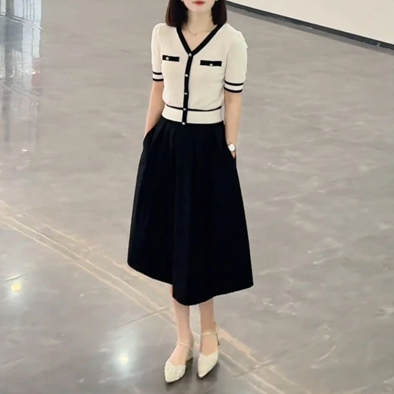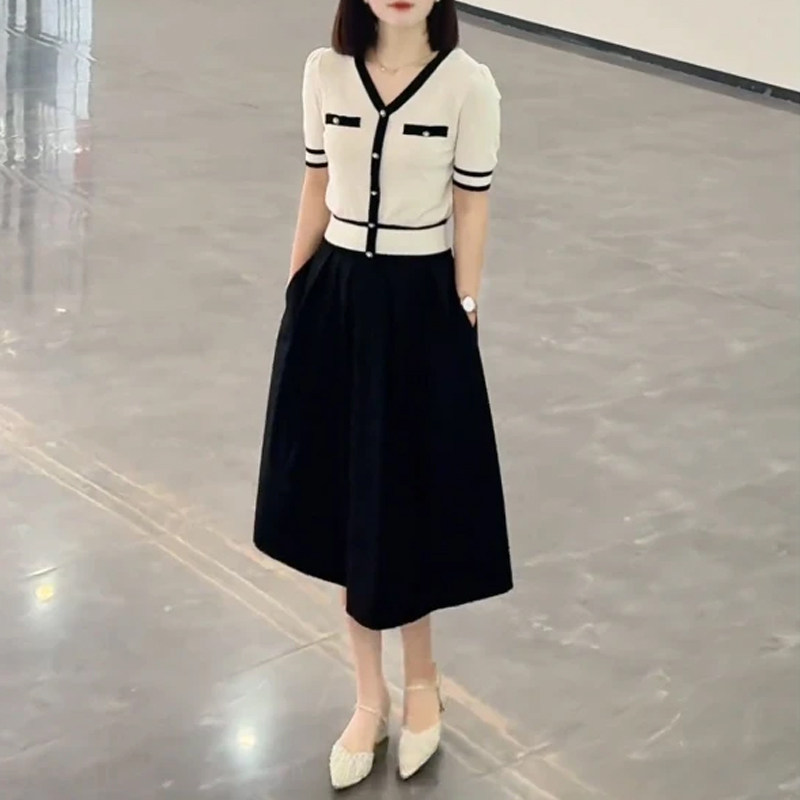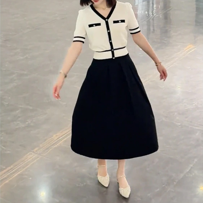 Sort by color White top,Black skirt,White and black skirt suit