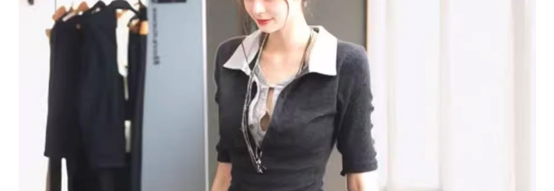 Style Details Contrast Color,Fake Two Pieces,Buttons,Splicing,Lace