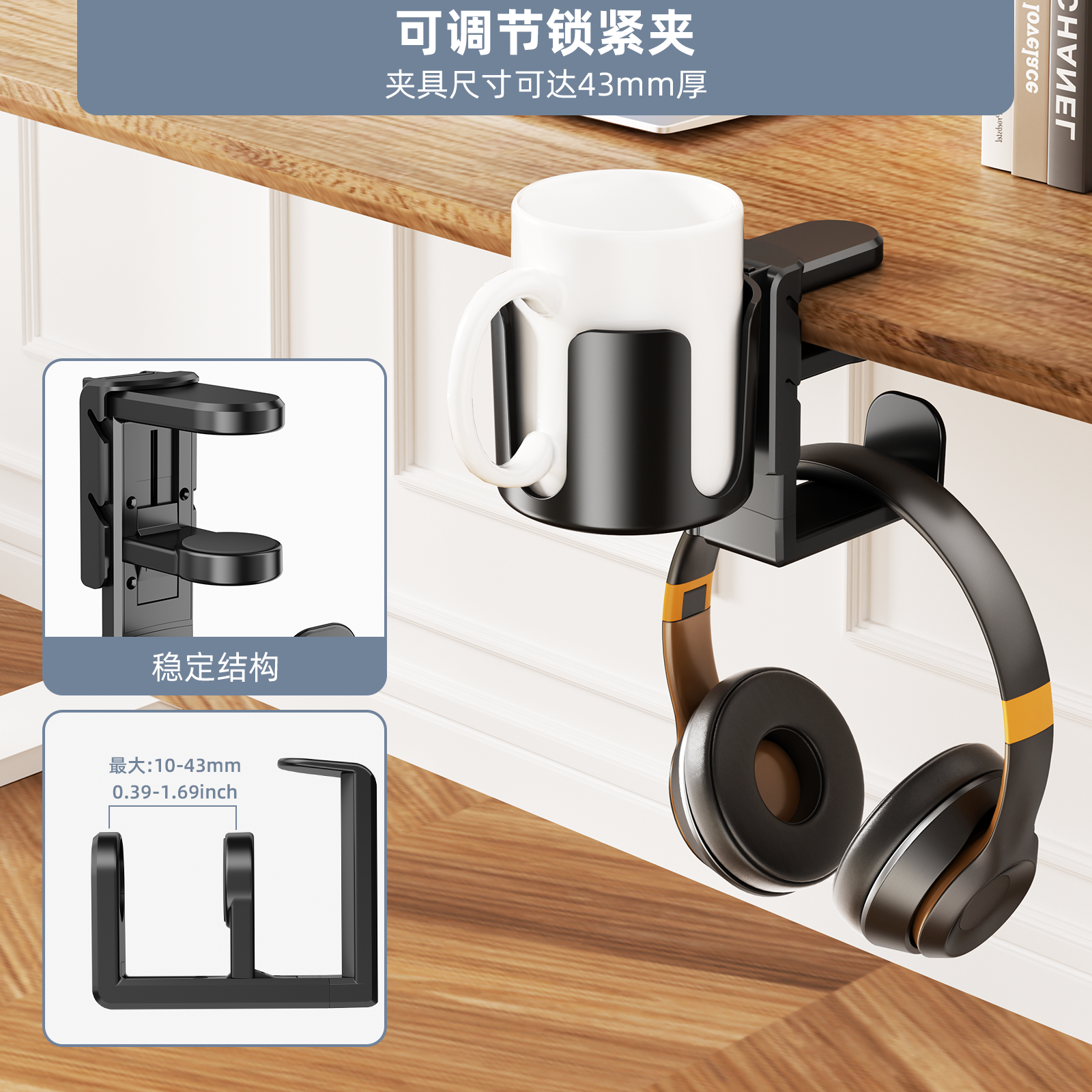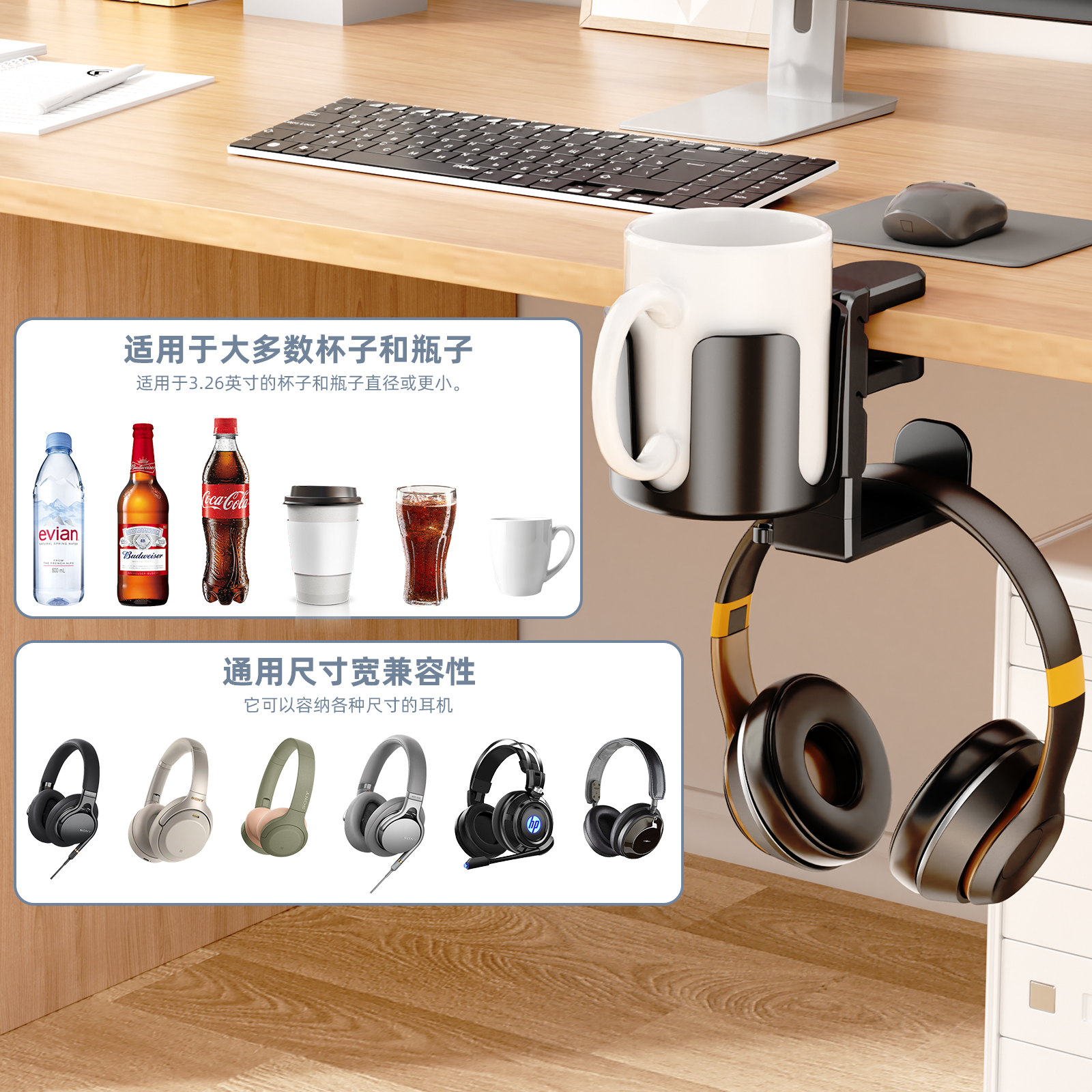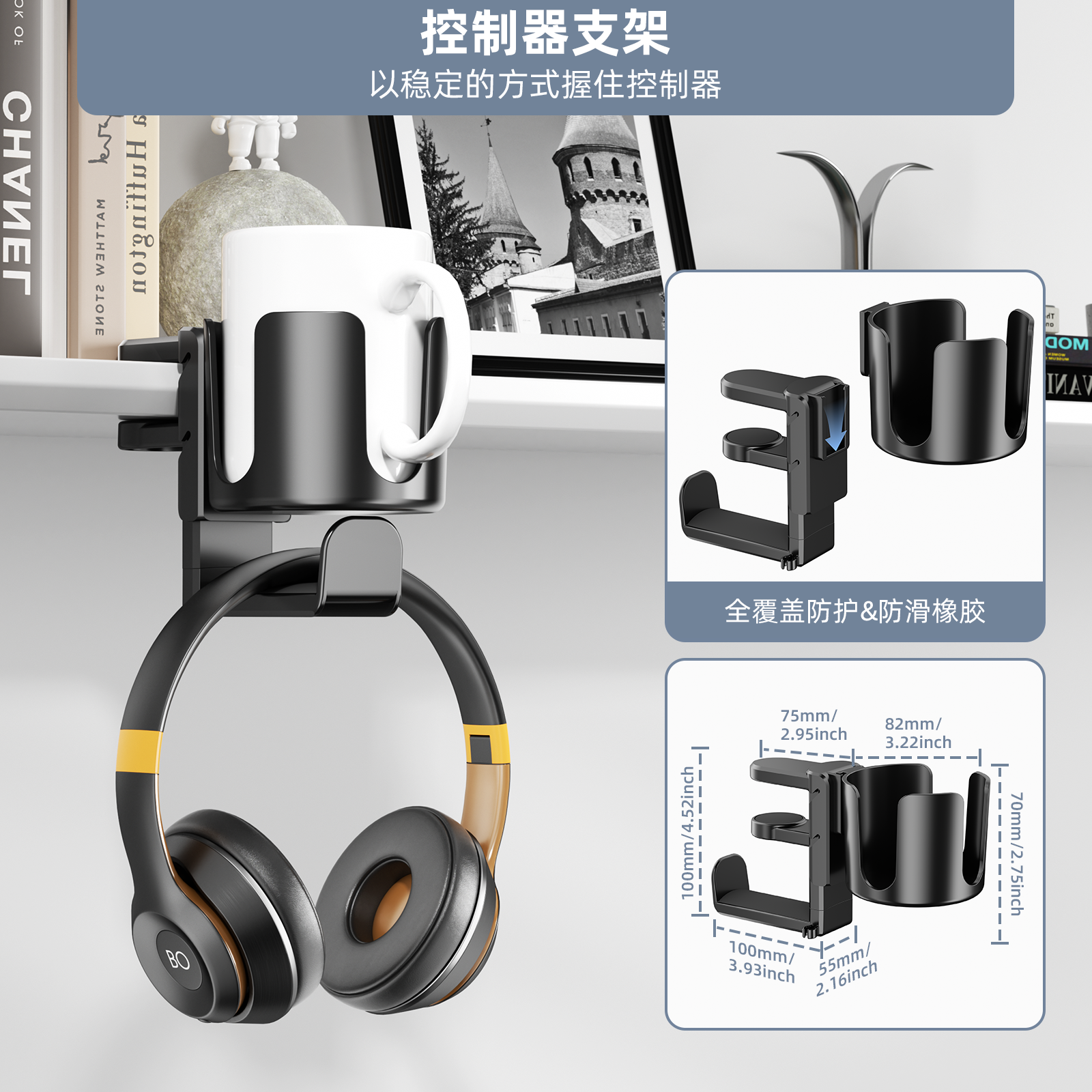Headphone and Water Bottle 2-in-1 Holder, Fitness Ring Storage Stand, Ps5 Controller Xbox Accessories, Switch Clip, Under-Desk Storage Bracket, Multifunctional No-Drill Creative Desktop Stand