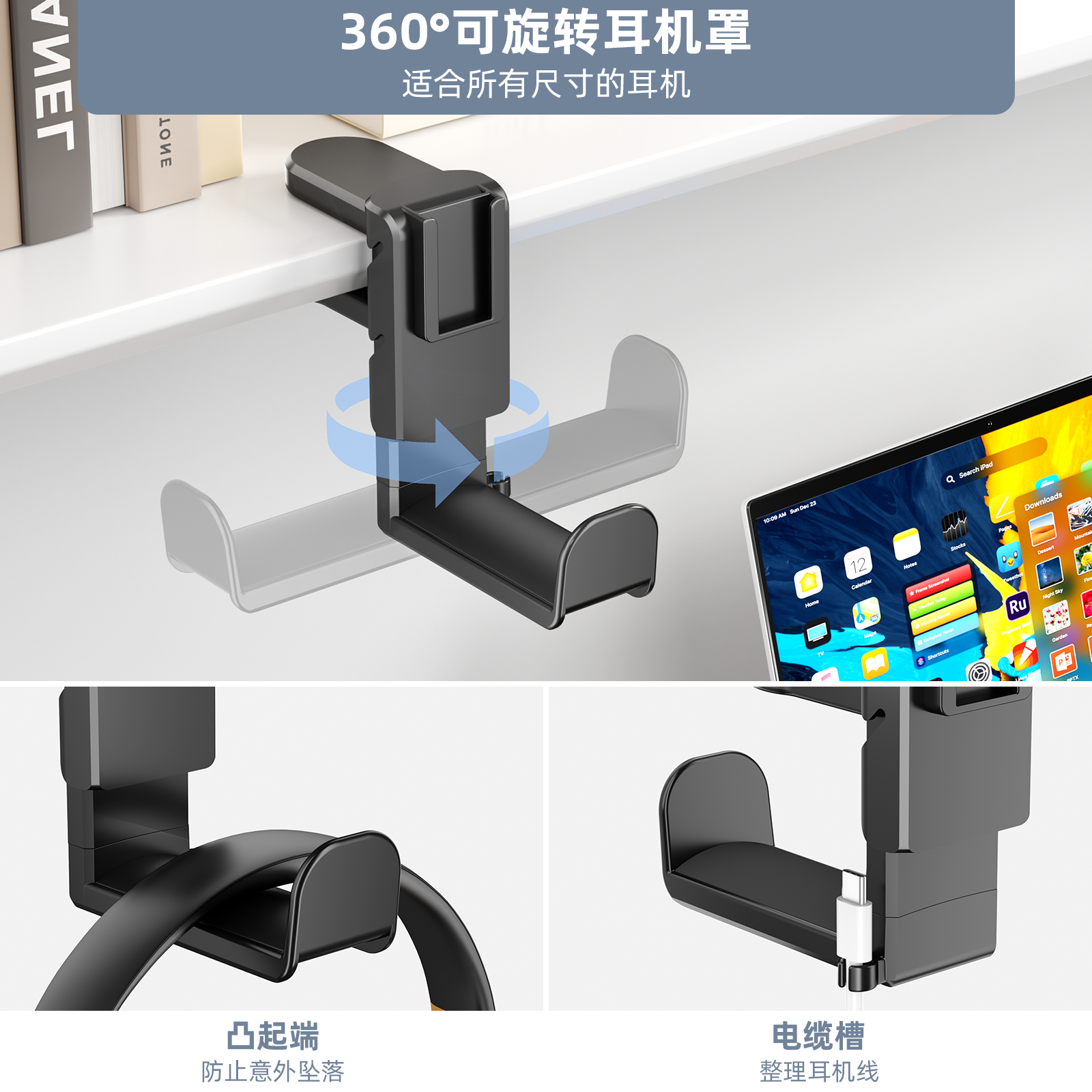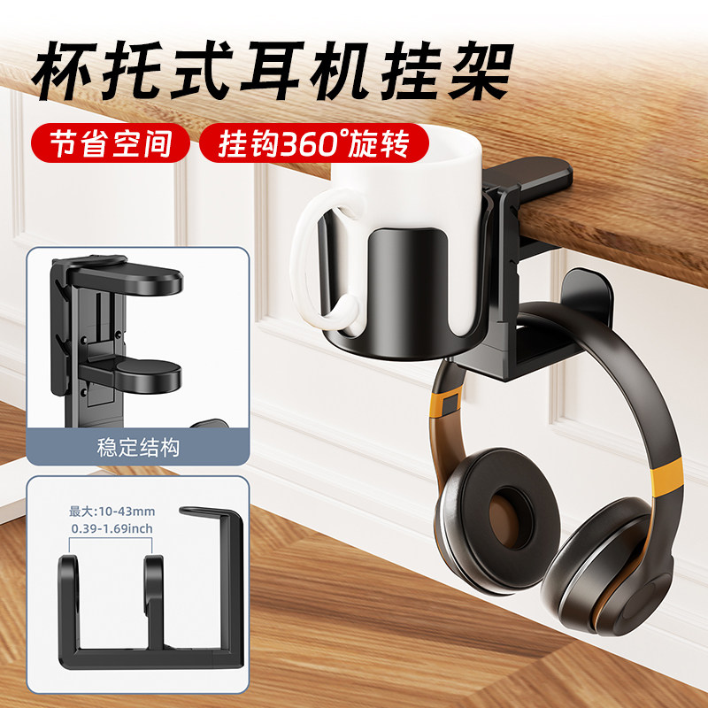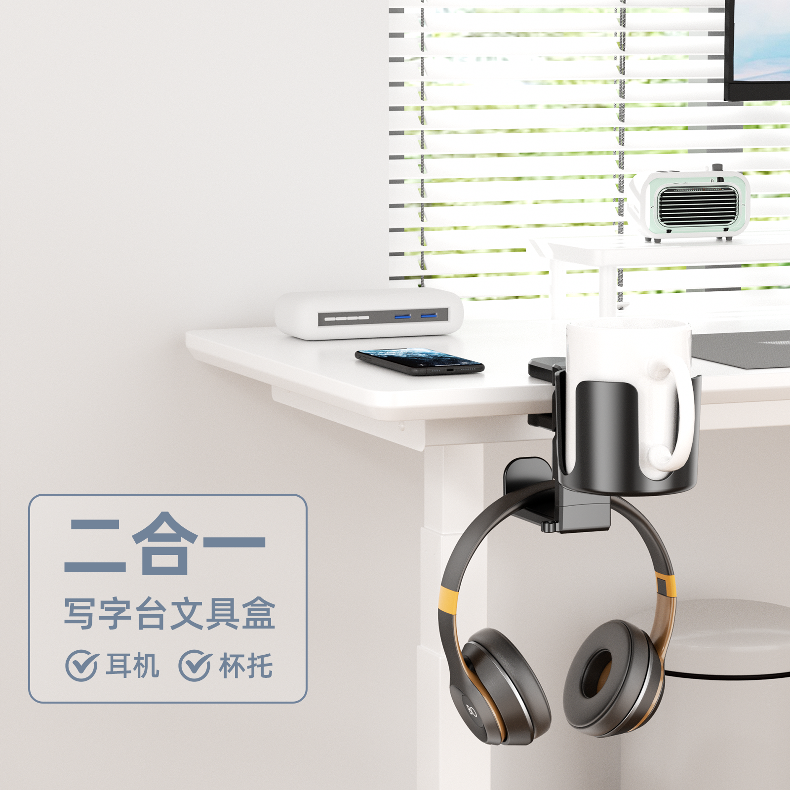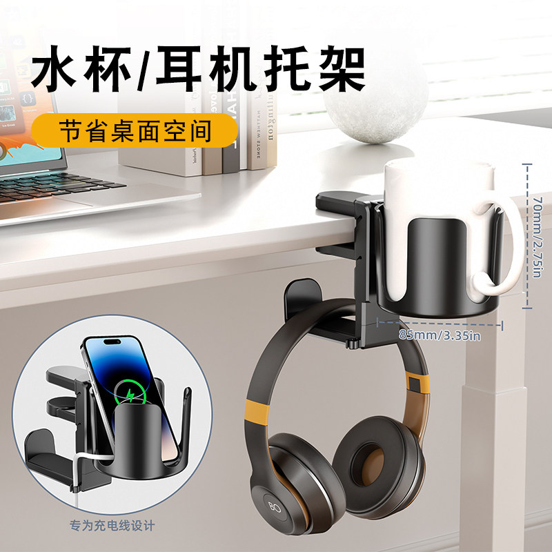 Headphone and Water Bottle 2-in-1 Holder, Fitness Ring Storage Stand, Ps5 Controller Xbox Accessories, Switch Clip, Under-Desk Storage Bracket, Multifunctional No-Drill Creative Desktop Stand