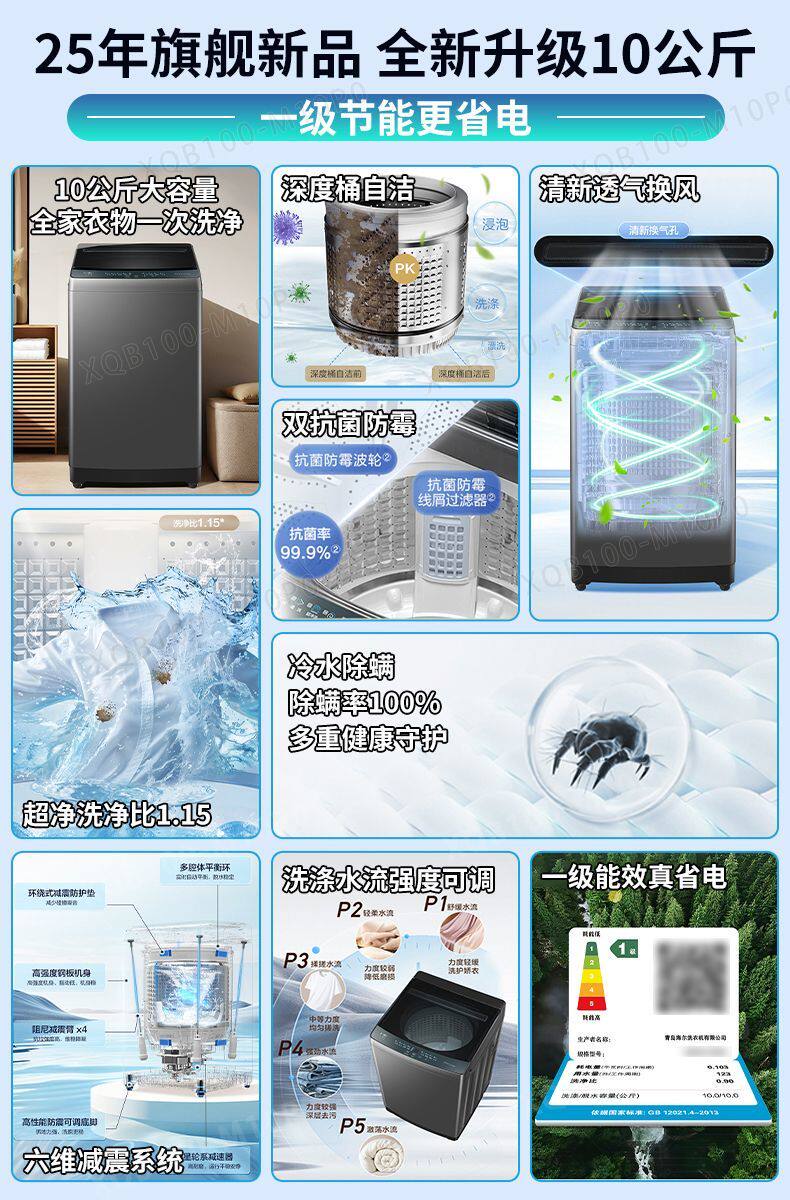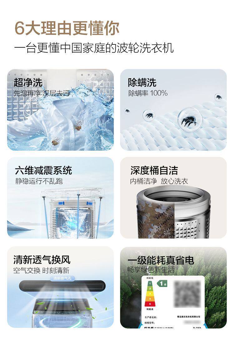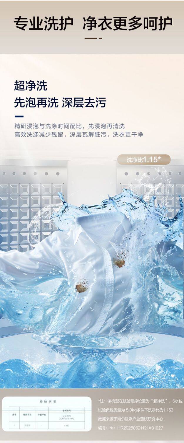 Haier Pulsator Washing Machine Fully Automatic Household 10kg First-Class Energy Efficiency Large Capacity Mite Removal Xqb100-M10P0