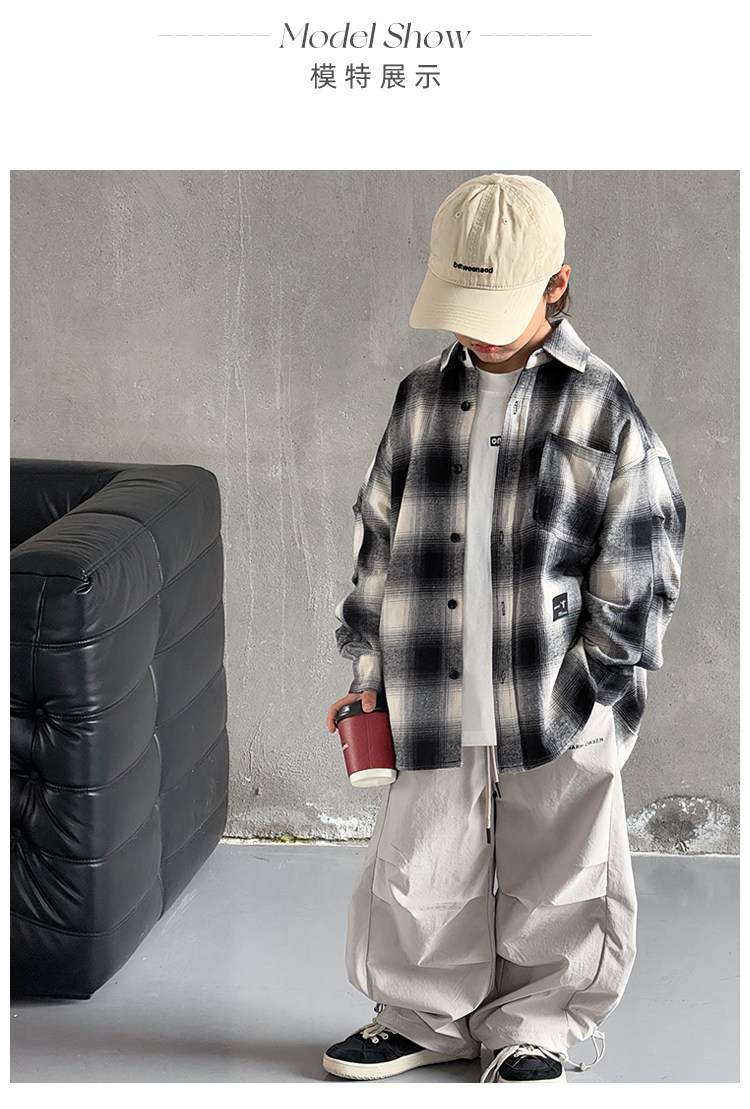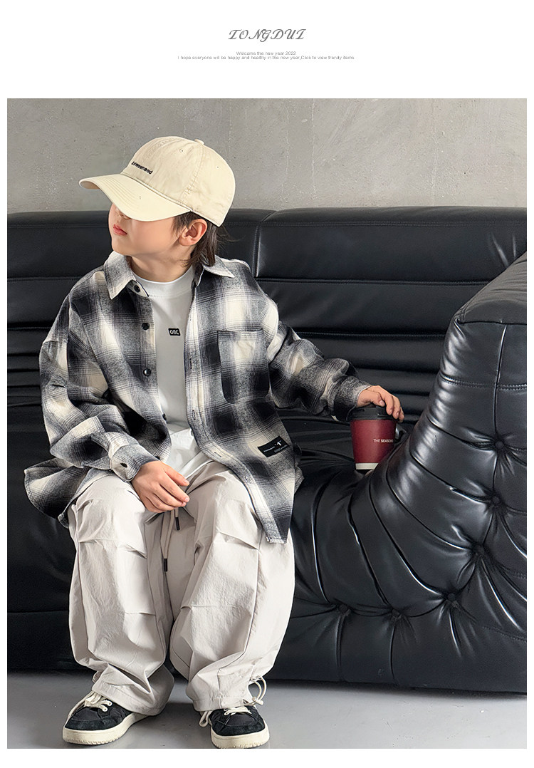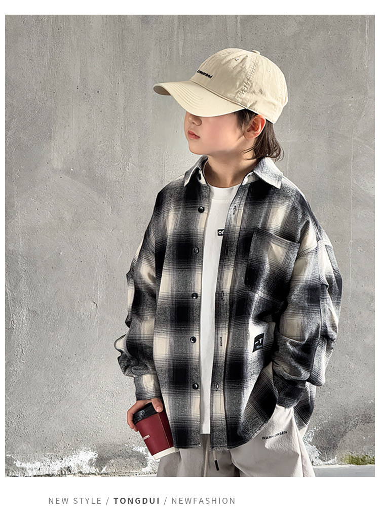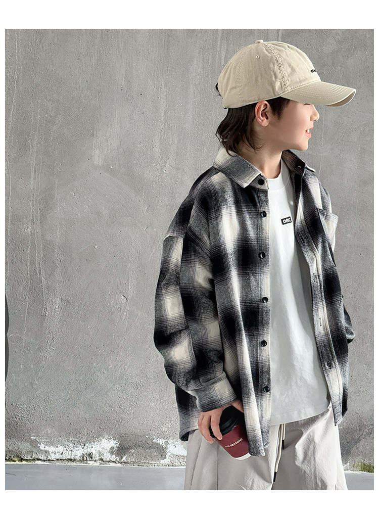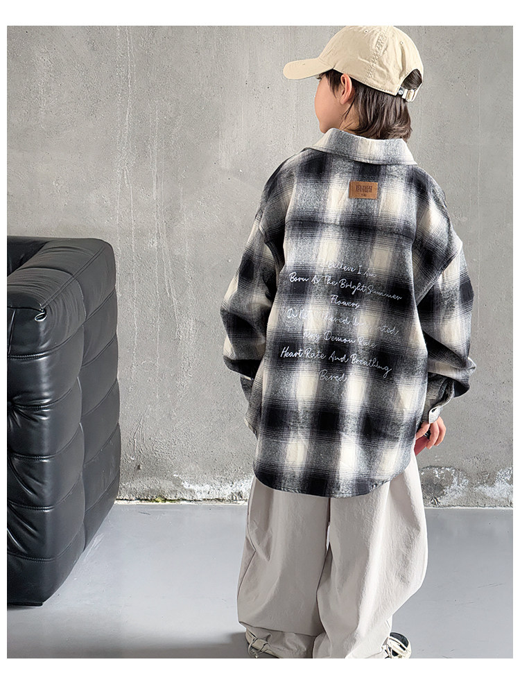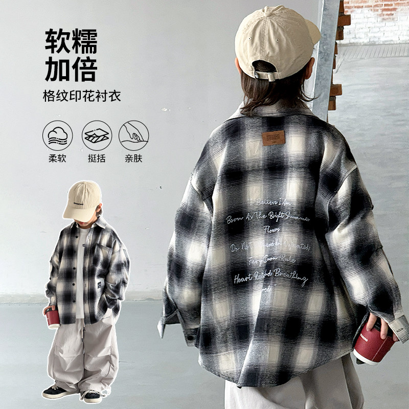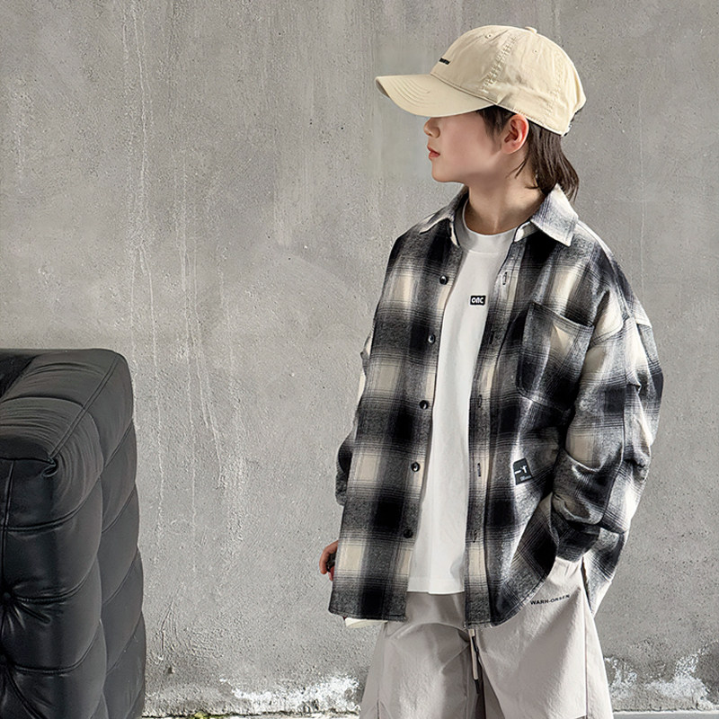 Children's Clothing Boys' Shirts Spring and Autumn 2025 New Autumn Boys' Shirts for Older Children Long-Sleeved Jackets Cool and Trendy