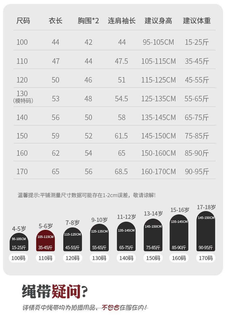 Size 100cm,110cm,120cm,130cm,140cm,150cm,160cm,170cm