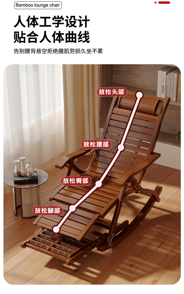 Folding Lounge Chair for Adults, Rocking Chair for Home Use, Comfortable Nap Chair, Lazy Chair for the Elderly, Balcony Leisure Chair, Patio Stool Chair