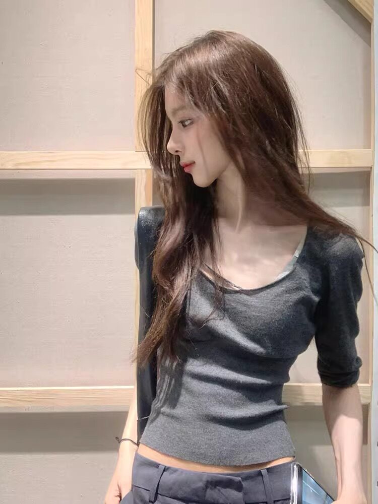 Pure Desire U-Neck Regular Shoulder Short-Sleeve T-Shirt for Women, New Summer Style, High-End Feel, Slim Fit, Sweet, Age-Reducing, Versatile Half-Sleeve Top