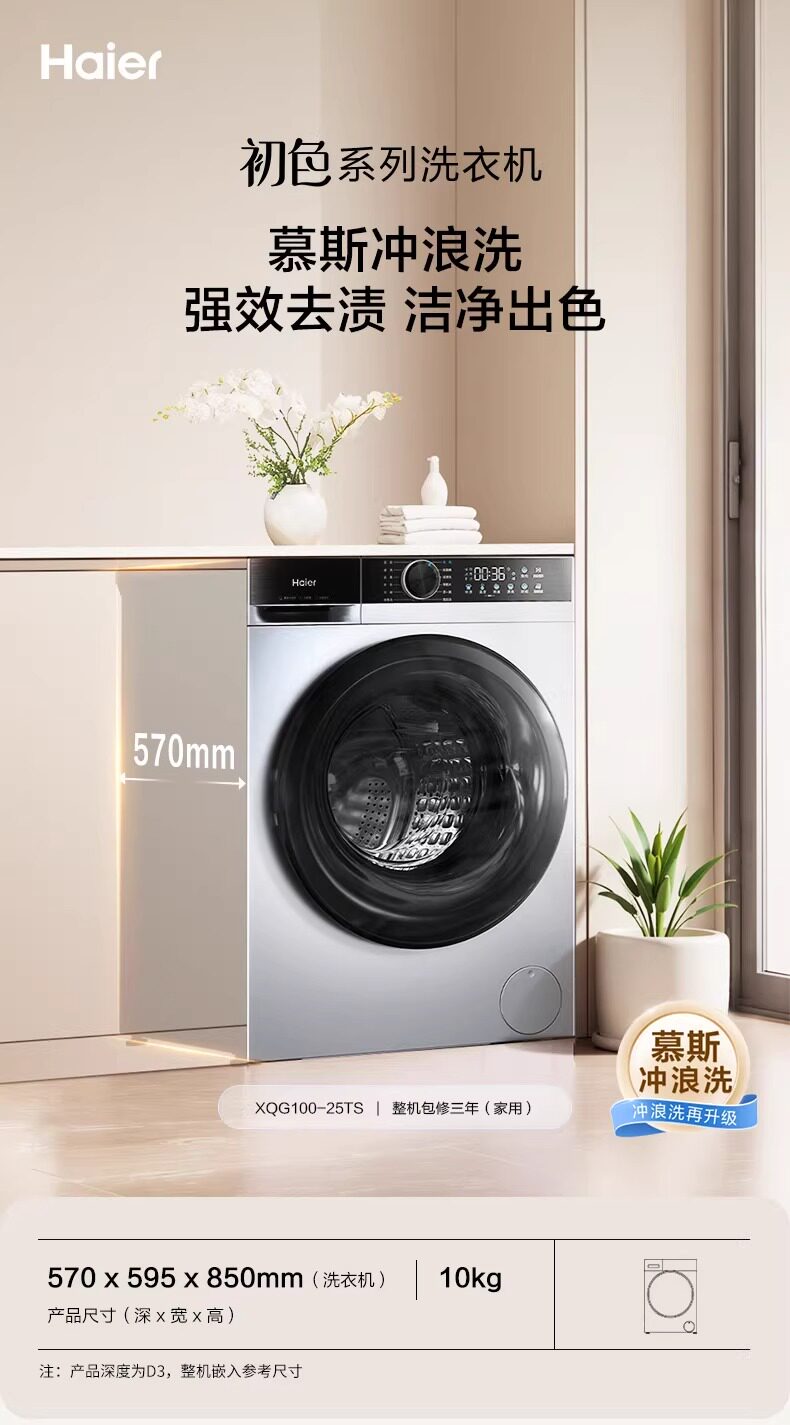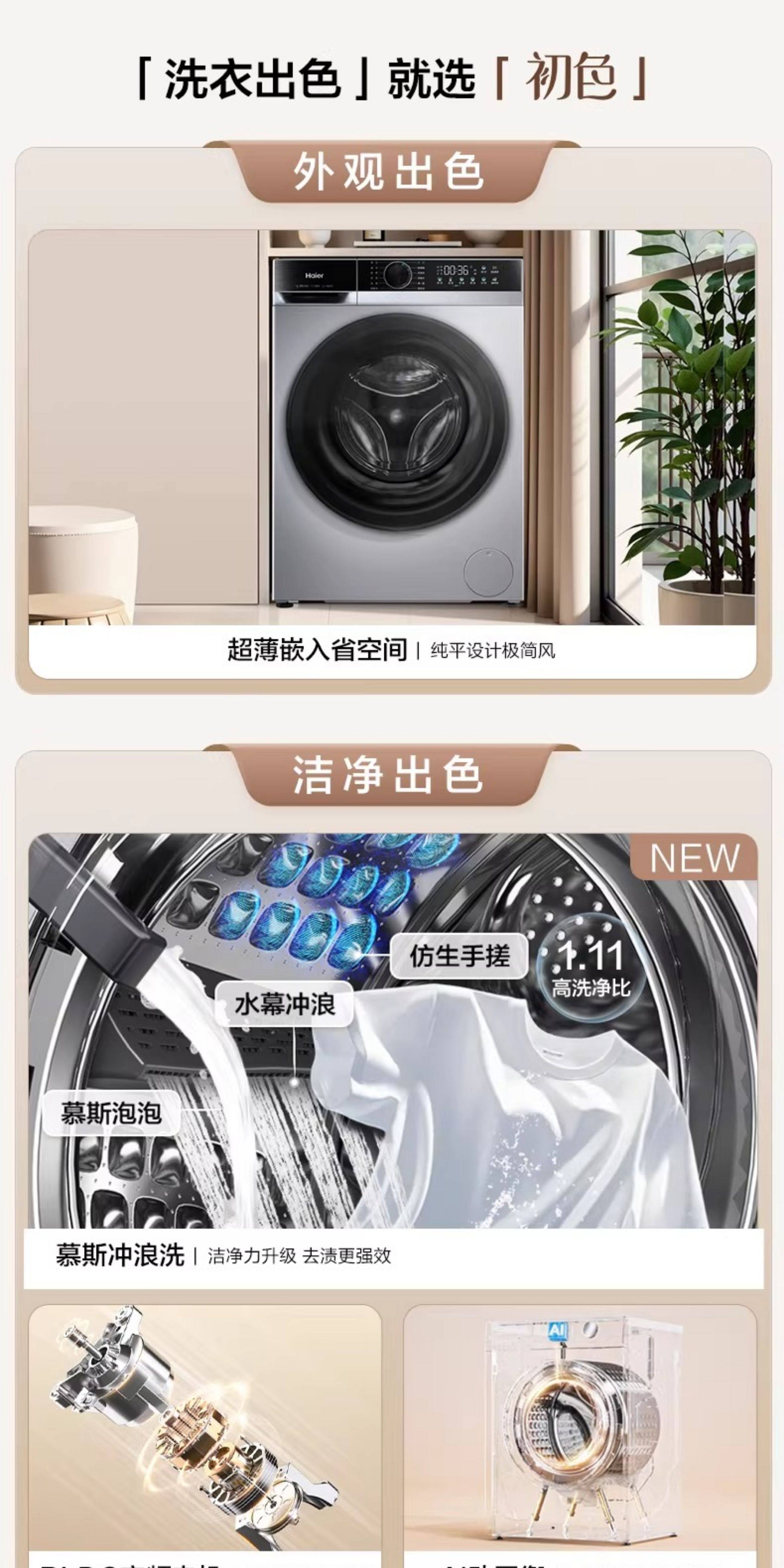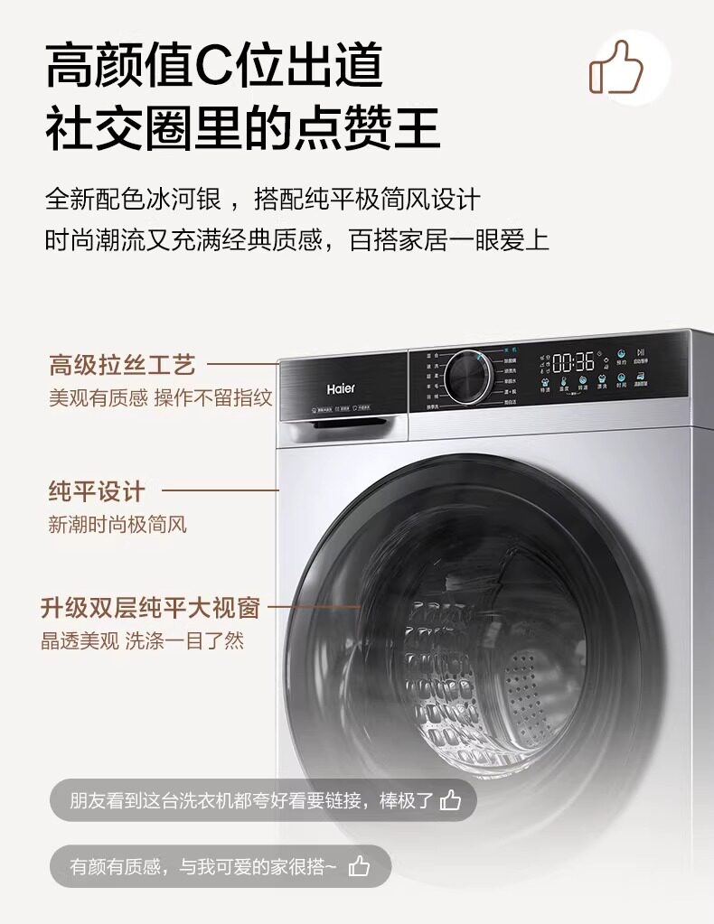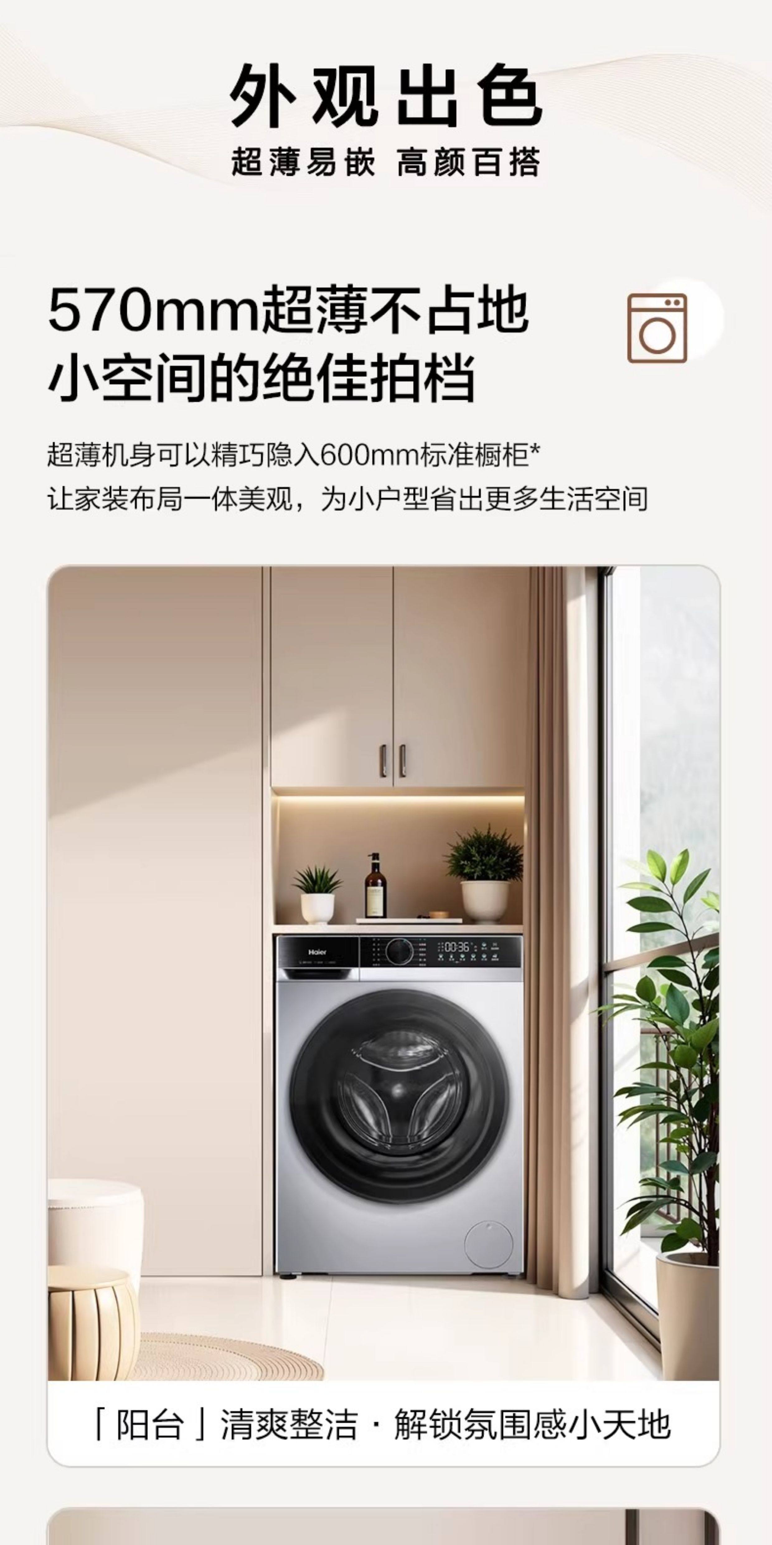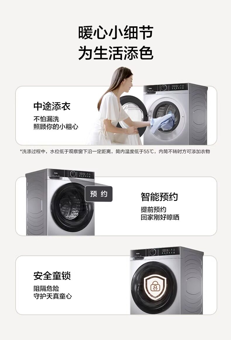 Haier Xqg100-25Ts Fully Automatic Ultra-Thin 10kg Large Capacity Washing and Drying Integrated Drum Washing Machine