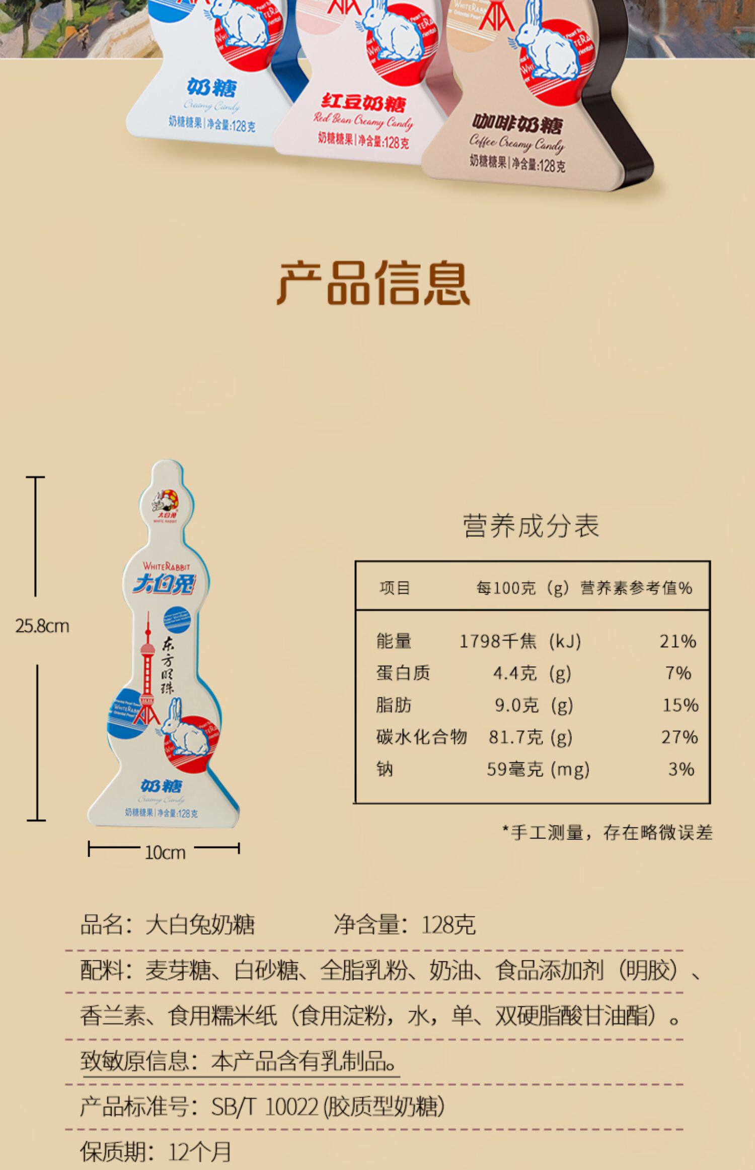 White Rabbit Oriental Pearl Gift Box Toffee 128g Free Gift Wedding Celebration Candy Children's Snacks Shanghai