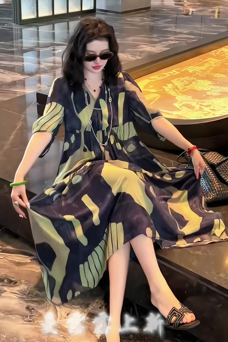 French Elegant and Fashionable Classic Printed Shirt Dress for Women, Spring New Style, Loose, Large Size, Lightweight, Casual Style Long Skirt