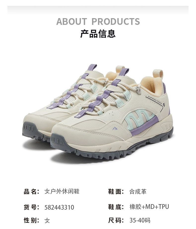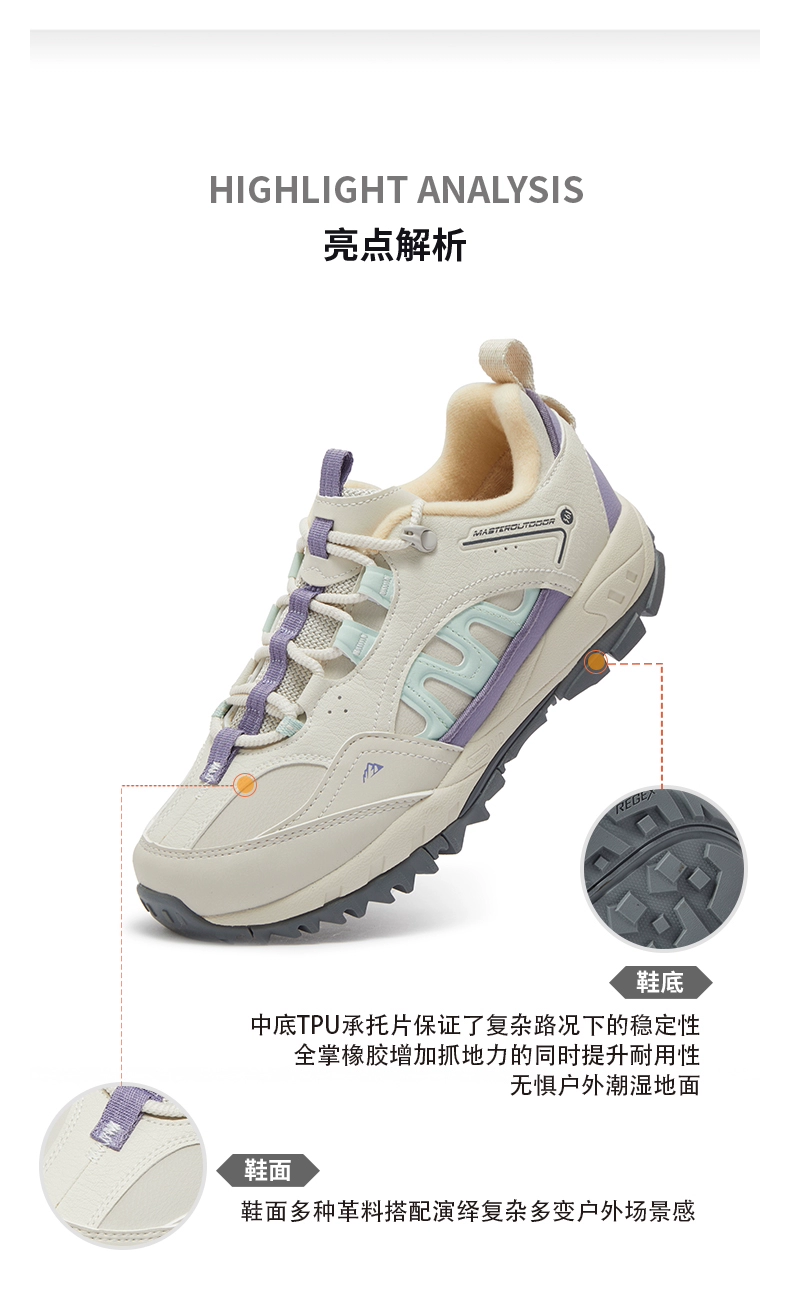 361 Women's Leather Hiking Shoes New Product 2024 Winter Non-Slip Hiking Shoes Women's Velvet Lining Sports Shoes 582443310