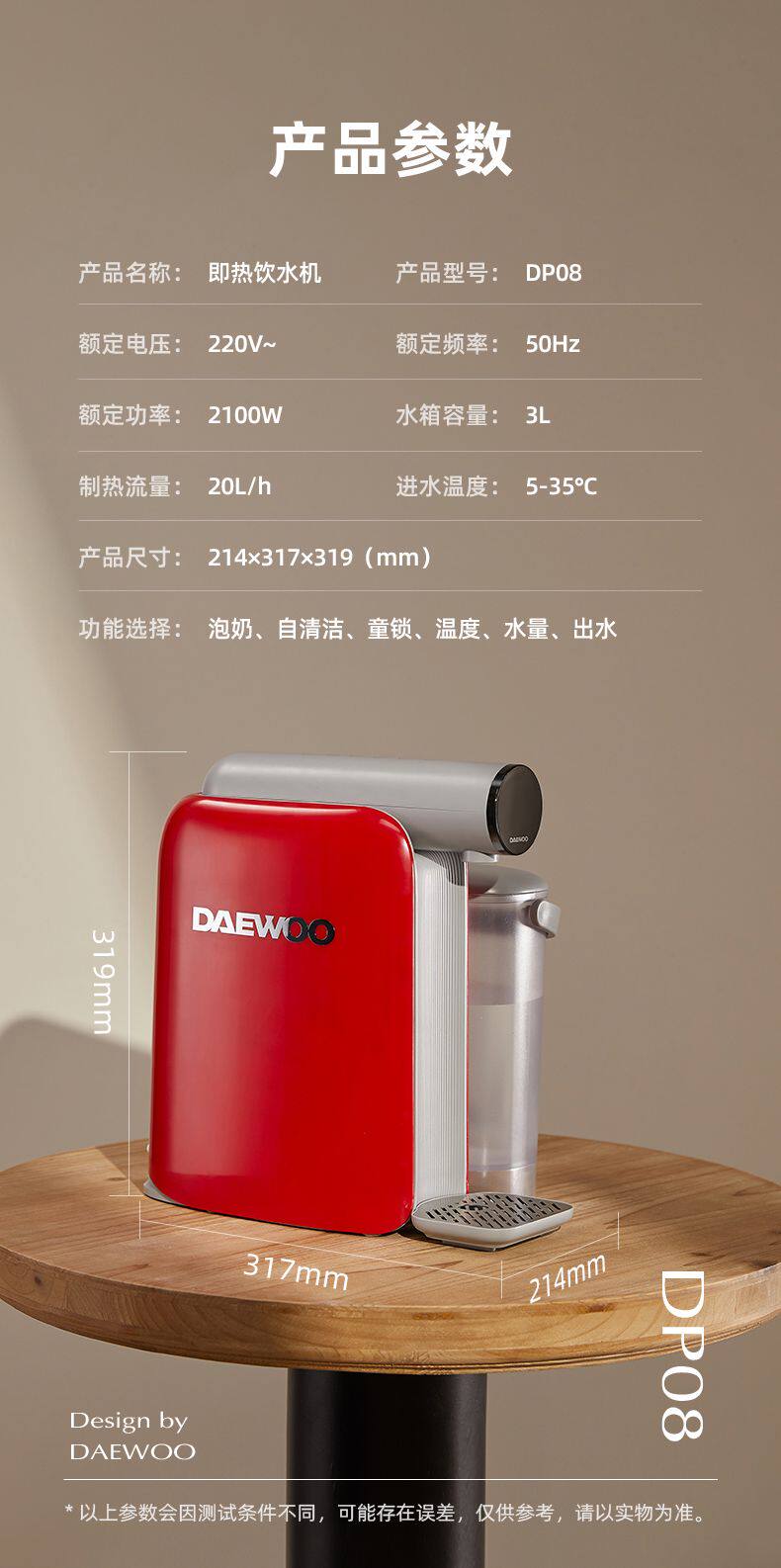 Daewoo Instant Hot Water Dispenser and Water Cooler All-In-One Household Desktop Small Water Dispenser for Direct Drinking