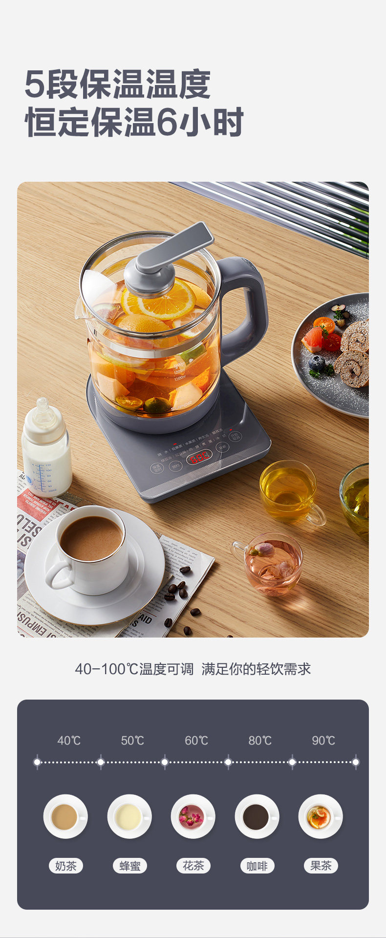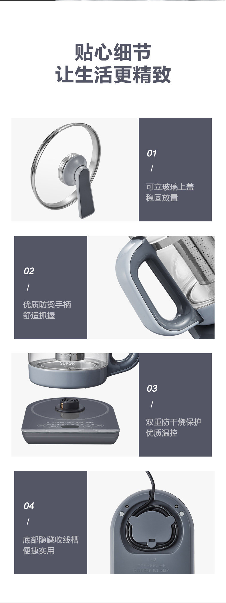 Supor Health-Preserving Kettle, Tea Maker, Multifunctional for Home and Office, Small Automatic Tea Brewing and Decoction Kettle