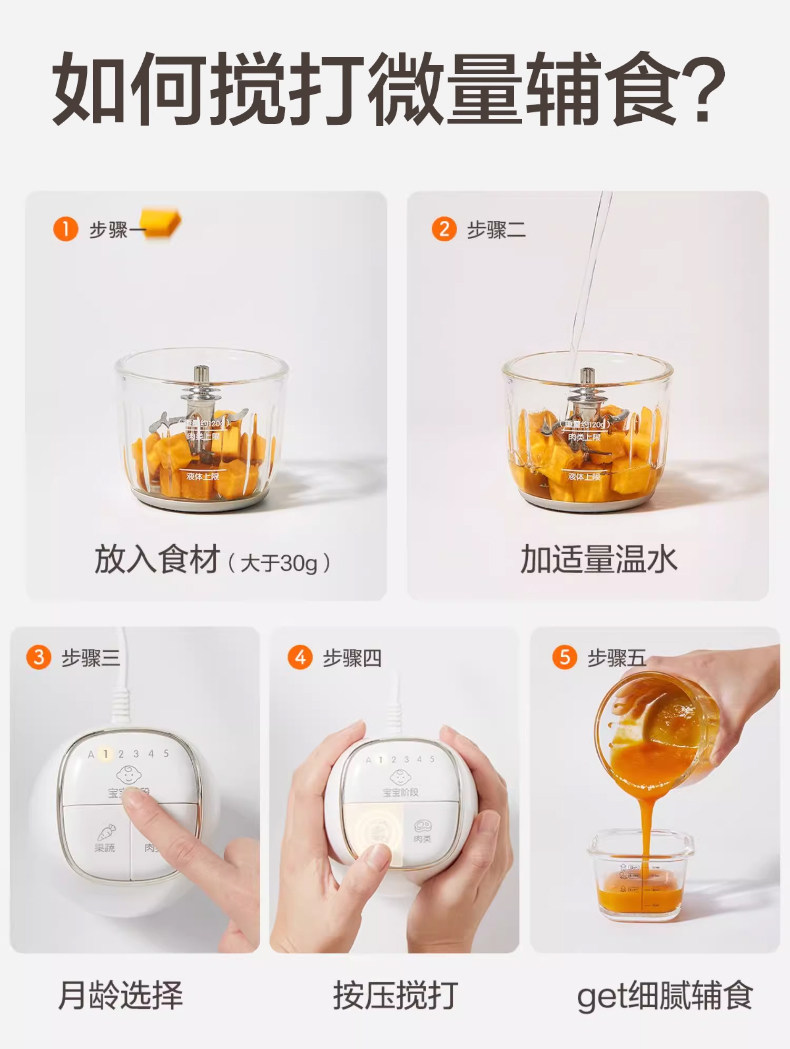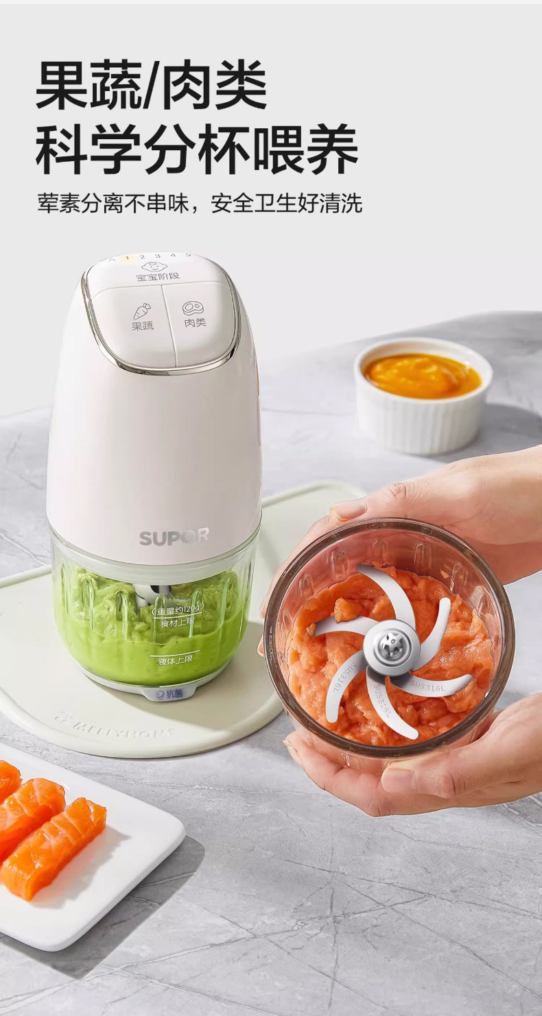 Supor Multi-Functional Baby Food Processor for Different Age Groups, Small Food Processor for Infants, Multi-Purpose Blender and Food Chopper