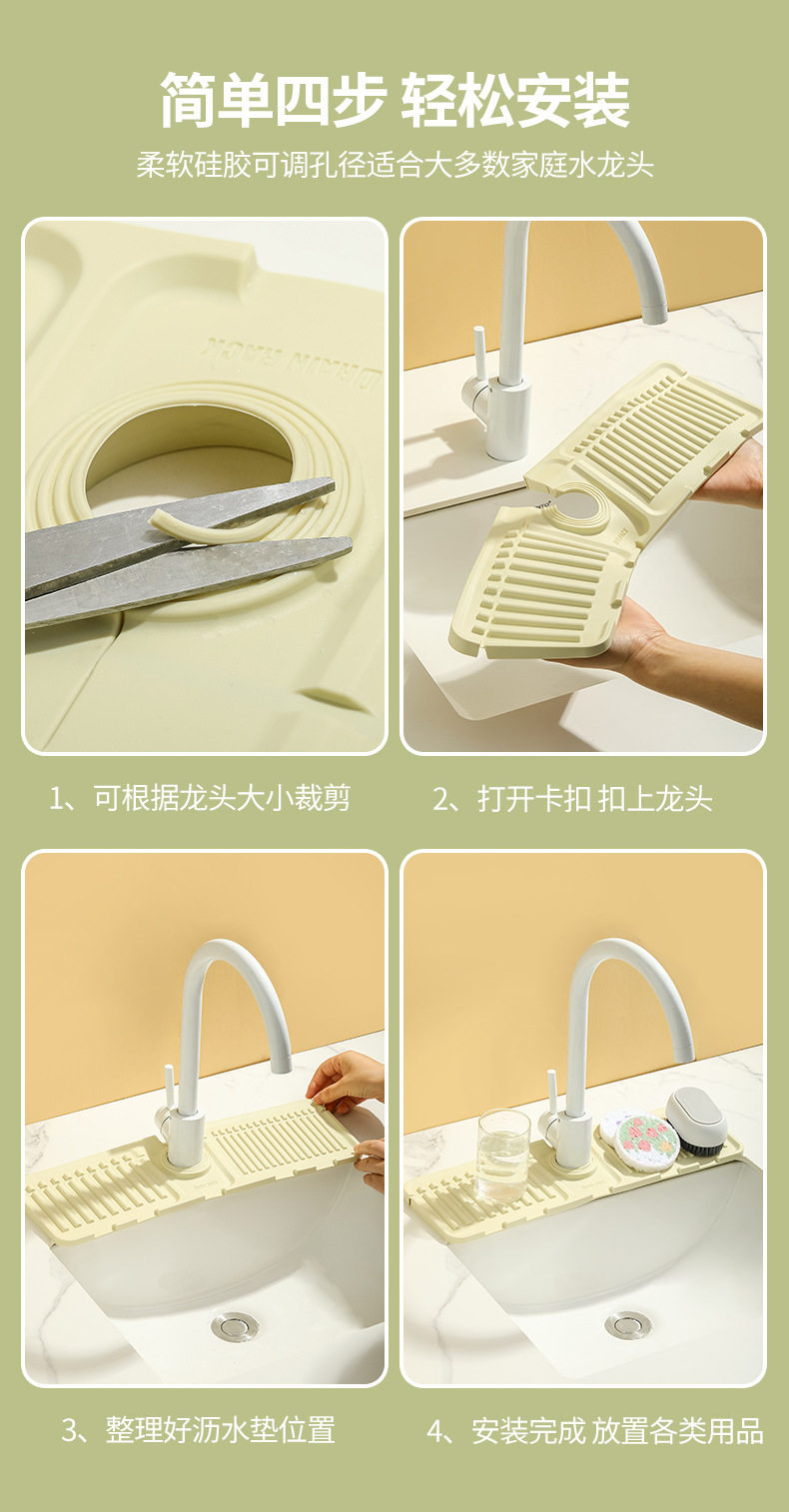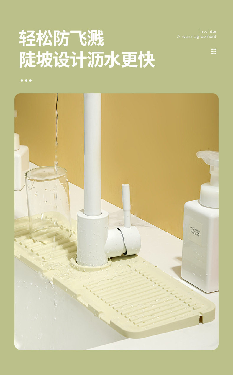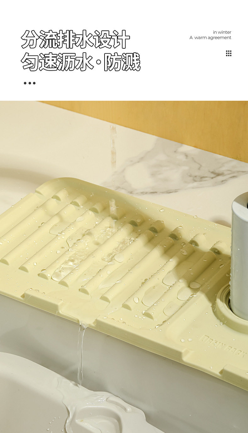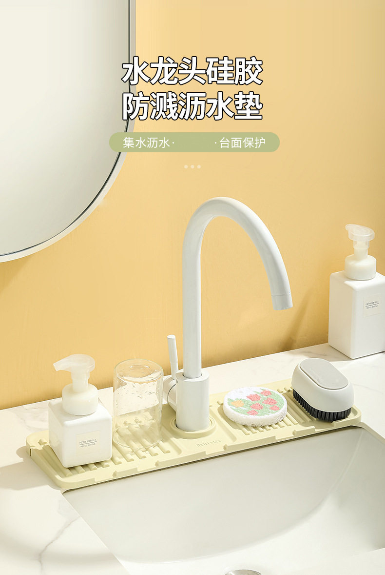 Bathroom Faucet Drain Pad, Non-Slip Countertop Mat, Kitchen and Bathroom Splash-Proof Sink Thickened Anti-Mildew Silicone Mat