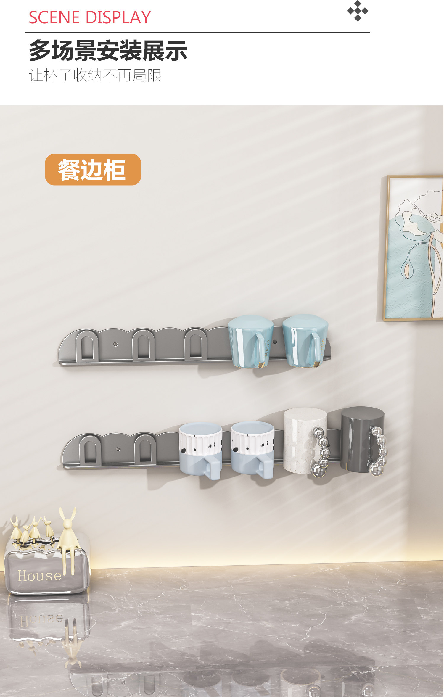 Cup Rack, Kitchen Cup Holder, Inverted Draining Rack, Sideboard Storage Rack, Baby Bottle, Thermos Cup, Beer Mug Wall-Mounted