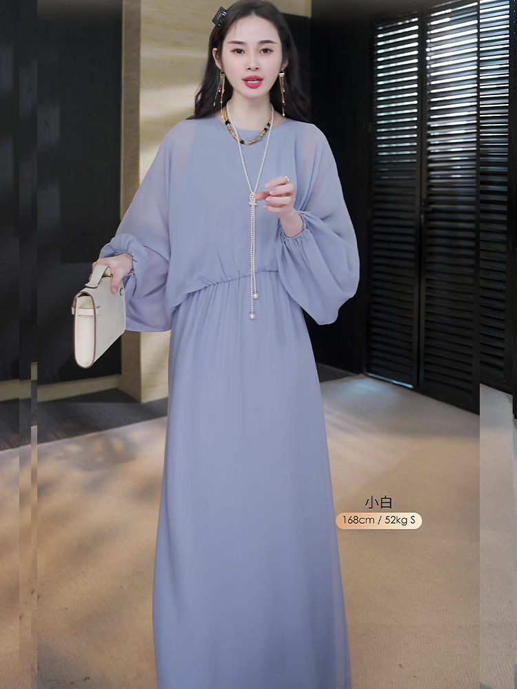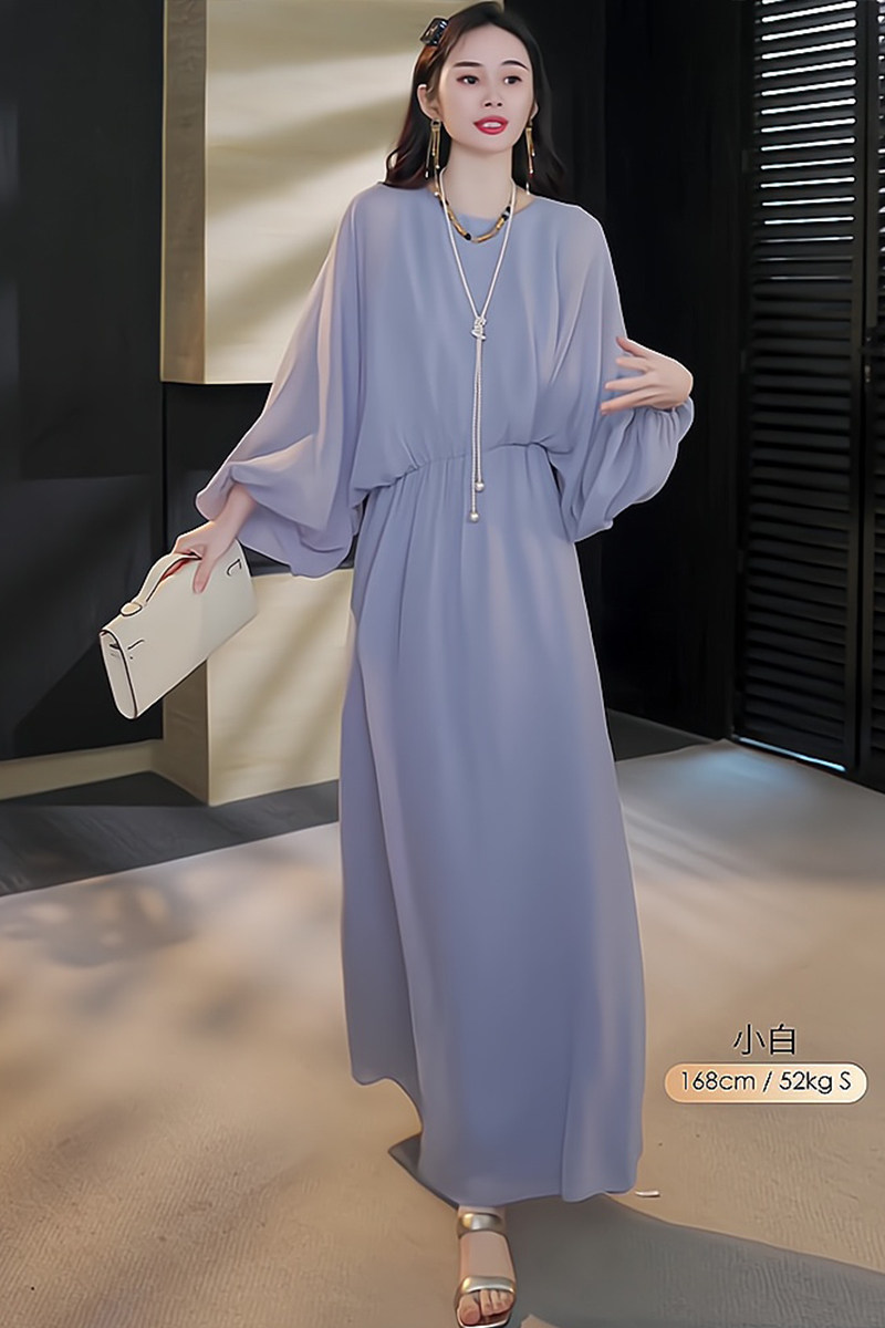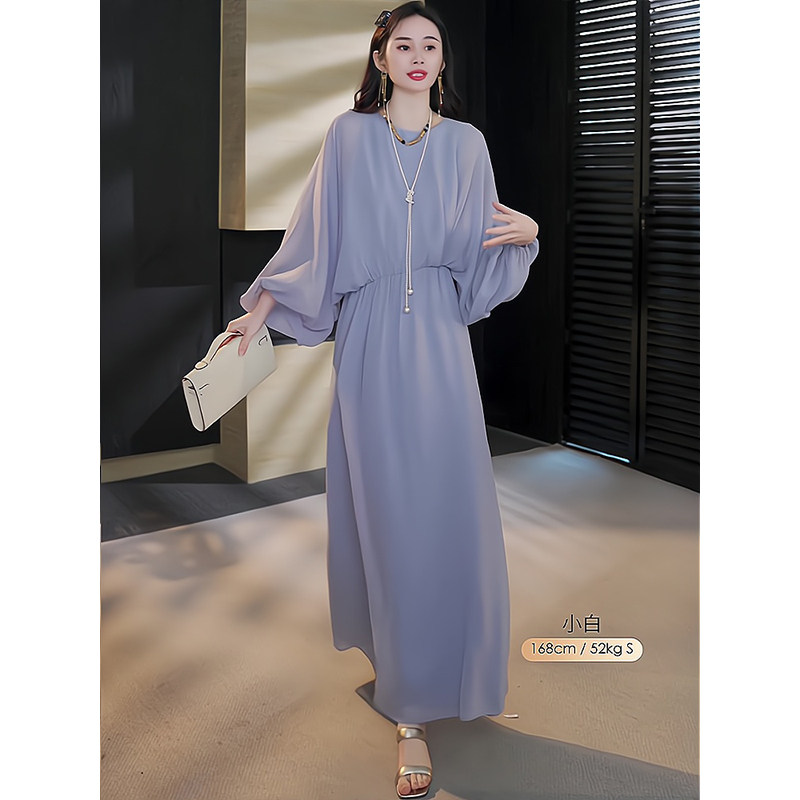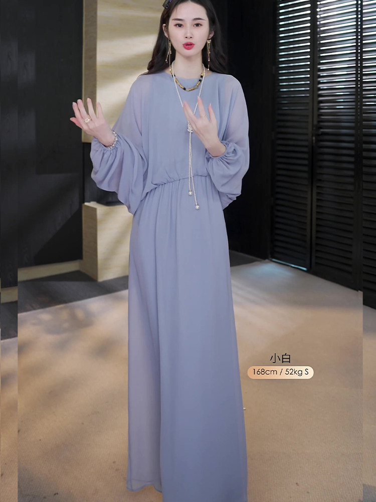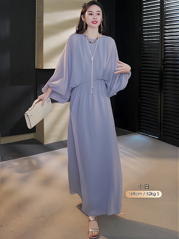 Mijie 2025 New Aqua Blue Elegant and Slimming Dress for Women, Suitable for Daily Wear and Commuting, Loose-Fitting Greek Vintage Long Dress