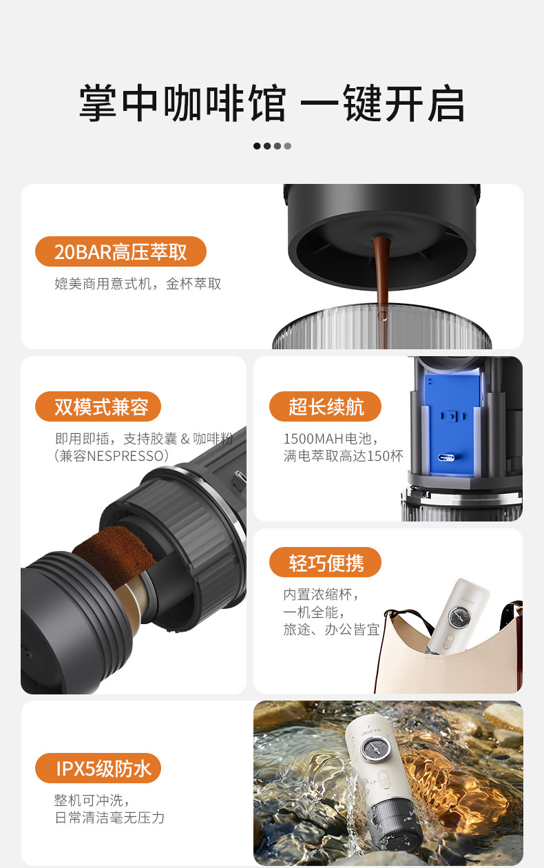 Color Classification The Brand Won Three International Design Awards,Lecui Professional Portable Coffee Machine [Capsule Bin + 51mm Powder Bowl] 20Bar High Pressure Extraction,Lecui Professional Portable Coffee Machine Set [Coffee Machine + Electric Grinder + Milk Frother],Lecui Professional Portable Coffee Machine Set [Coffee Machine + Kst Hand Crank + Milk Frother]