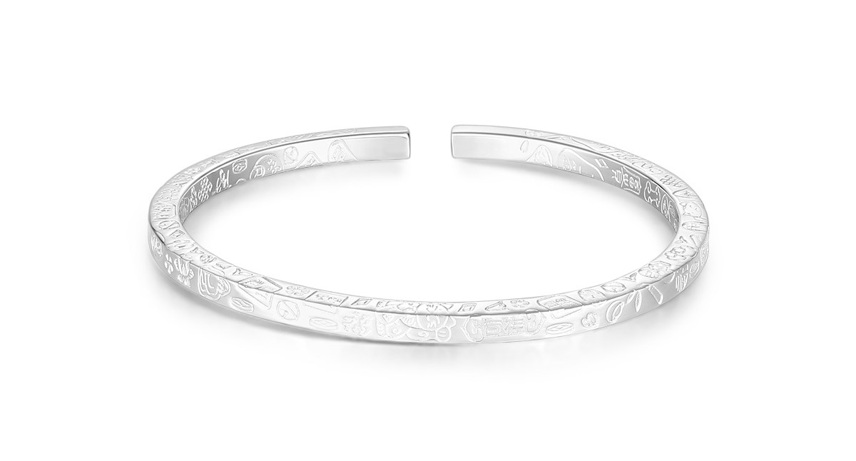 Zhou Dasheng S990 Pure Silver Bracelet, Traditional Open Design with Auspicious Words, Plain Silver Bangle, Jewelry Gift for Her Birthday
