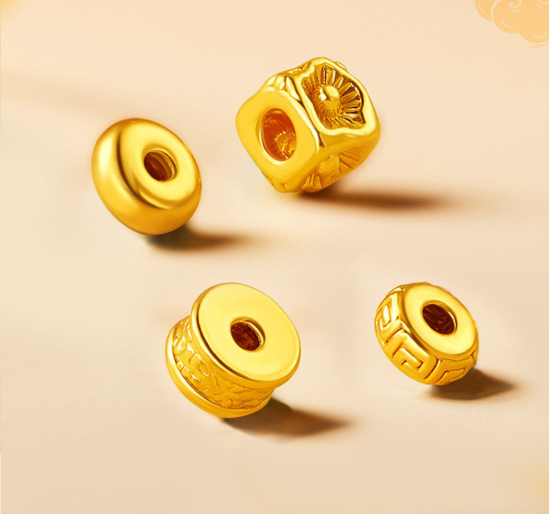 Caibai jewelry pure gold transfer beads micro-hard gold national style small partition beads transfer beads diy with woven small accessories