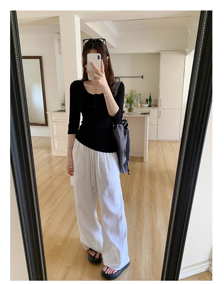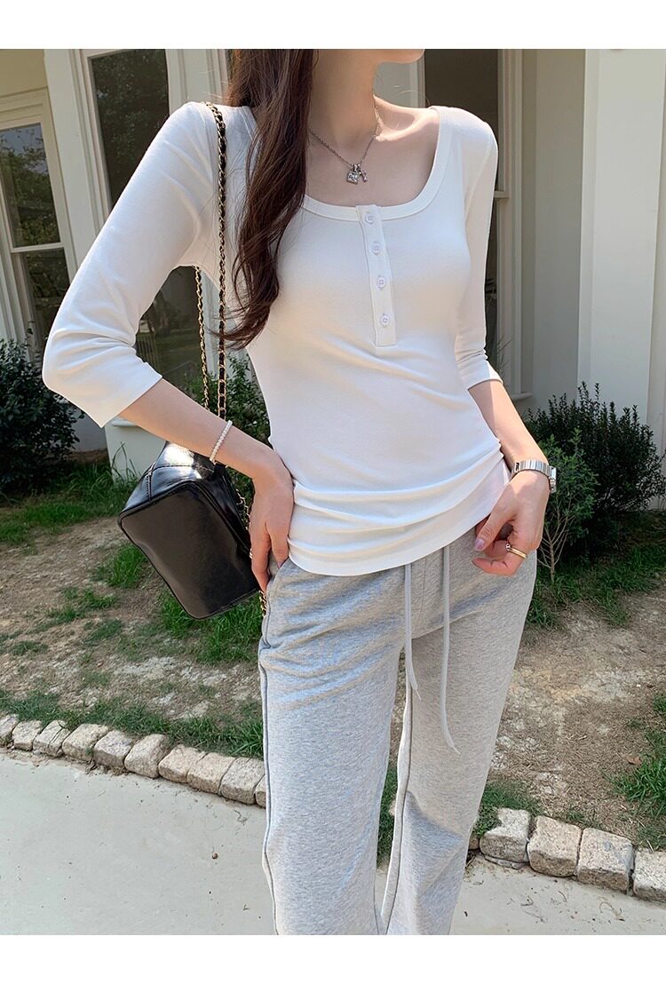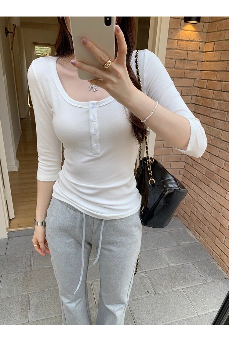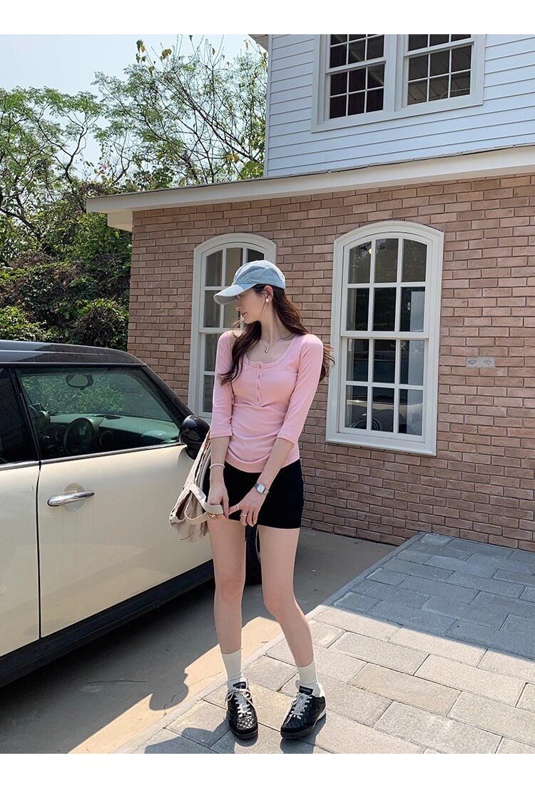 Klein Blue U-Neck Mid-Sleeve T-Shirt for Women, Summer Low-Neck, Revealing Collarbone, Regular Shoulder, Slim Fit, Versatile Half-Sleeve Base Shirt Top
