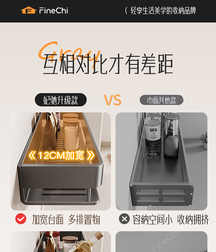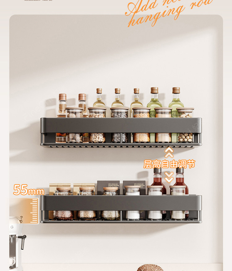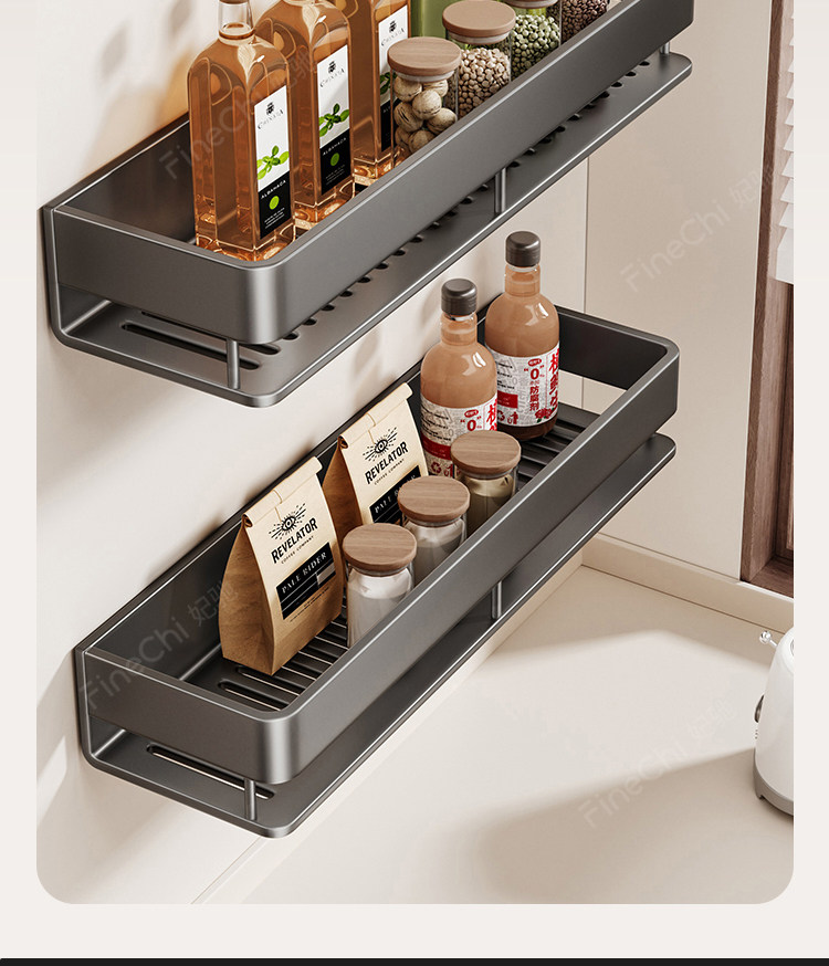 Finechi Kitchen Storage Rack, No-Drill Wall-Mounted Spice Rack, Elevated Multi-Functional Storage Shelf for Condiments