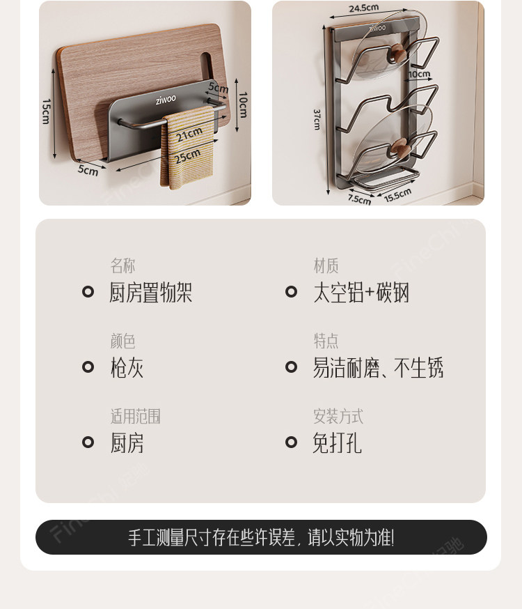 Color Classification 【Gun Ash⭐7-Piece Set] Recommended Hot Item (Seasoning Rack*2+Pot Lid Rack+Chopping Board Rack+Knife Rack+Chopstick Barrel+Hook Row),【Gun Ash⭐6-Piece Set] Recommended Hot Item (Seasoning Rack*2+Pot Lid Rack+Chopping Board Rack+Knife Holder+Chopstick Barrel),【Gun Ash⭐5-Piece Set a] a Great Value Recommendation (Seasoning Rack*2+Pot Lid Rack+Chopping Board Rack+Hook),【Gun Ash⭐5-Piece Set B] a Great Value Recommendation (Seasoning Rack*2+Knife Holder+Chopstick Holder+Hook),【Gun Ash⭐4-Piece Set a] (Seasoning Rack*2+Pot Lid Rack+Chopping Board Rack),【Gun Ash⭐4-Piece Set B] (Seasoning Rack*2+Chopstick Holder+Knife Holder),【Gun Ash⭐4-Piece Set C] (Pot Lid Holder + Chopping Board Holder + Knife Holder + Chopstick Holder),Single Layer-[Heightened and Thickened] 30cm,Single Layer-[Heightened and Thickened] 40cm,Single Layer-[Heightened and Thickened] 50cm,Single Layer-[Heightened and Thickened] 60cm,Single Layer-[Heightened and Thickened] 30cm+5 Hooks,Single Layer-[Heightened and Thickened] 40cm+5 Hooks,Single Layer-[Heightened and Thickened] 50cm+5 Hooks,Single Layer-[Heightened and Thickened] 60cm+5 Hooks,Single Layer - [Heightened and Thickened] 30cm + Towel Bar + with 5 Hooks,Single Layer - [Heightened and Thickened] 40cm + Towel Bar + with 5 Hooks,Single Layer - [Heightened and Thickened] 50cm + Towel Bar + with 5 Hooks,Single Layer - [Heightened and Thickened] 60cm + Towel Bar + with 5 Hooks,Double Layer [Heightened] 30cm+5 Hooks,Double Layer [Heightened] 40cm+5 Hooks,Double Layer [Heightened] 50cm+5 Hooks,Double Layer [Heightened] 60cm+5 Hooks,Double Layer - [Heightened and Thickened] 30cm + Towel Bar + with 5 Hooks,Double Layer - [Heightened and Thickened] 40cm + Towel Bar + with 5 Hooks,Double Layer - [Heightened and Thickened] 50cm + Towel Bar + with 5 Hooks,Double Layer - [Heightened and Thickened] 60cm + Towel Bar + with 5 Hooks,[Gun Gray Zizwoo Co-Branded Design] Three-Layer Pot Lid Holder (Removable),[Gun Gray Zizwoo Co-Branded Design] Double-Layer Pot Lid Holder [Removable],[Gun Gray Zizwoo Co-Branded Design] Knife Holder (Removable),【Gunmetal Gray Ziwoo Collaboration】Chopstick Holder (Detachable),[Gun Gray Zizwoo Co-Branded Design] Chopping Board Rack (Removable),【Gunmetal Gray Ziwoo Collaboration】40Cm 8-Hook Over-The-Door Hanger (Adjustable Hooks)