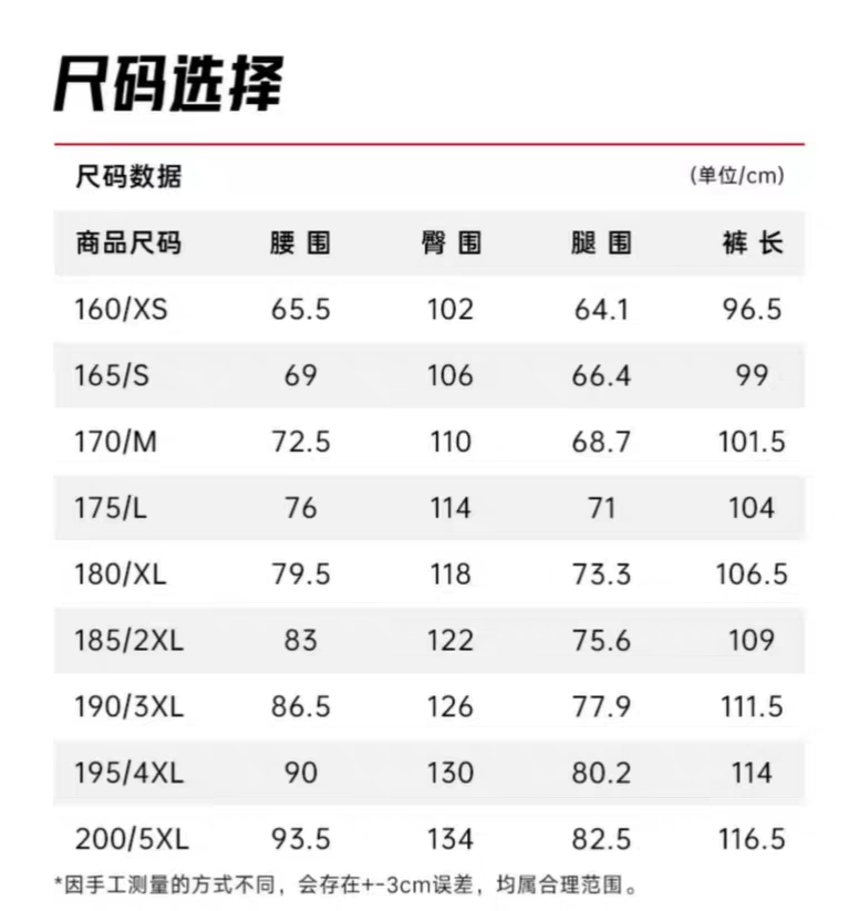 China (cm) 165 / 88-90 170 / 96-98 175 / 108-110 180 / 118-122 185 / 126-130