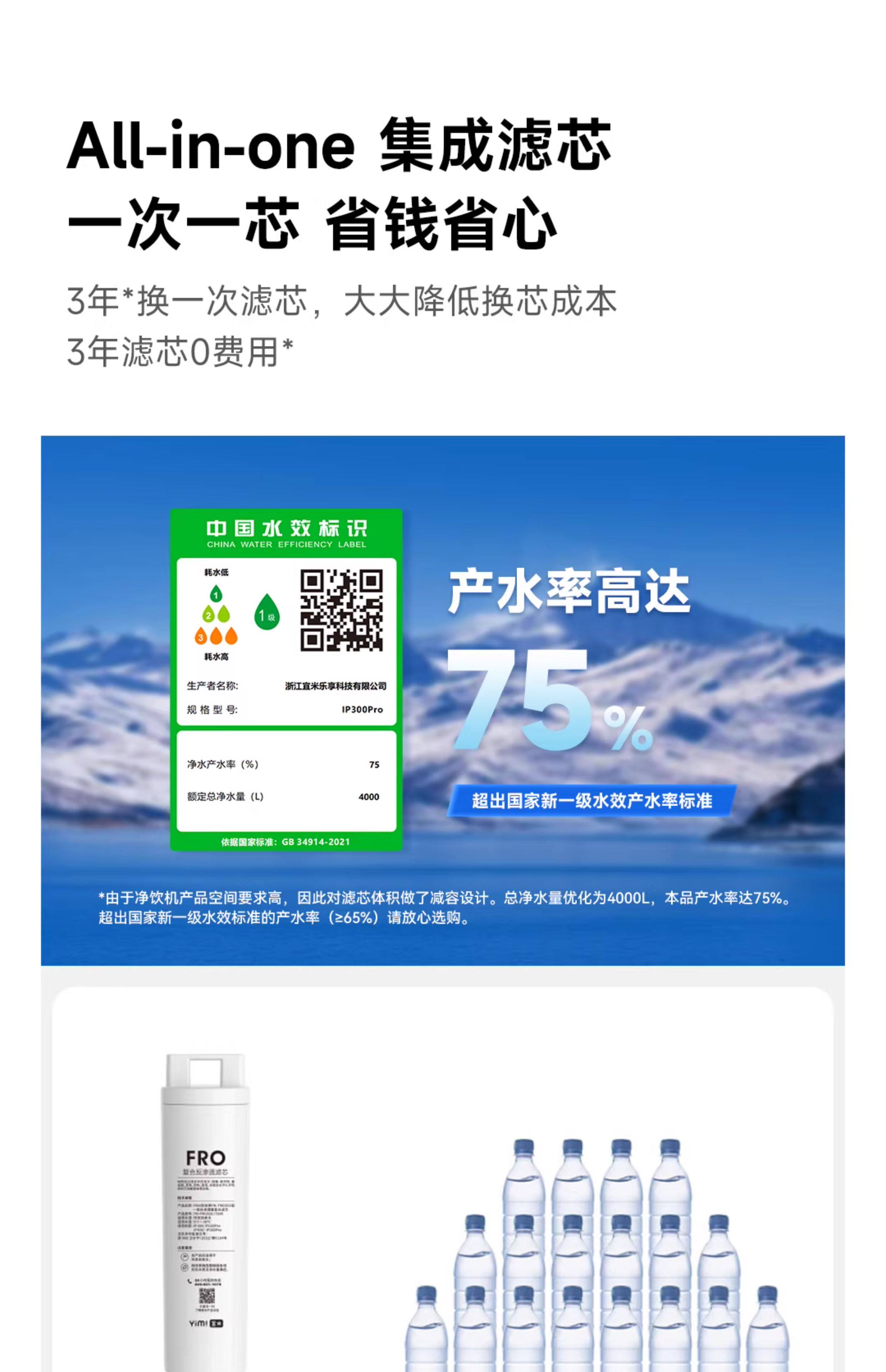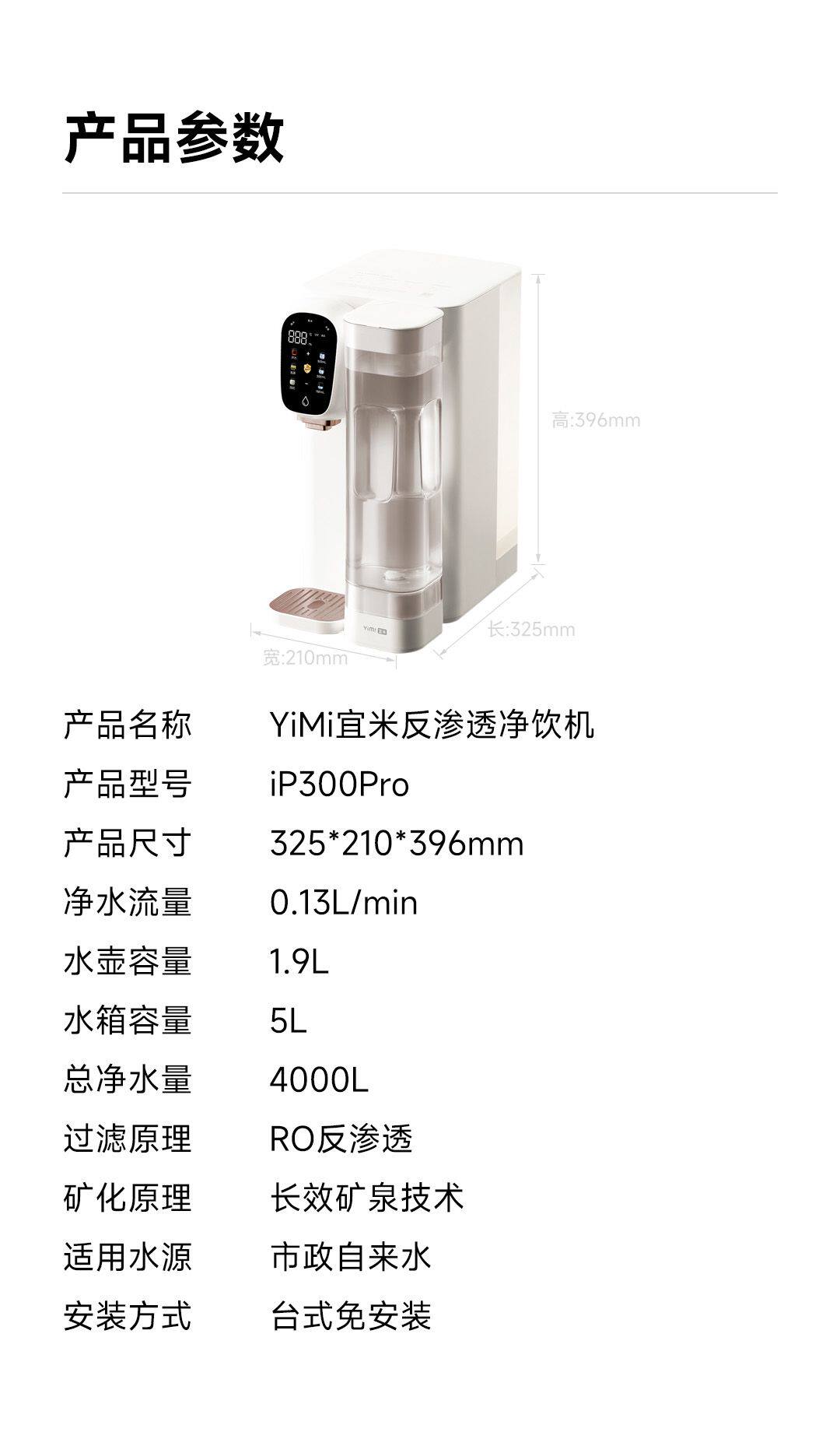 Yimi 300 Desktop Water Purifier with Integrated Heating, Household Direct Drinking Water Filter, Instant Hot Mineral Water Dispenser