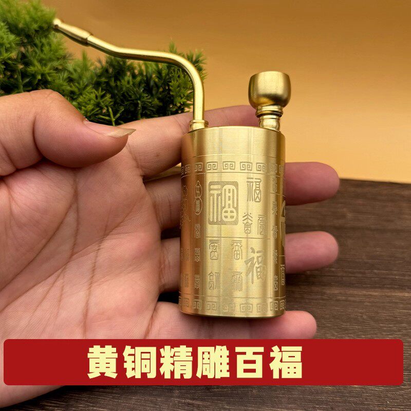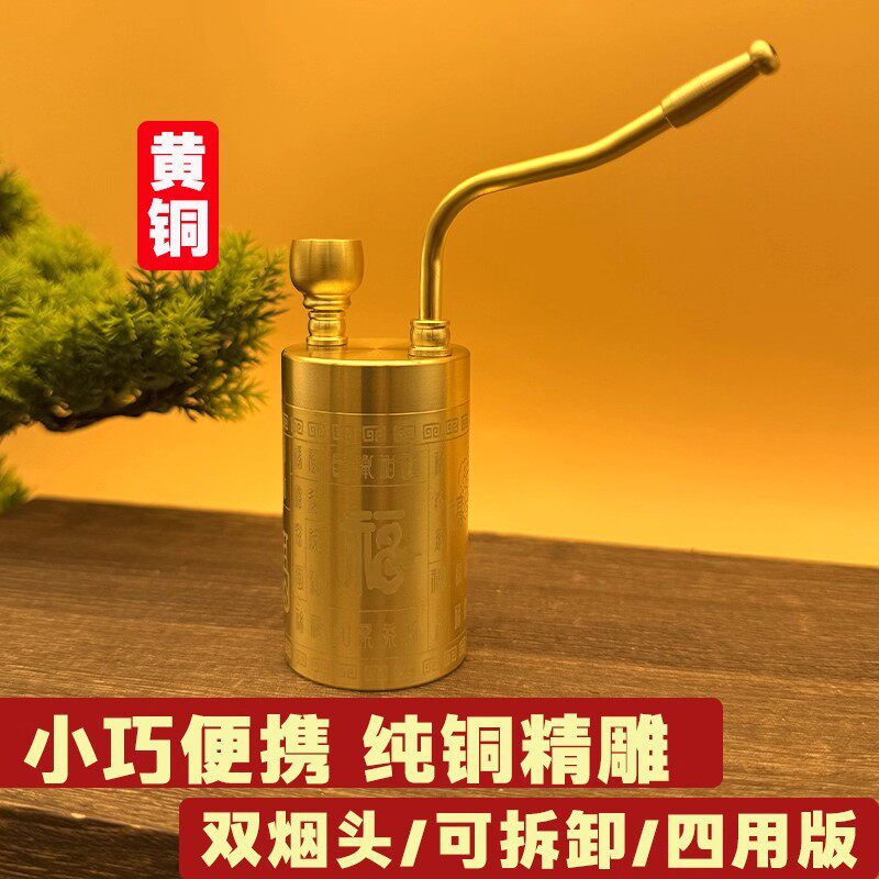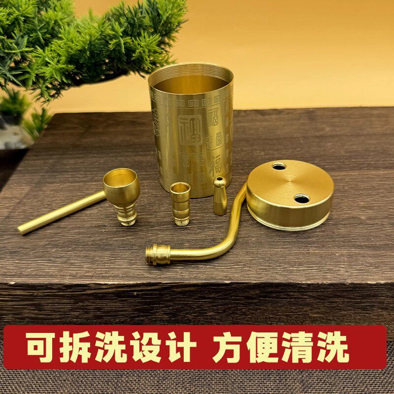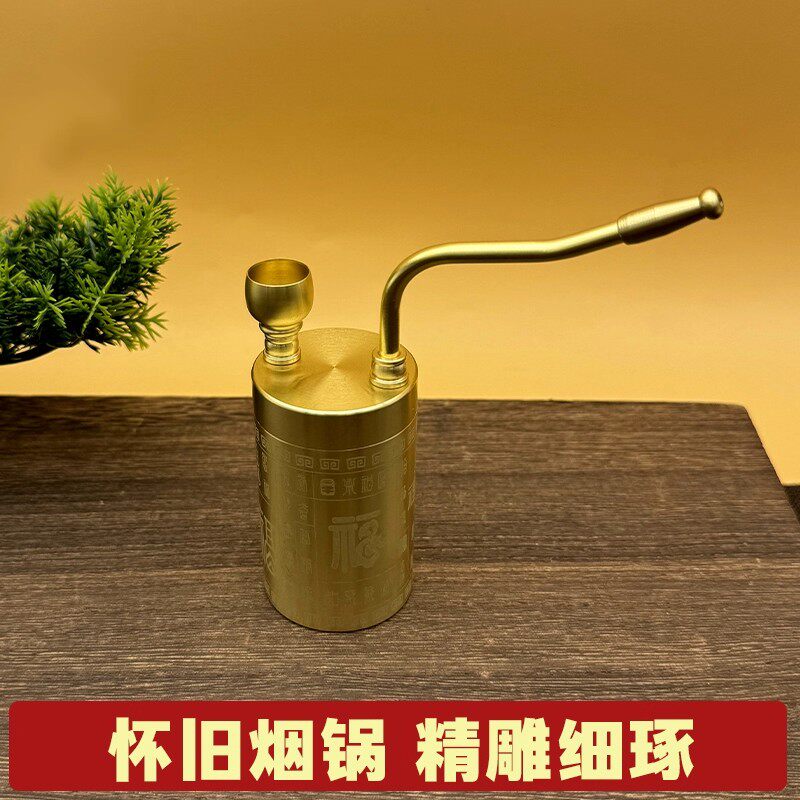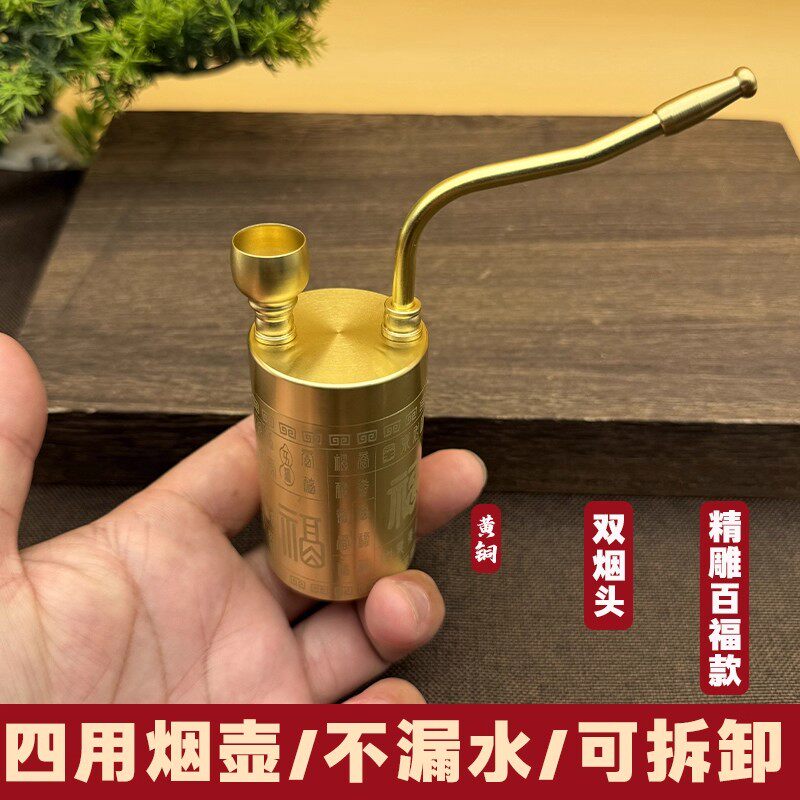 Pure Copper Hookah, Dry Tobacco Bottle Can Hold Water and Filtering, All-Copper Durable Four-Purpose Pipe Plus Large-Capacity Carved