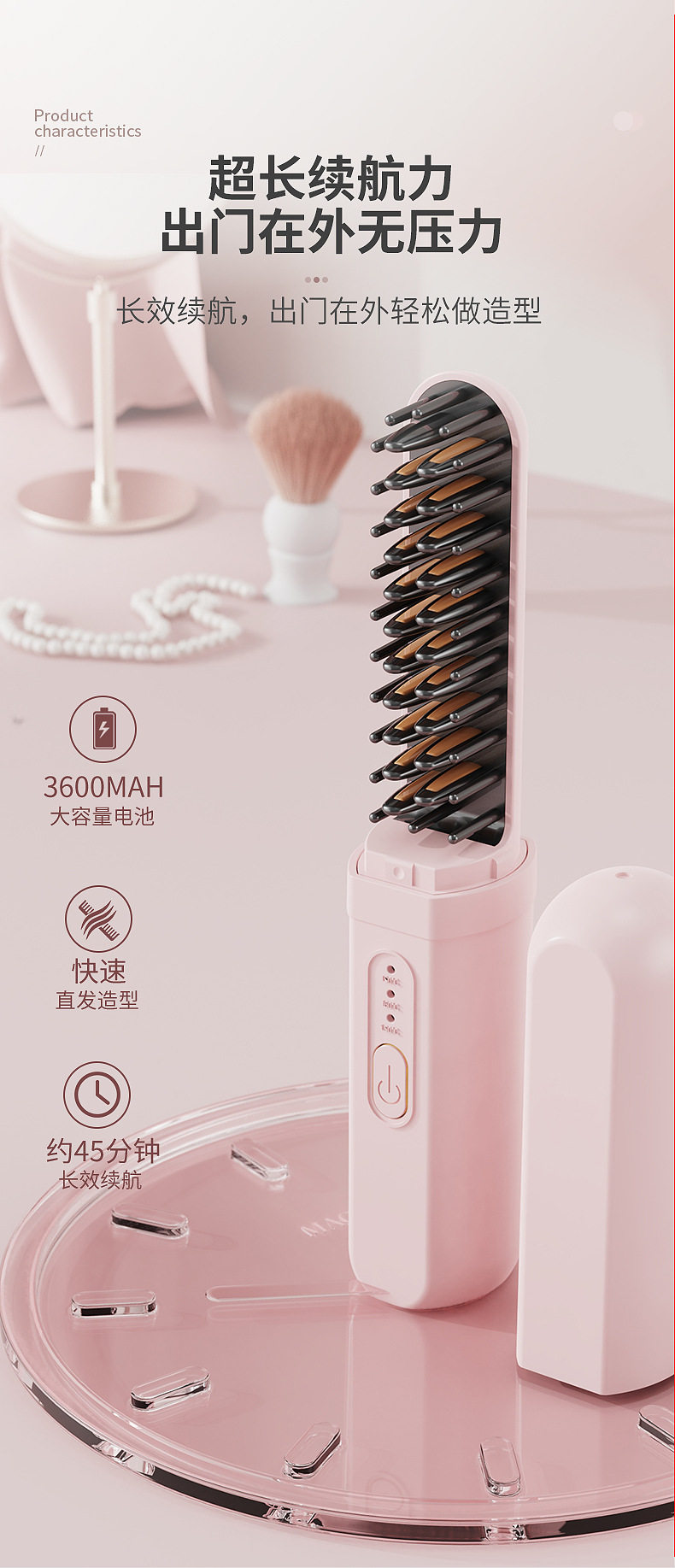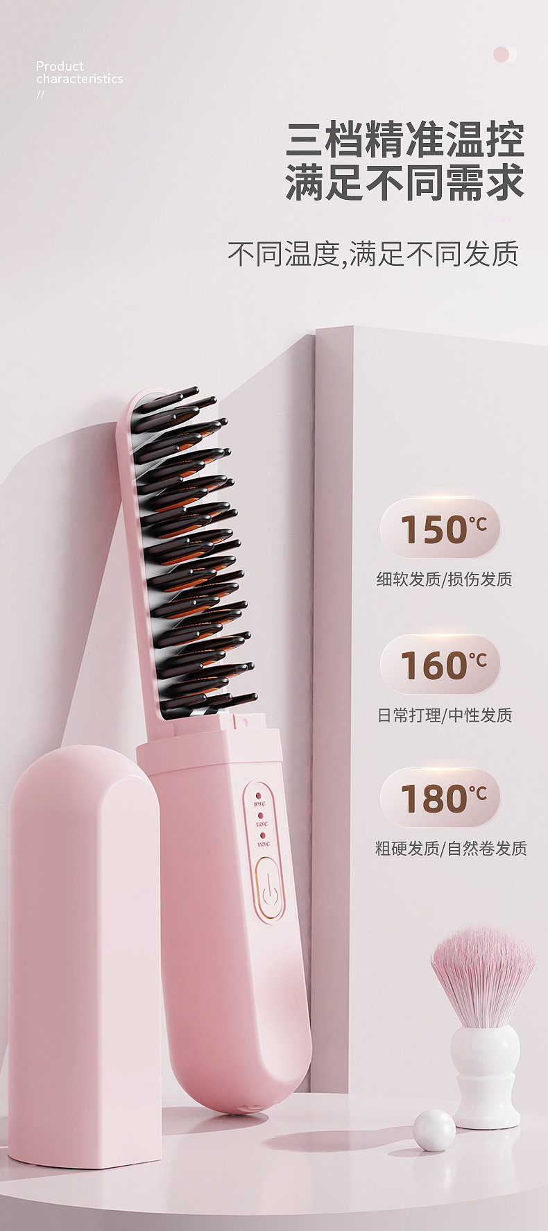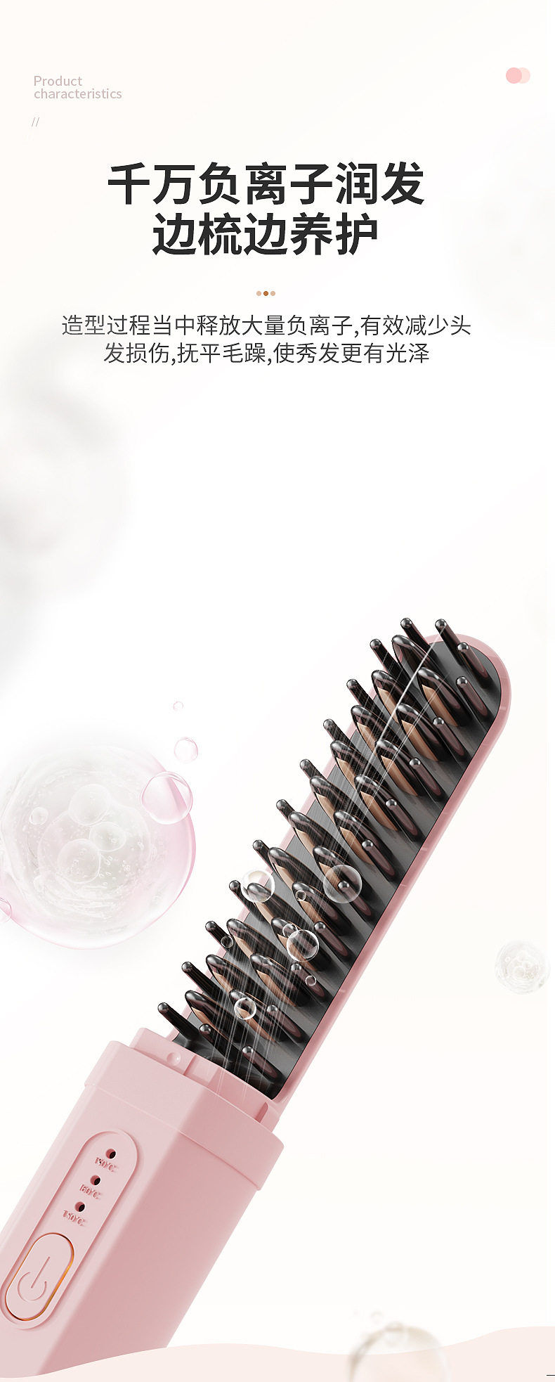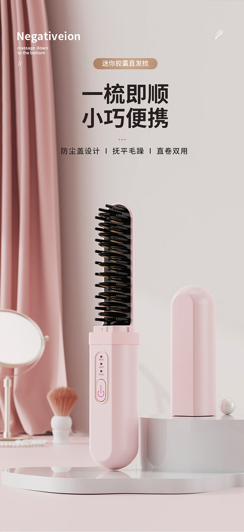 New Capsule Hair Straightening Comb with Negative Ions That Won'T Damage Hair, Wireless Portable Hair Straightener for Home Use, Suitable for Both Straightening and Curling, Can Be Used on Wet or Dry Hair