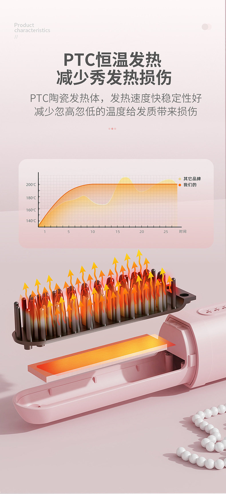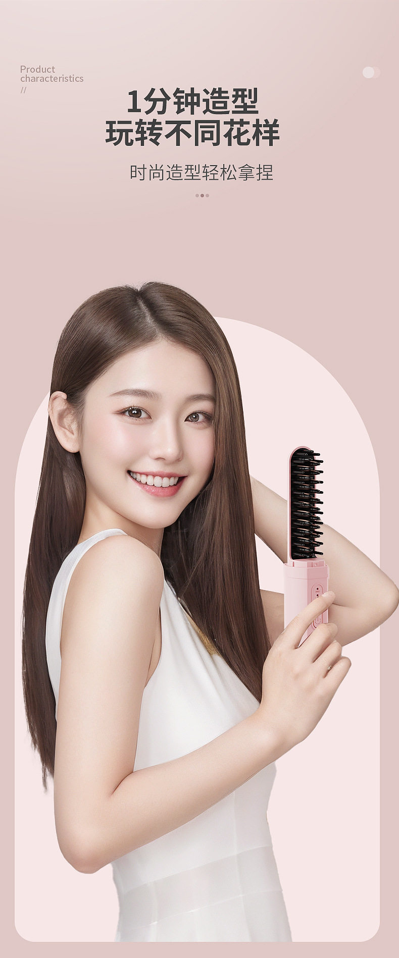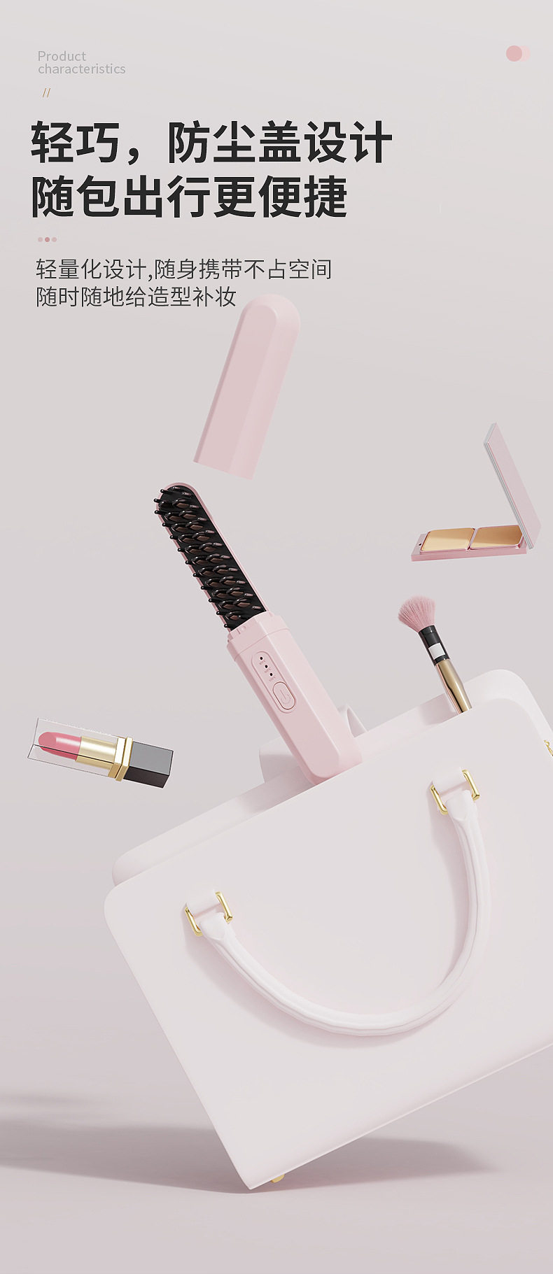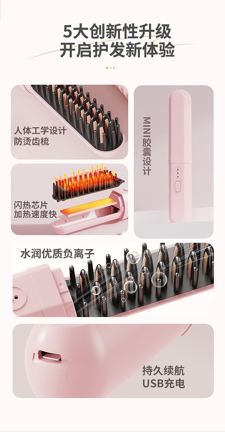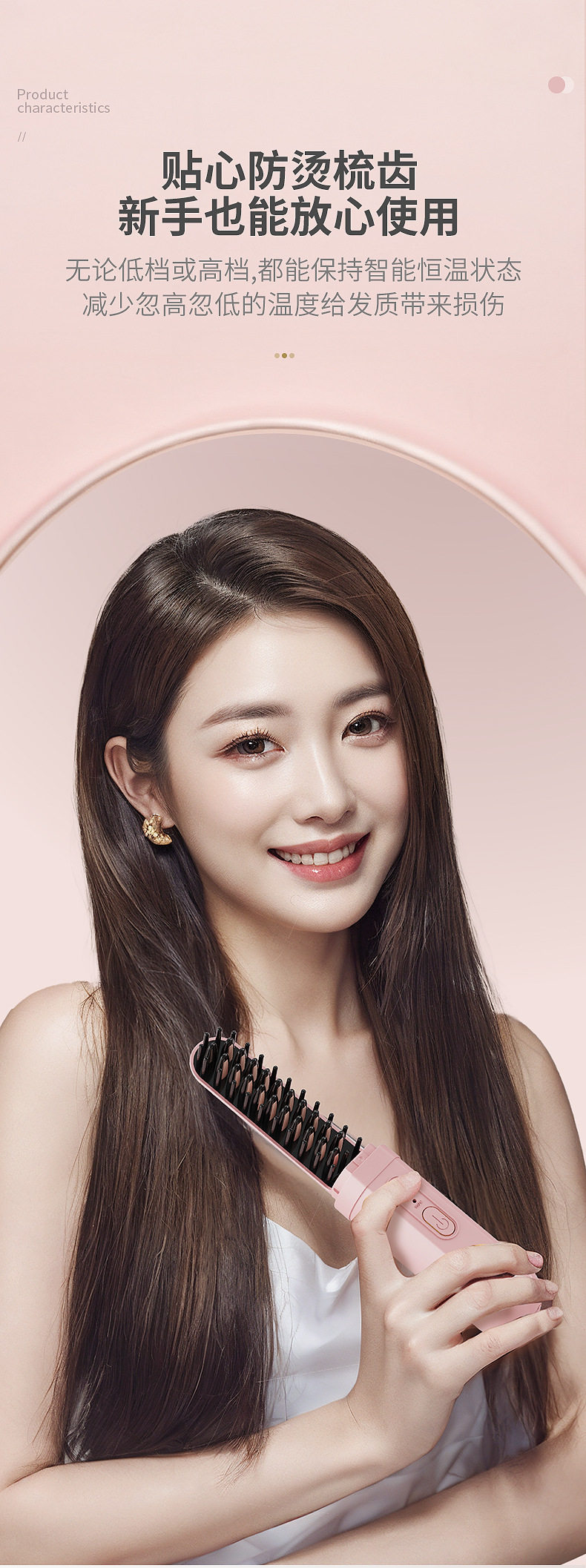 New Capsule Hair Straightening Comb with Negative Ions That Won'T Damage Hair, Wireless Portable Hair Straightener for Home Use, Suitable for Both Straightening and Curling, Can Be Used on Wet or Dry Hair
