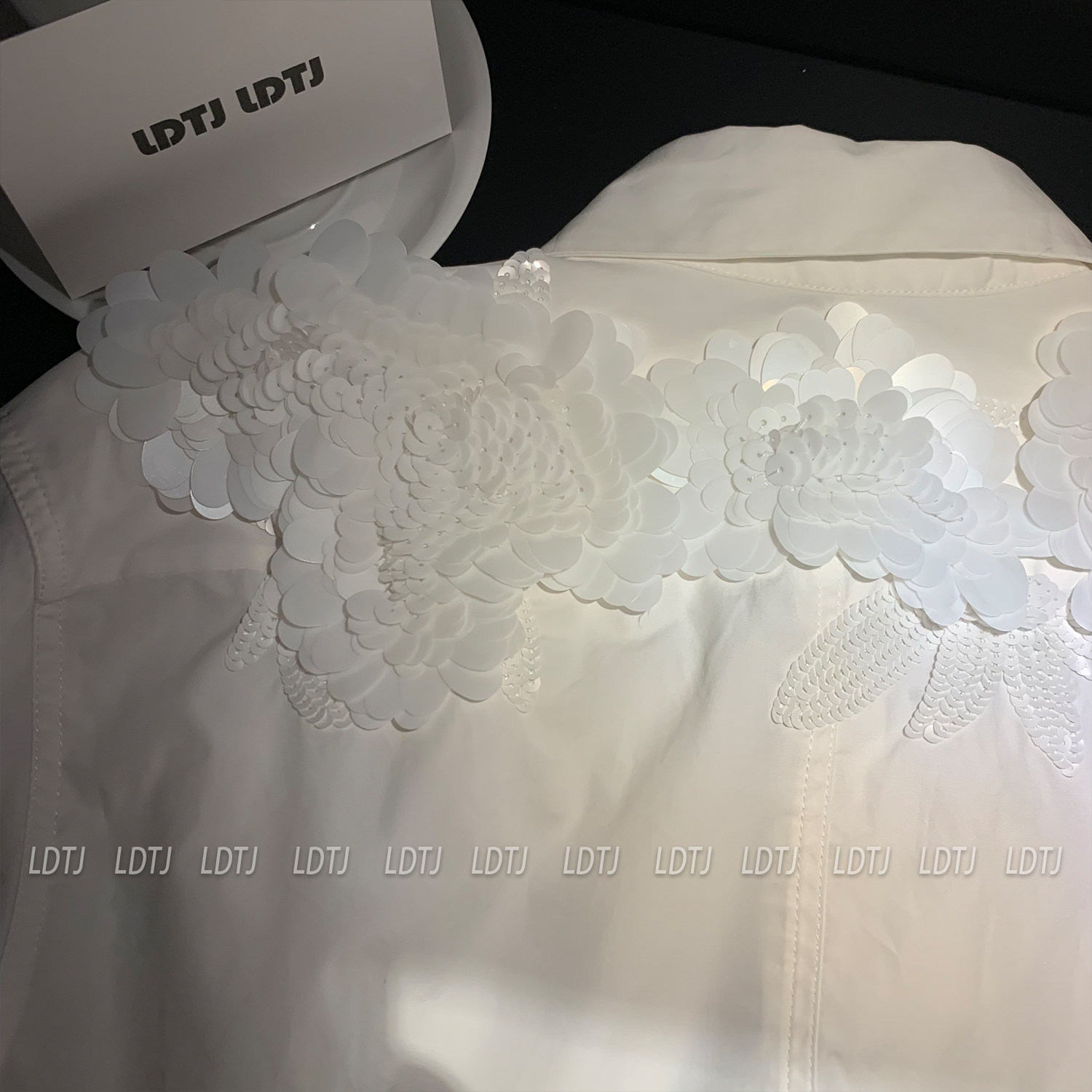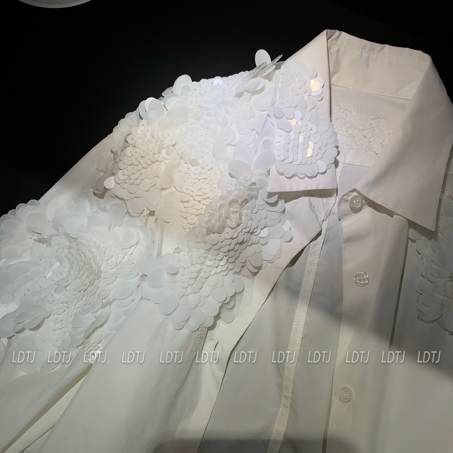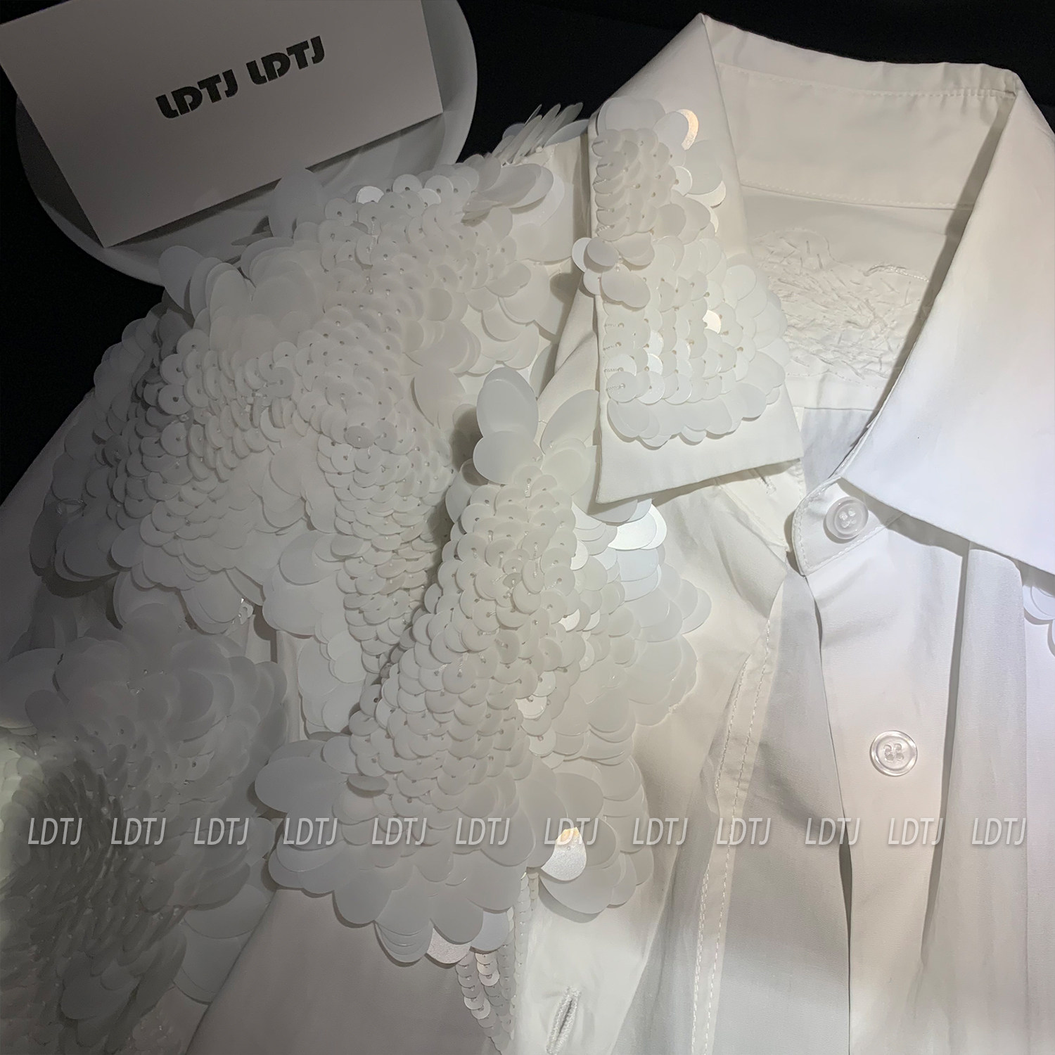 Ldtj Original [Laf Aesthetics] Autumn New Handmade Sequin High-End French Style Chic Long-Sleeve Shirt