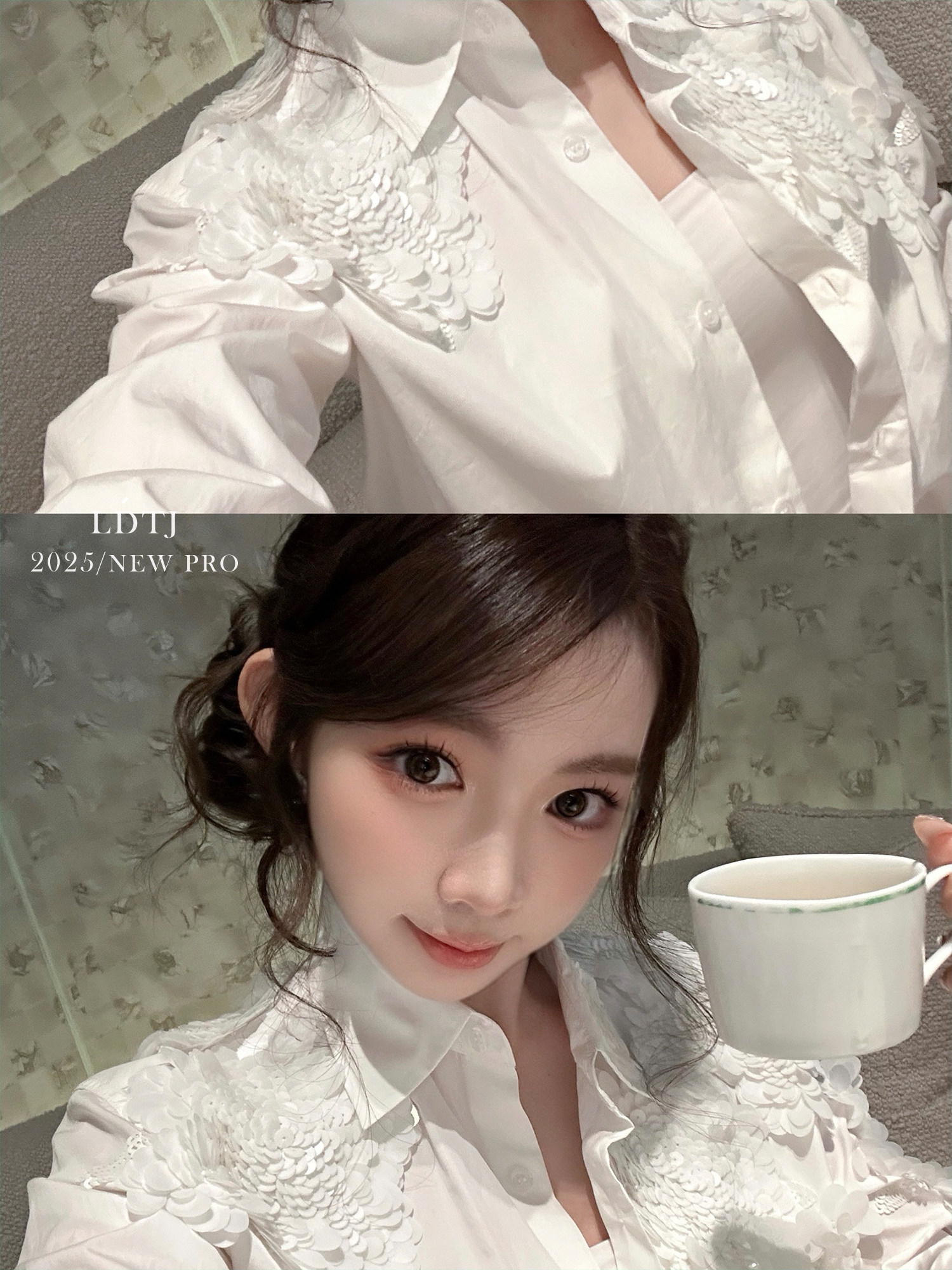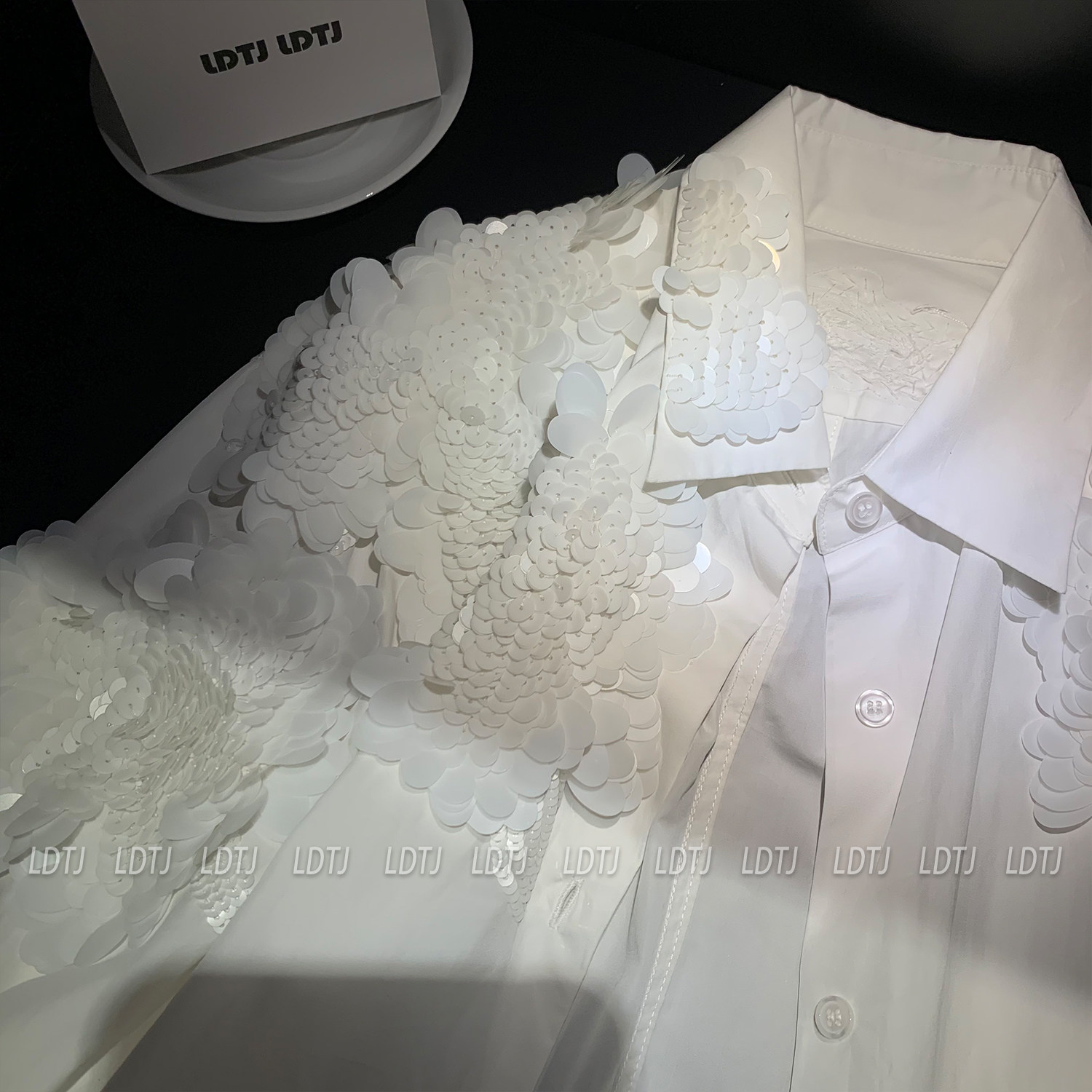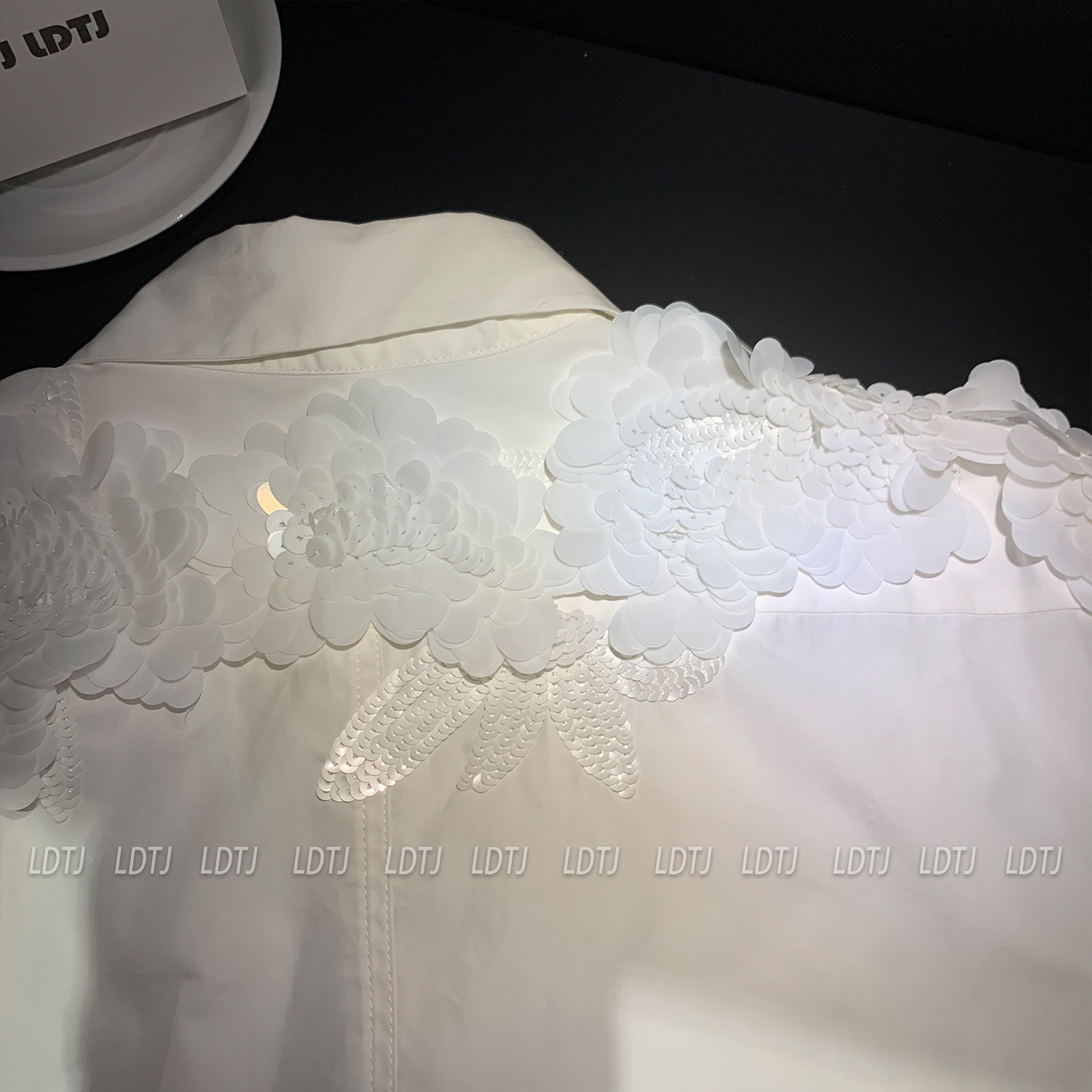 Ldtj Original [Laf Aesthetics] Autumn New Handmade Sequin High-End French Style Chic Long-Sleeve Shirt