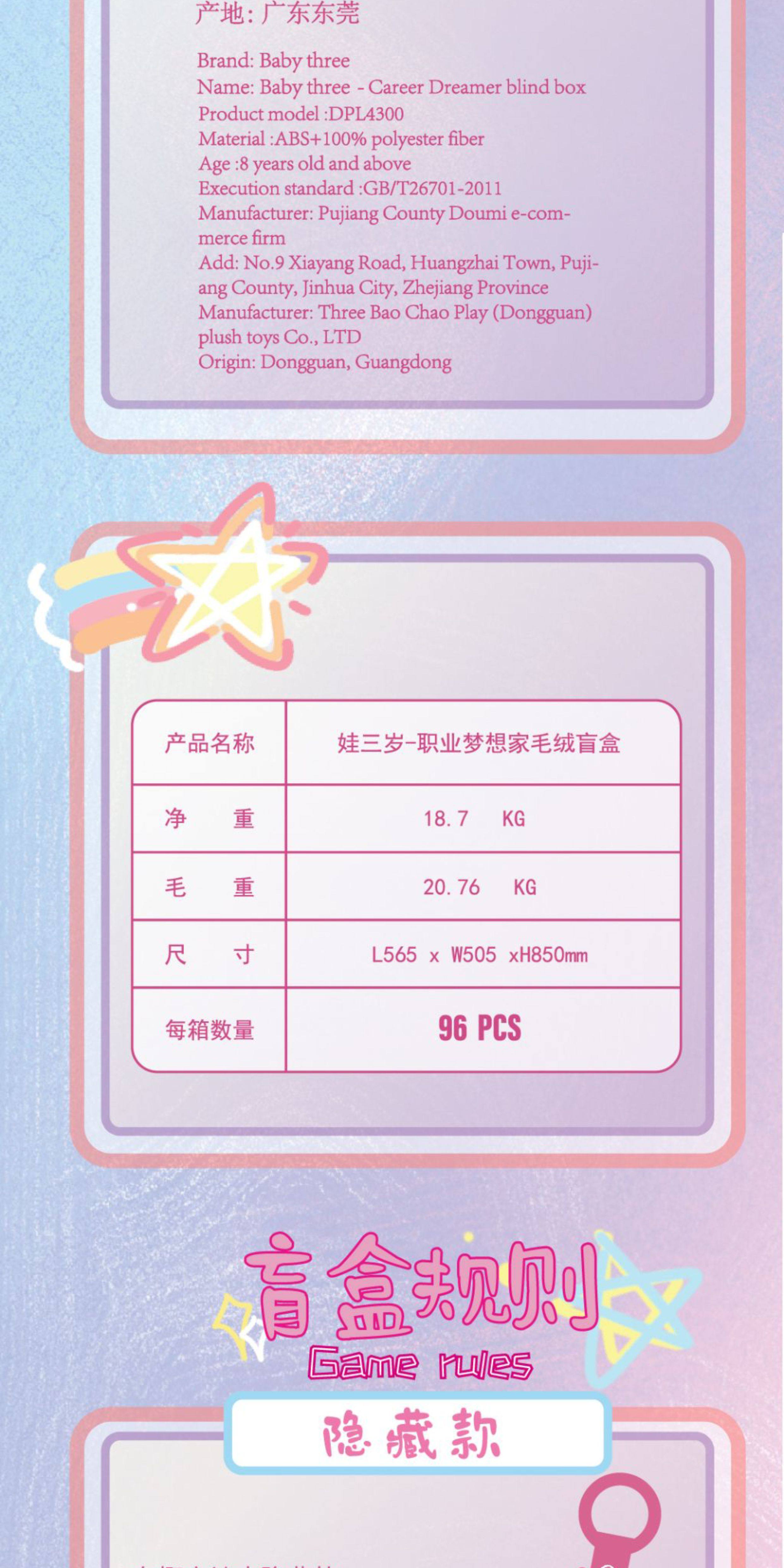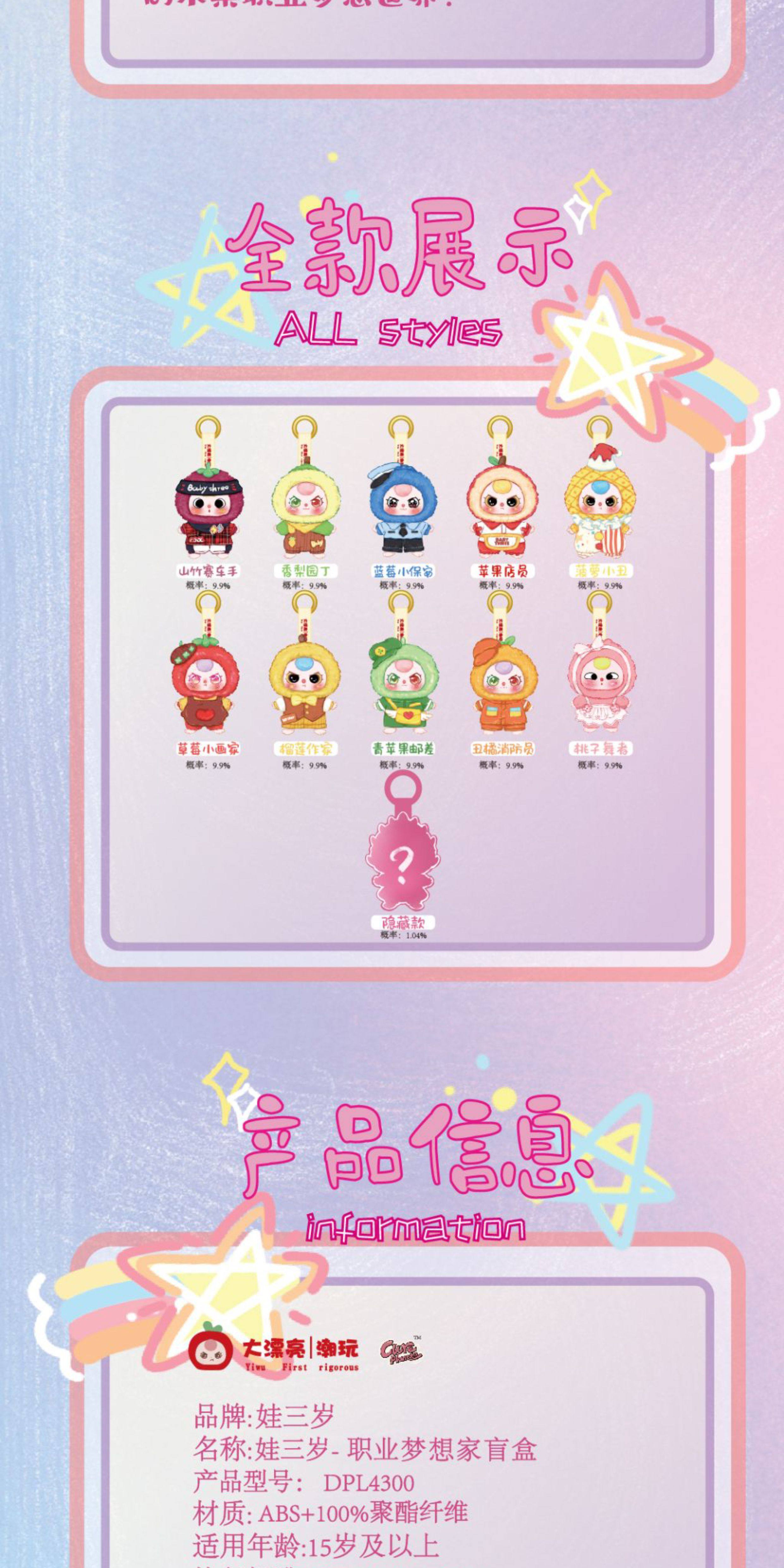 Baby Three Baby Three-Year-Old Professional Dreamer Vinyl Plush Blind Box Doll Keychain Pendant Gift